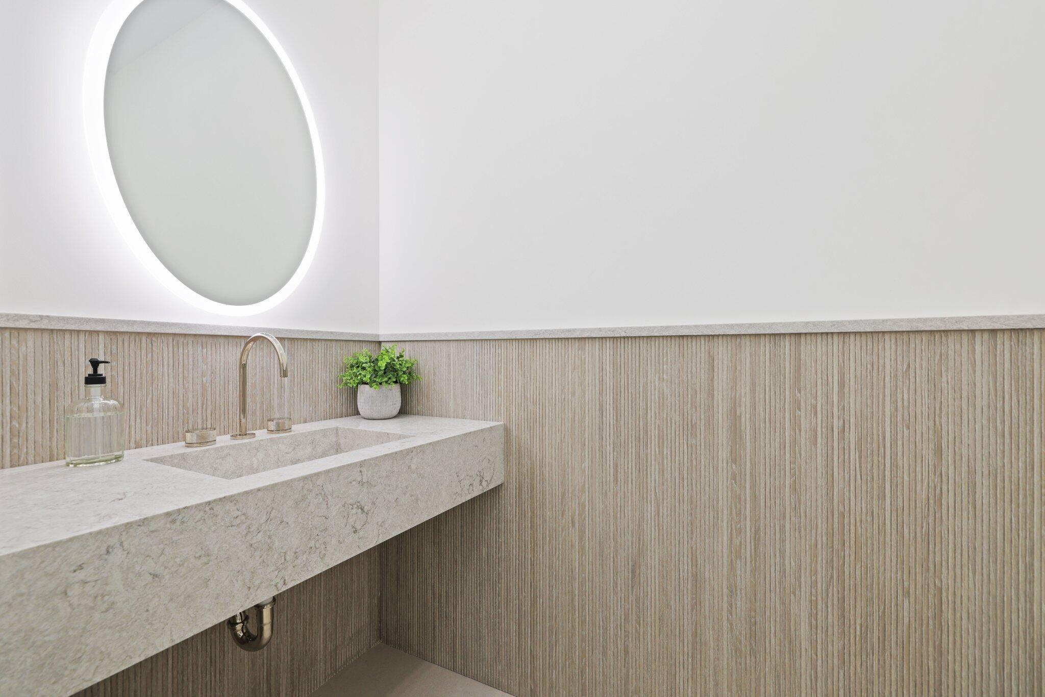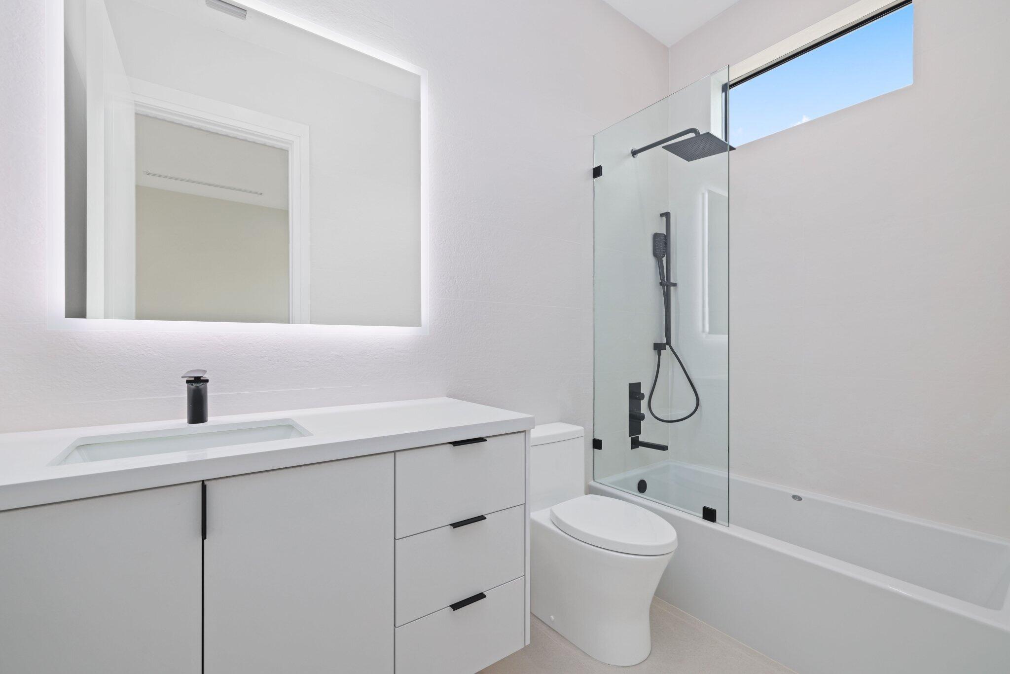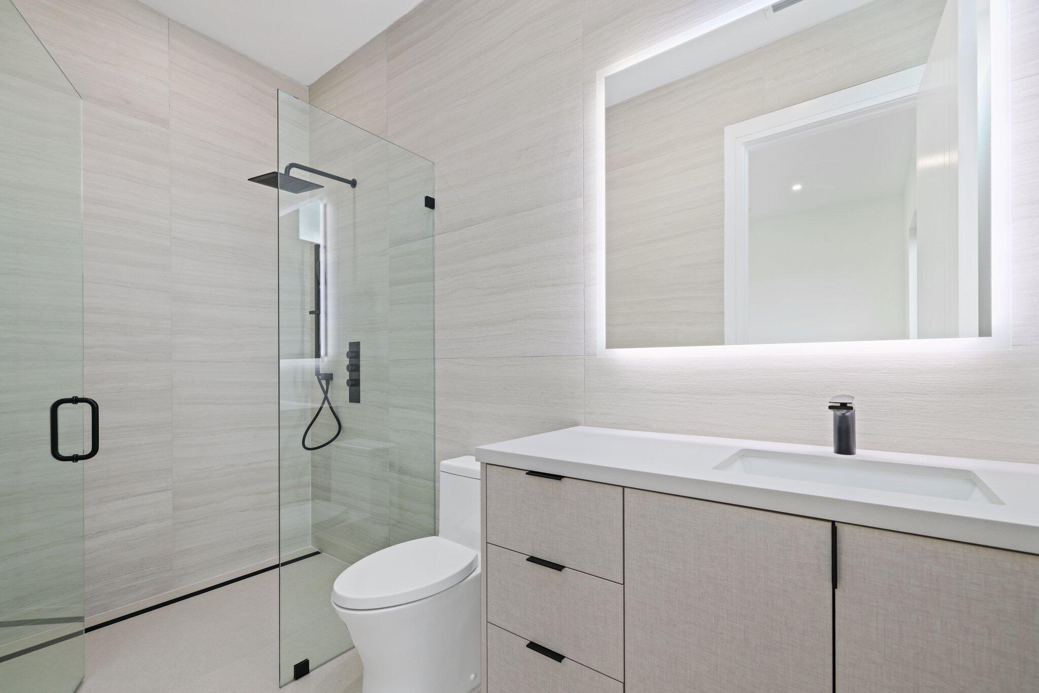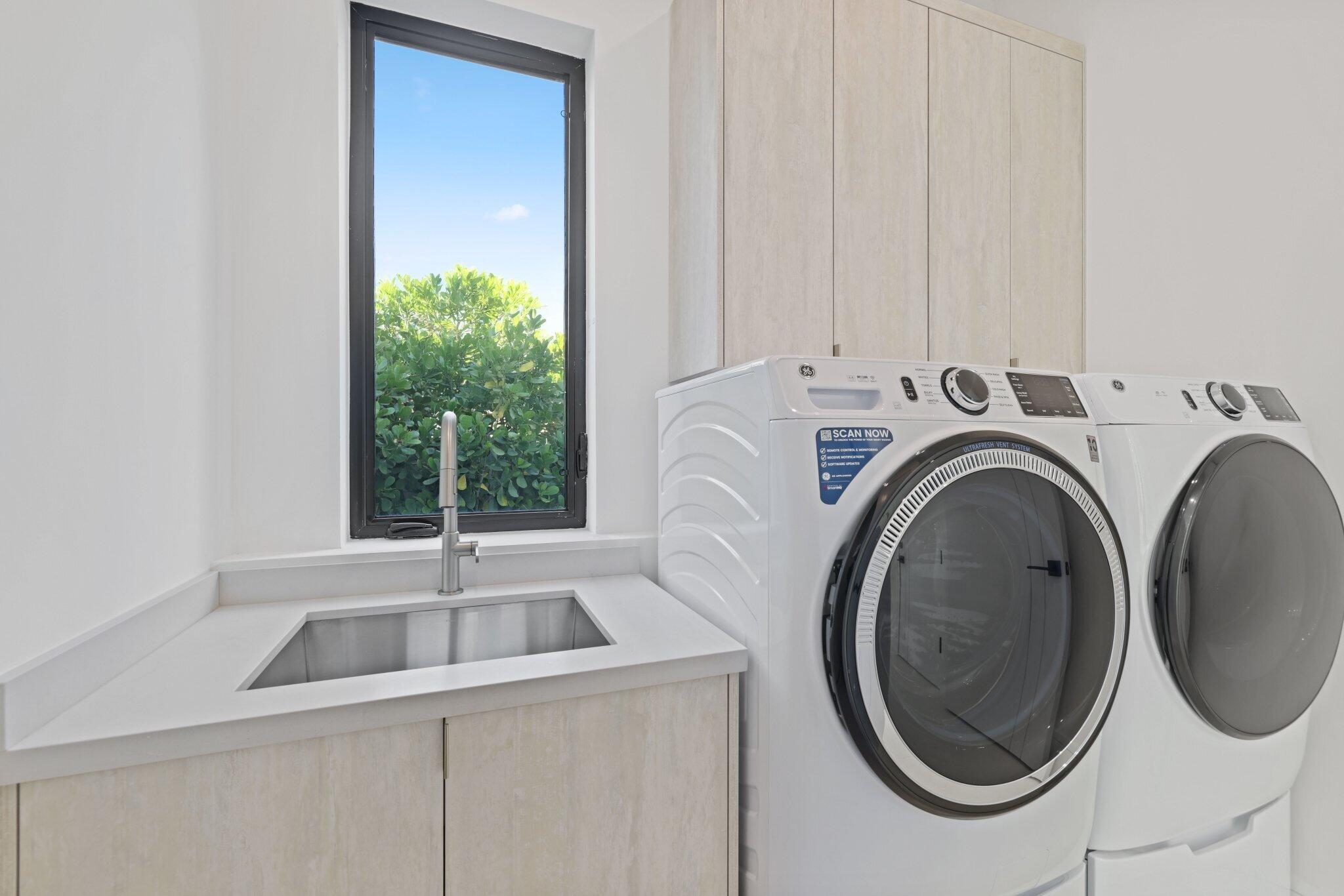This exceptional and brilliant home is the creation of Nuvision Developments. Located steps away from Mizner Park, it features 5 bedrooms, 5 ensuite bathrooms and two half baths. The exterior has alluring curb appeal featuring Louvered Brazilian lumber and remarkable windows that frame a breathtaking, floating European oak cantilevered staircase. As you enter, your eyes are immediately drawn to a wall of floor-to-ceiling glass, overlooking the yard complete with a summer kitchen, pool, and hot tub.The main living area boasts a lofty 23'8'' ceiling height, complemented by sleek matte Italian porcelain flooring. The kitchen is a haven for any culinary enthusiast, showcasing a colossal quartzite island, Wolf range, coffeemaker