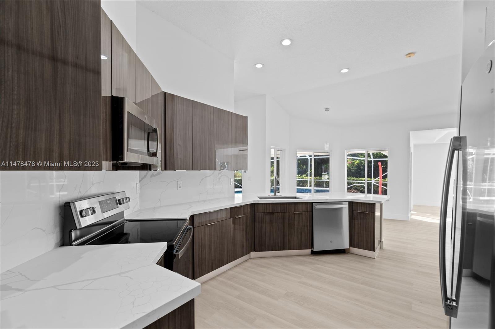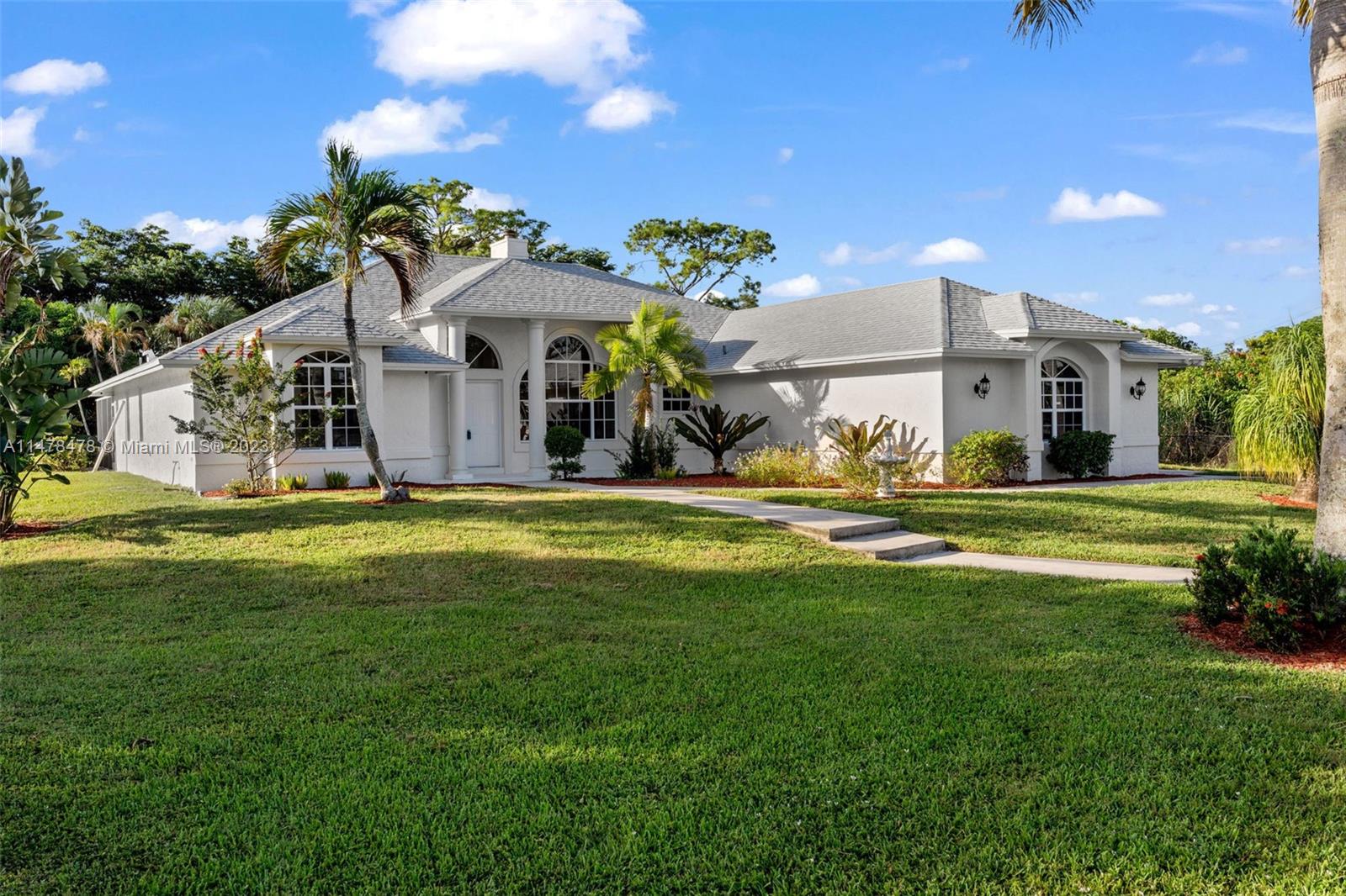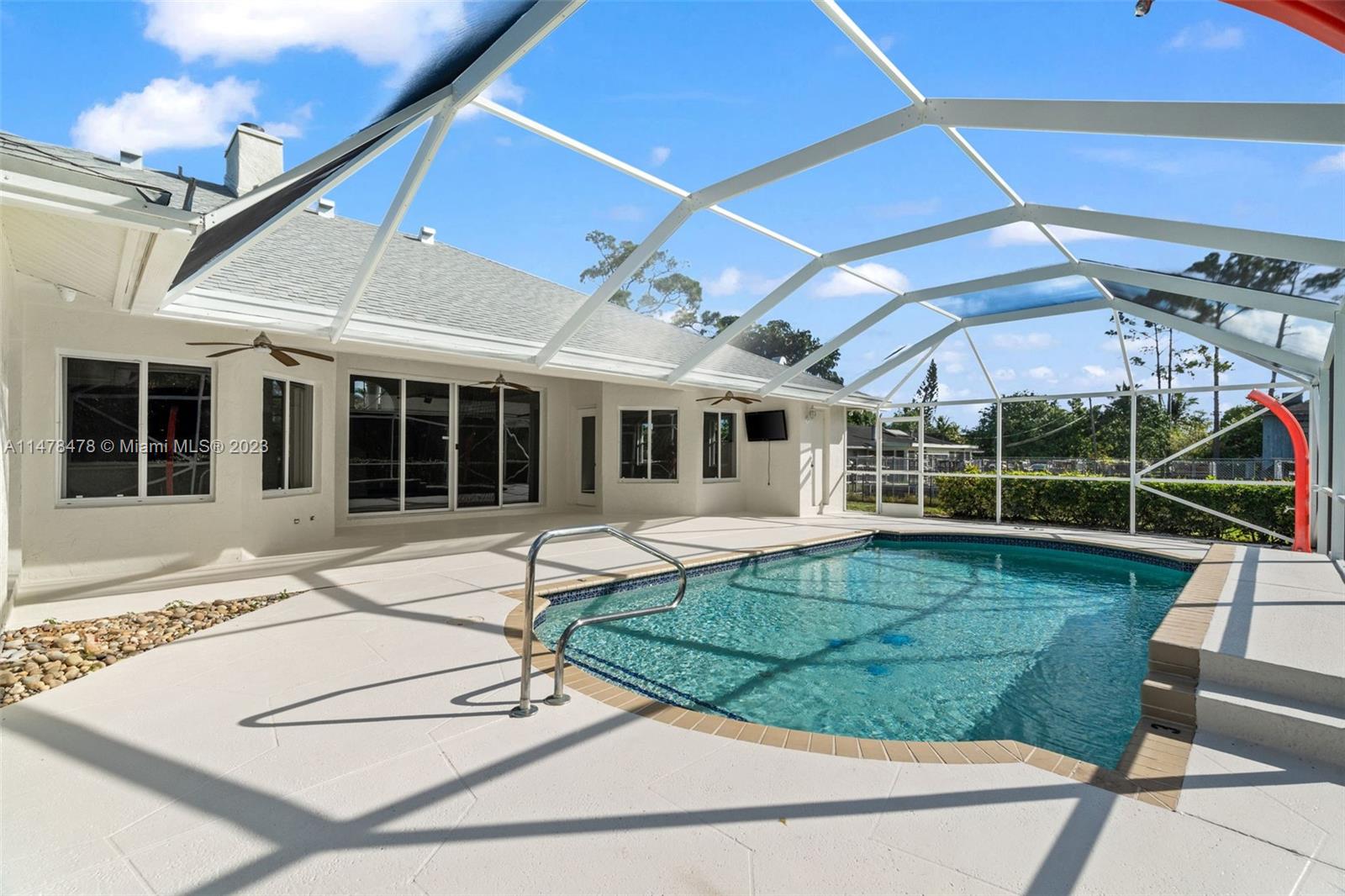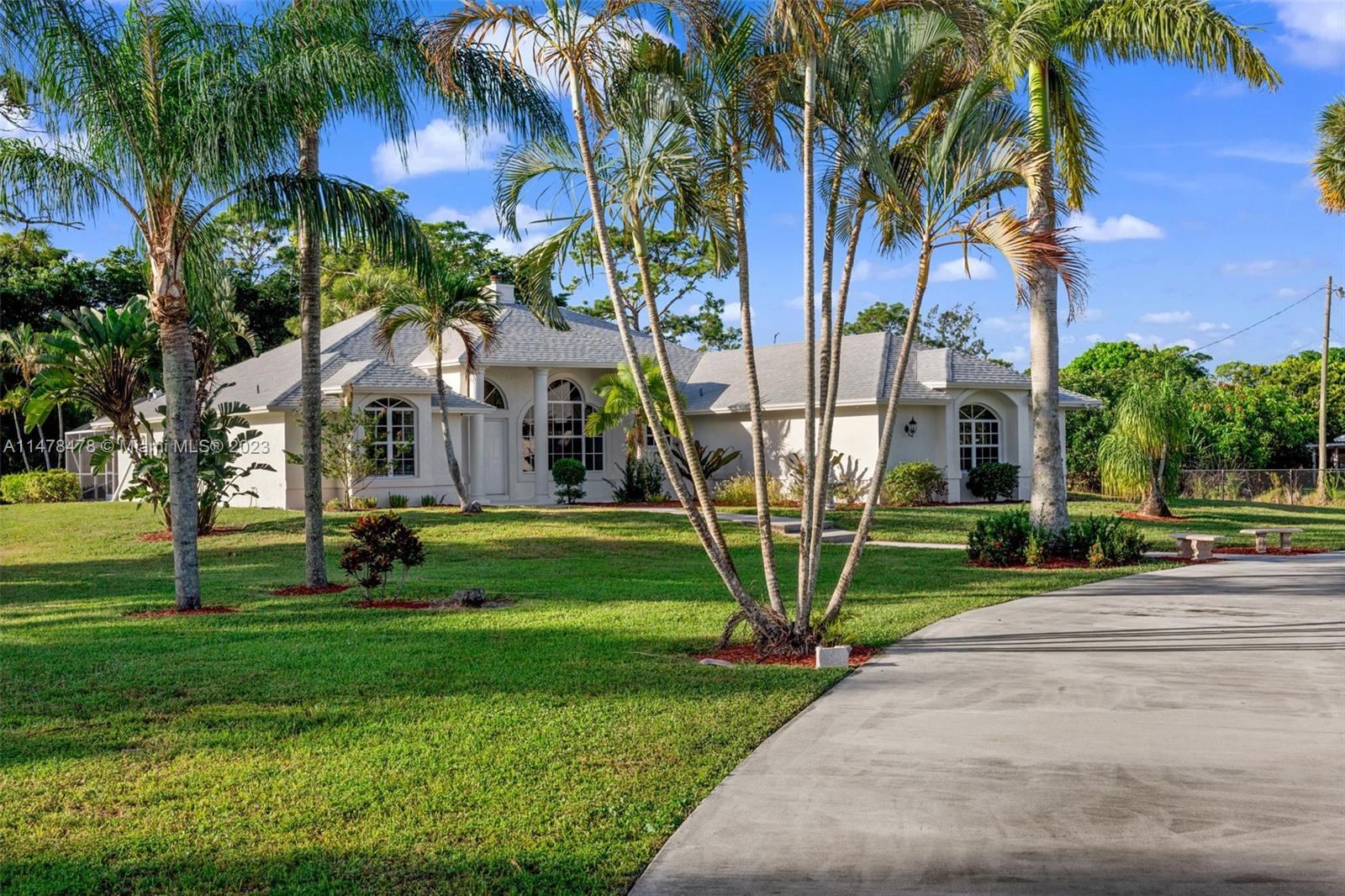 ALL NEW! This fully renovated home has everything NEW: NEW roof, NEW floors, NEW kitchen, NEW countertops, NEW stainless steel appliances, NEW bathroom cabinets, NEW mirrors, NEW flooring, NEW light fixtures, NEW garage doors! Freshly painted inside-out. Built in 1997 this one-story home sits on a fully fenced 1.25-acre lot with two motorized gates and offers a great floor plan with 3 bedrooms, a bonus den/office, 2 1/2 bathrooms, formal dining room with fireplace, living room, family room, private pool with an enclosed screen and 2 car garage. Long circular driveway, lots of room for parking cars, boats, and RV's.