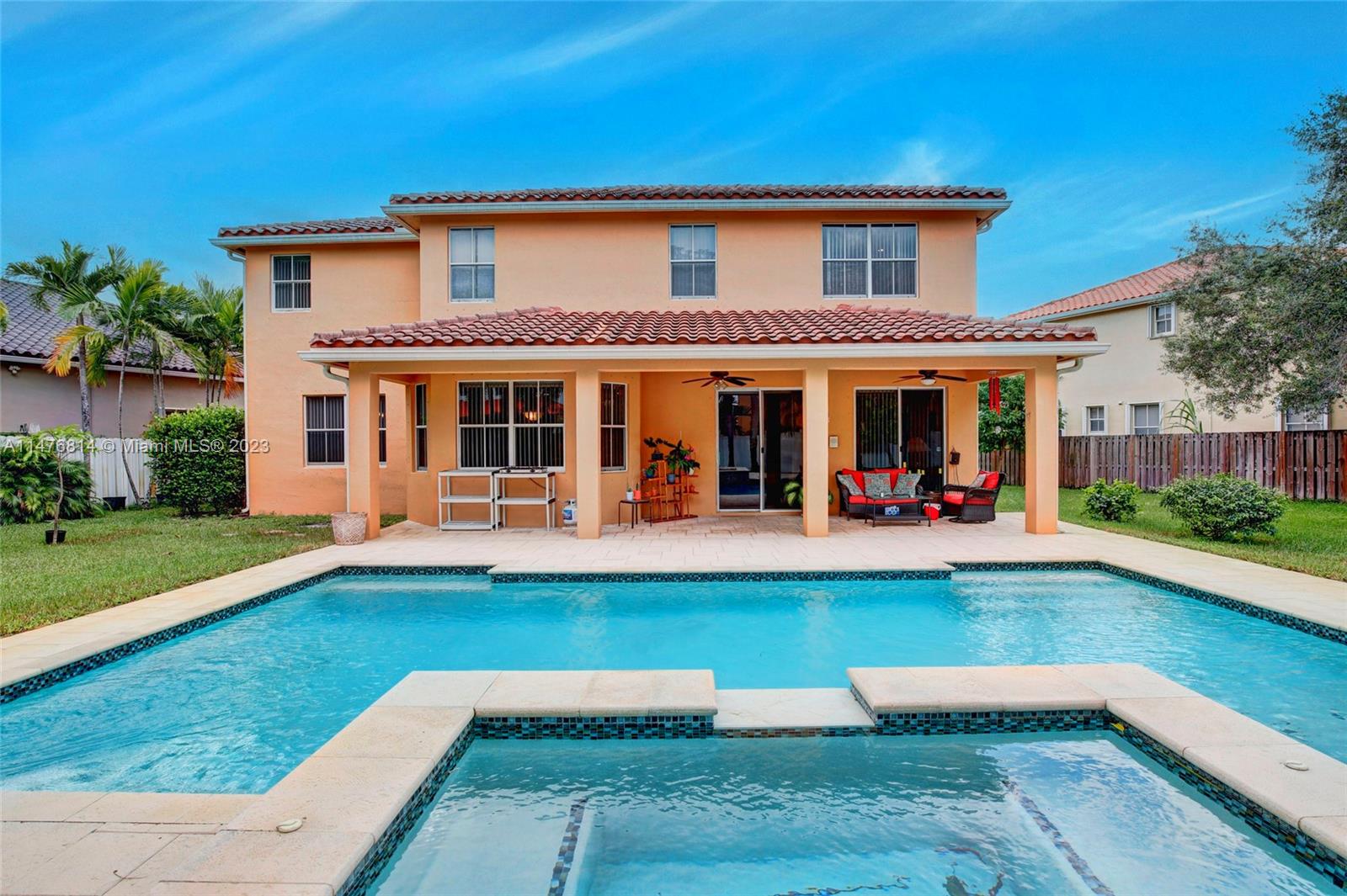 Beautiful 5 bedroom 4 bath home w/ almost 3700' sq ft under air in guard gated community of Nautica! Premier oversized pie shaped lot located on a cul-de-sac! Kitchen features dark wood cabinetry, granite counters & SS appliances. Marble flooring throughout the first floor living area. Ornate woodwork w/ crown molding, chair rail & deep baseboards. Stunning heated salt water pool/spa w/ stone patio deck built in 2017! ALL bathrooms have been renovated. Two AC units (2019). Water heater (2016). Newer washer/dryer & refrigerator. New sprinkler pump. Freshly painted interior/exterior. Bedroom & full bath downstairs. HOA Fee includes: mowing of the front lawn, basic cable, 24/7 Gate Security, 40hrs/week Roving Security Patrol & clubhouse, pool, tennis & basketball courts, playground.