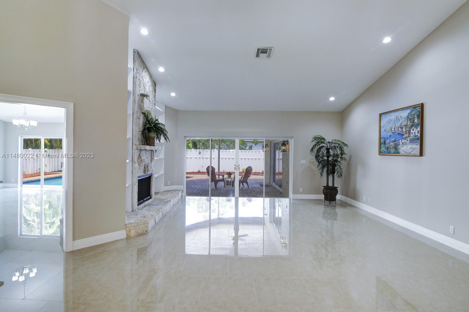 Great property in the heart of Jacaranda country club.Completely renovated.Nice floor plan.It features 4 bedrooms and 3 full baths.Tile floors throughtout the house and wood floor in all bedrooms.Modern large kitchen area and dining room. Spacious,confortable and bright areas with plenty of natural light.High vaulted ceiling with dimmed LED and modern lighting fixtures.Fenced backyard, nice entertainment area with covered patio.Plenty of parking space with circular driveway.Two car covered garage.A truly pearl nested in a beautiful,safe and quiet neighborhood!