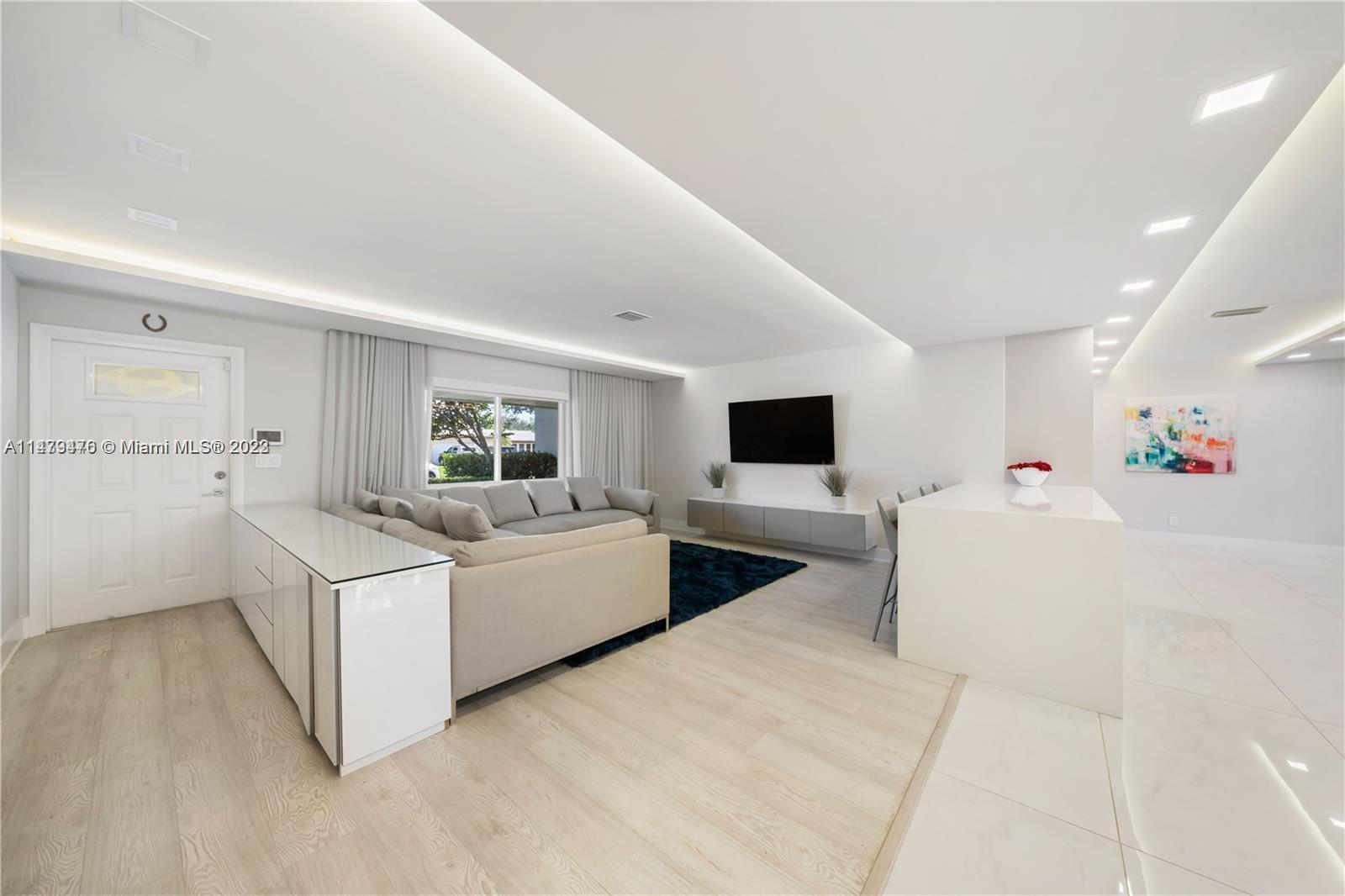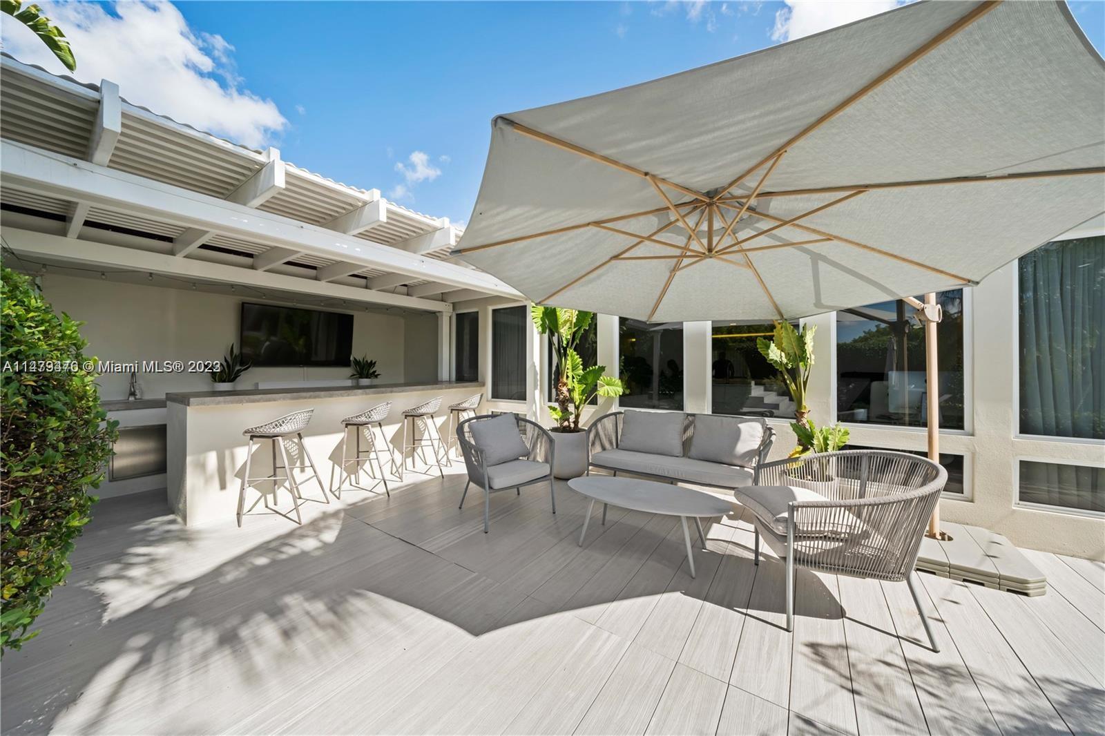 Stunning remodeled home in family-friendly Hollywood Hills. Modern kitchen with high-end Miele and Liebherr built-in appliances, quartz countertops and custom Italian cabinetry. Recent updates include a new roof, A/C, and hurricane impact doors/windows. The backyard is a paradise with an oversized lot, lush landscaping, and outdoor amenities like a built-in pergola, wet bar, outdoor TV, and an above-ground pool with composite wood decking. Located conveniently in Hollywood, just minutes away from the airport, stadiums, casino, and beaches.