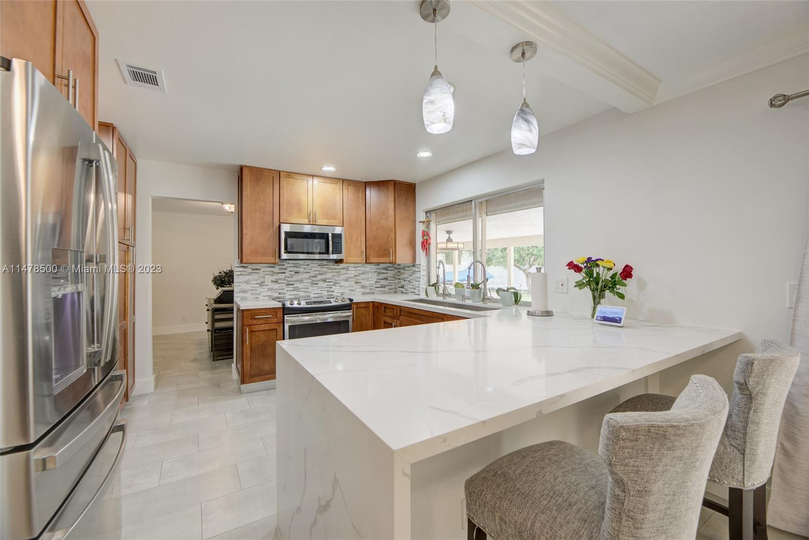 Idyllic large 3 BD, 2.5 BA family home located on over 21,000 sq. ft. lot nestled amongst mature fruit trees. Gorgeous pool and patio. Great for entertaining. A double opening gate provides room to store all of one’s toys, including R/V, boats, jets skis, and air boats etc. Inside you find a tastefully fully remodeled kitchen and baths all with warm neutral floors and tones. Located in one of the best considered neighborhoods within minutes of top-rated schools and I-75. Do not miss this opportunity. A must see. Easy to show.