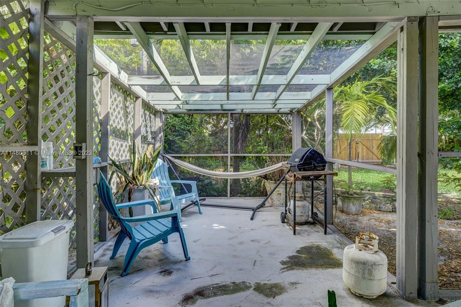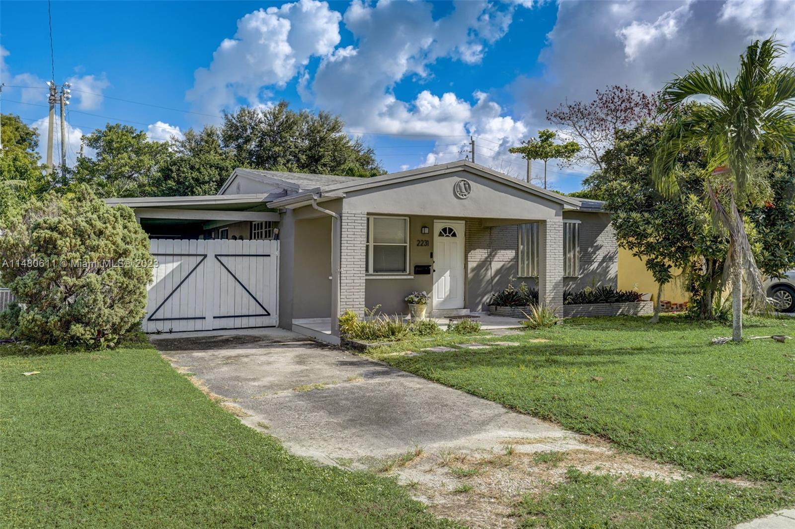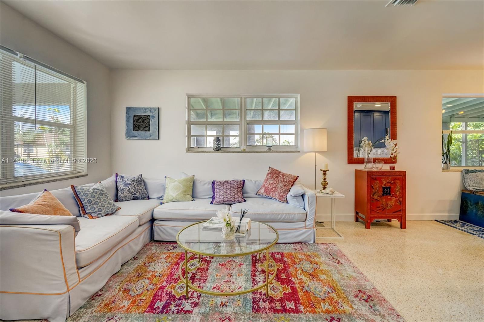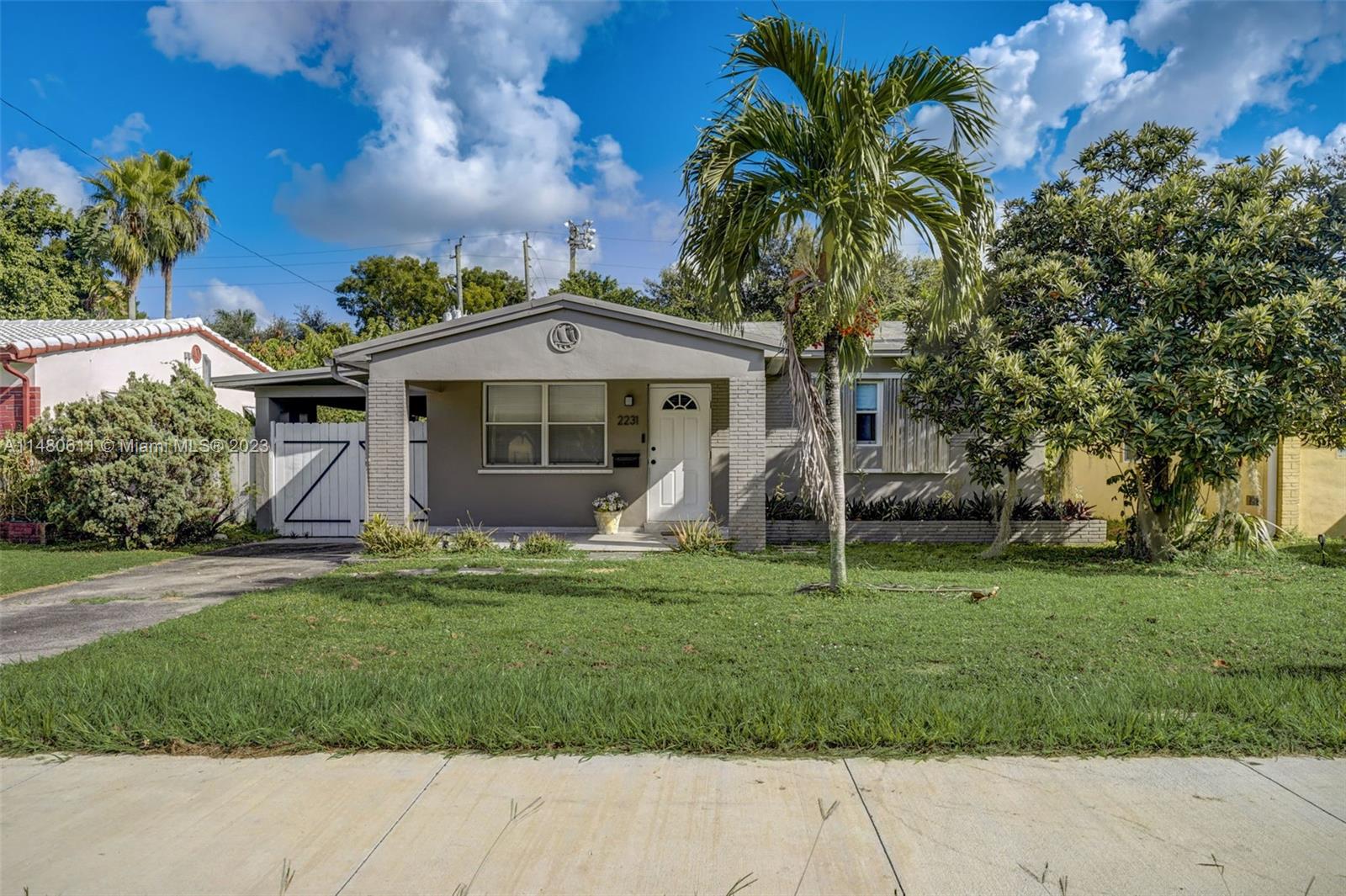 Charming 3-bedroom, 2-bathroom home featuring an open concept kitchen-living-dining combination. Enjoy the brand-new cabinets, sleek quartz countertops, and top-of-the-line Samsung appliances, complete with a convenient wine cooler. The bathrooms have been tastefully remodeled, and the original terrazzo floors have been expertly repolished. Experience ultimate comfort with the addition of a new AC system and modern laundry appliances. Step out onto the 400 sq. ft. mosquito net enclosed patio, ideal for year-round outdoor enjoyment. Additionally, there's a spacious 400 sq. ft. carport and a generously sized garage door providing alley access for a boat or RV. This is a turnkey property