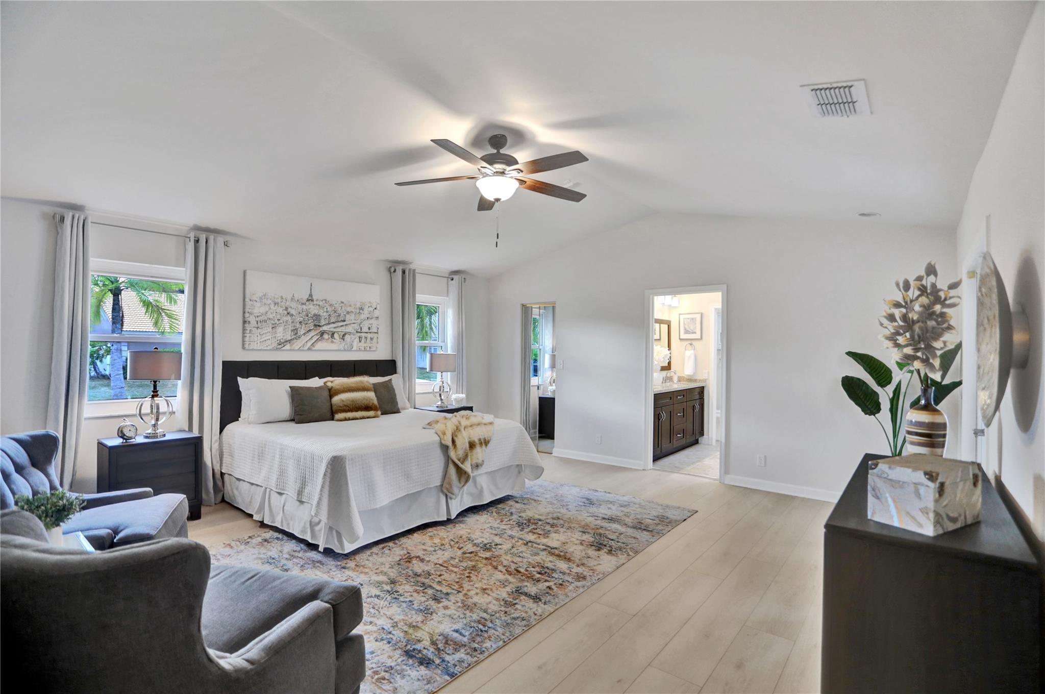 You will love the light, airy, immaculately maintained 3 bed, 3 bath pool home with vaulted ceilings, on a large corner lot in beautifully maintained Weston. Improvements in 2023 include new paint, new bathroom renovation, new flooring, popcorn ceiling removal, new window treatments, interior and exterior lighting improvements, & newer Trane AC (2020). A high fence around the beautifully landscaped pool area provides privacy, and impact windows and doors provide peace of mind. For only $340 a year, Bonaventure Towne Center Club amenities include 2 pools, a wonderful gym, bowling, billiards, tennis, pickleball, basketball, skating rink, fitness/lifestyle classes, & recreational programs for kids and adults. Value, privacy, security, and amenities galore…this home has it all. Come and see!