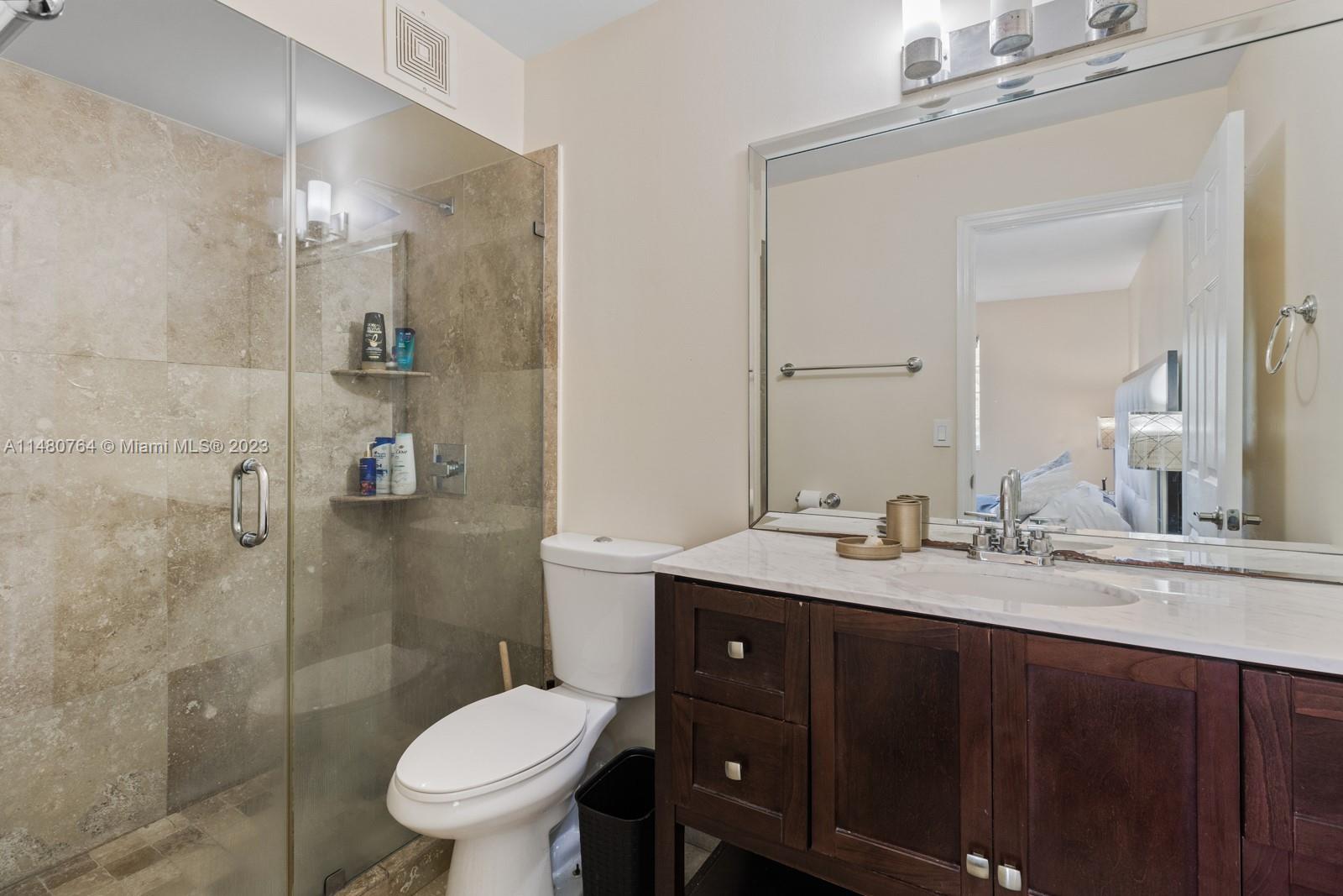 Are you looking for a move-in-ready townhome? You've come to the right place! This stunning townhome comes fully furnished and equipped with everything you need to make it feel like home. The custom-made cabinets provide plenty of storage space, while the stainless steel appliances and beautiful marble flooring throughout the first and second floors add a touch of luxury. Plus, with no carpets in this home, maintenance is a breeze. The garage can fit one car, and the driveway is extended for convenience. Upstairs, you'll find two cozy bedrooms, each with a private bathroom and spacious upgraded closets. Downstairs, there is a half bathroom. And when you need some fresh air, the private backyard offers a peaceful view without any homes behind it.