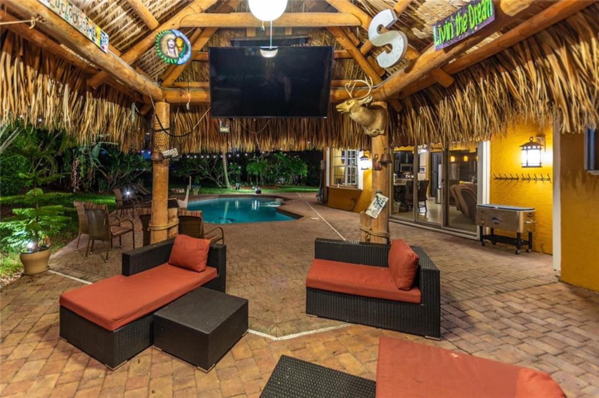 GREAT HOME/NEIGHBORHOOD TO RAISE A FAMILY, ENTERTAIN RELATIVES/GUESTS. PETS WILL LOVE IT TOO! LOADS OF SPACE FOR ENTERTAINING IN & OUT W/ PLENTY OF OUTDOOR LIGHTING. CUSTOM TIKI HUT W/ ELECTRIC. ONE OF THE BIGGEST YARDS IN ROCK CREEK AND ONLY ONE W/ EASEMENT JUST FEET FROM HIATUS RD. 33X19 SOLAR HEATED POOL WITH 67X27 PATIO/POOL AREA +2 OTHER PATIO AREAS. BIG KITCHEN W/GRANITE COUNTERS/42" CABINETS/2 SNACK BARS/PLUS SO MUCH MORE/OPEN TO FAMILY RM. 10X10 BREAKFAST AREA NEXT TO KITCHEN. DINING ROOM W/BREAKFRONT & BAR+WINE FRIG. OVERSIZED LIVING ROOM. SIZEABLE 21X14 MASTER BEDROOM & MASTER BATH W/JACUZZI TUB/SEPARATE SHOWER. 24X24 RECTIFIED PORCELAIN FLOORS IN LIVING AREAS. NEW ROOF 2018. 2 AC'S. 160 GALLON SOLAR WATER HEATER. ACCORDION SHUTTERS, 6 SOLAR PANELS. MODERNIZE HOME TO YOUR LIKING.