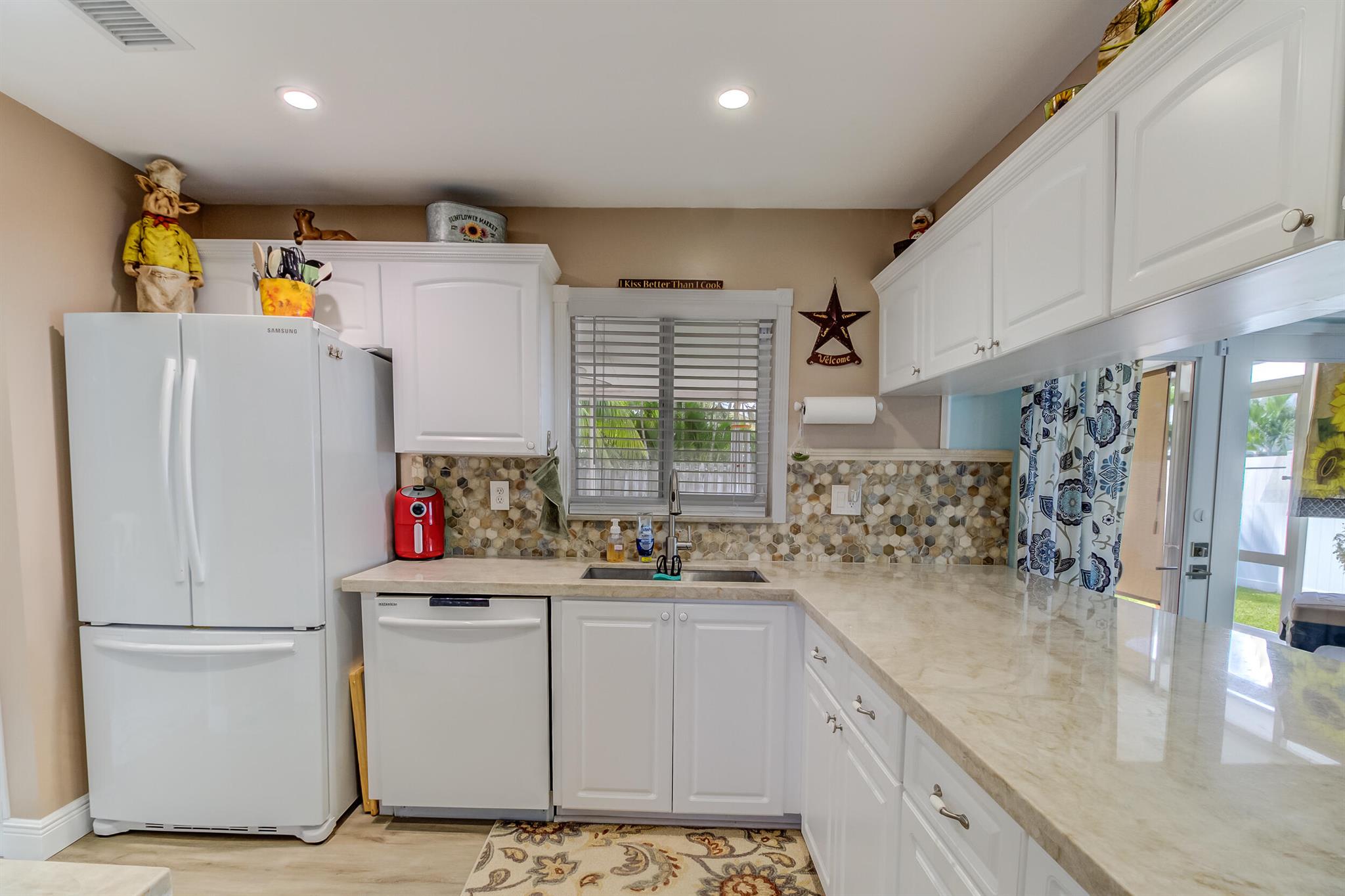 This is Florida living at its best - a well maintained quiet neighborhood with NO HOA, within walking distance of an A+ elementary school. This immaculate 3/2 Home offers a layout with 1,495 square feet of living area, a 2 car garage and a large screened in porch with insulated roof and ceiling fans. The kitchen has beautiful cabinets, granite countertops, tile backsplash and a new modern large stainless steel sink. Safety is a priority with impact windows & doors throughout, hurricane impact garage door with electric door opener and a monitored security system that alerts fire & police. Exterior of house was painted in 2022. Large backyard is enclosed with privacy fence. This is a must see! Accepting backup offers