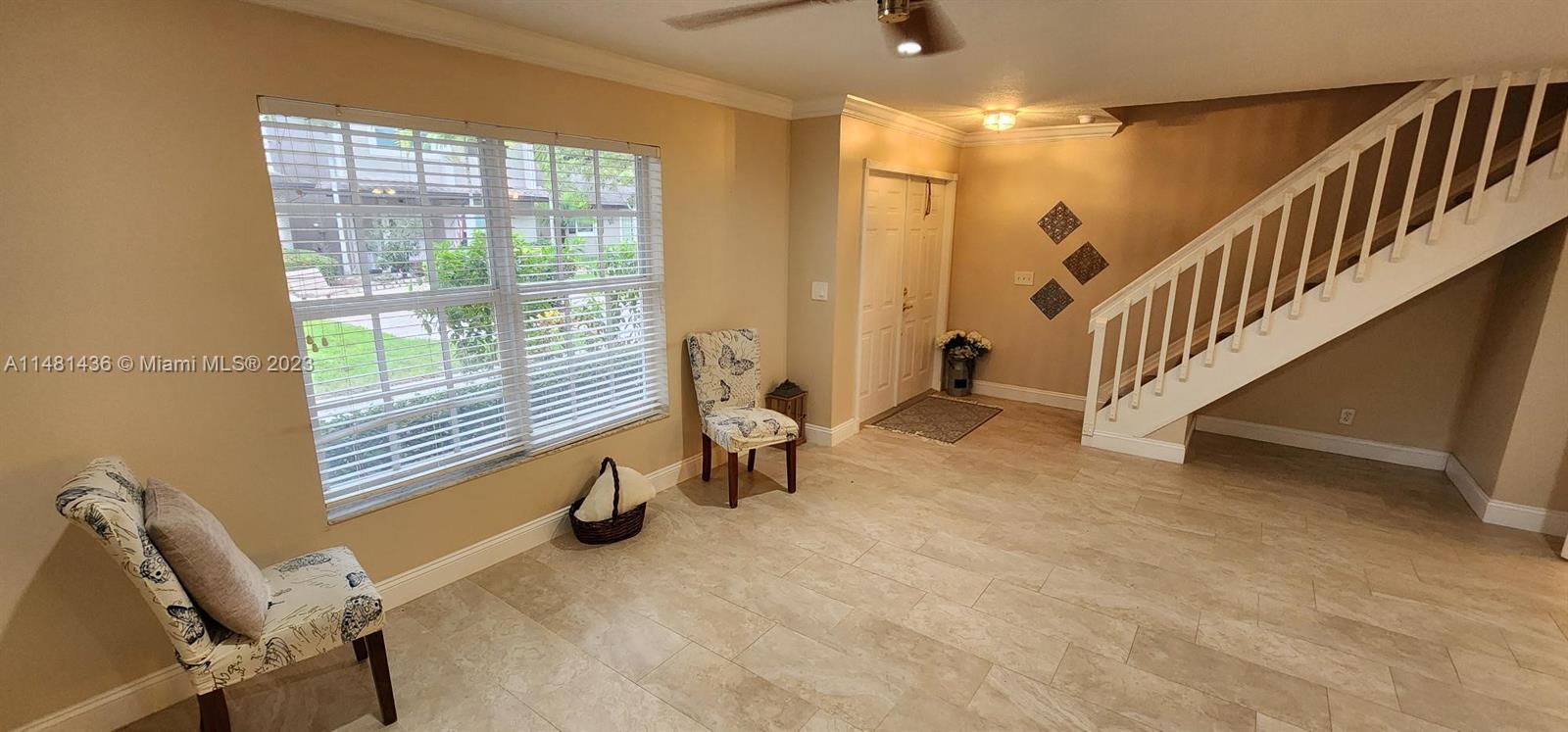 This spacious 3 bedrooms 2 1/2 baths townhouse nestled in a courtyard in well sought Colony Courts Sunrise features a great open floorplan. The 1st floor features ceramic tiles, a double door entry that leads to a formal separate living room, dining room with a big open kitchen & powder room. All 3 bedrooms are upstairs. Second floor features vaulted ceilings, plenty of walk in closets & carpet throughout. Washer/dryer downstairs. Big storage room in the back. Private backyard. community. Plenty of guest parking. Very low HOA. Impact windows throughout, new AC unit installed this month. Located just minutes from famous Sawgrass Mills mall, and the Sawgrass Expressway.