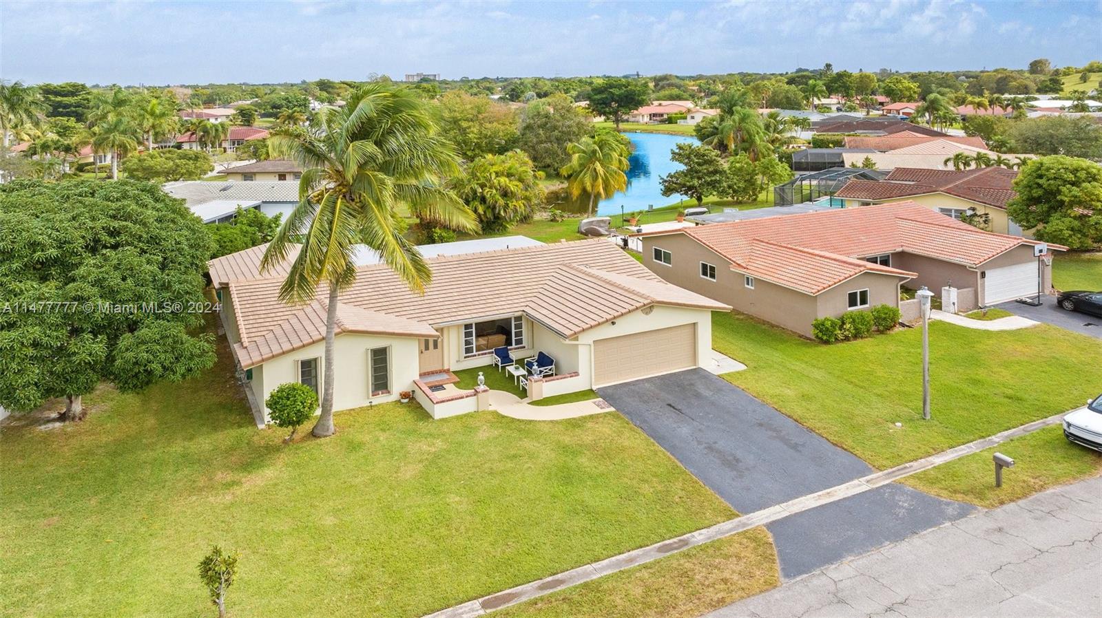 Welcome home! Beautiful waterfront 3BR,2BA,2CG with new (2023) roof on oversized lot in rarely available Westchester community (NO HOA).This wonderfully maintained home features open floor plan, large bedrooms, tile throughout, fresh paint, LED recessed lighting, accordion shutters & insulated hurricane rated impact garage door. Spacious eat-in kitchen with newer stainless-steel appliances & Corian countertops. Relax & enjoy large, screened patio w/ fabulous water views & plenty of room for a pool. Fenced area within backyard perfect for dog run or garden. Enjoy walking distance to nearby schools, the Florida Panthers Ice Den, CS Sportsplex, and bike/walk trails. Close to Sawgrass Expressway, shopping, dining, and South Florida’s beautiful beaches. See Broker Remarks.