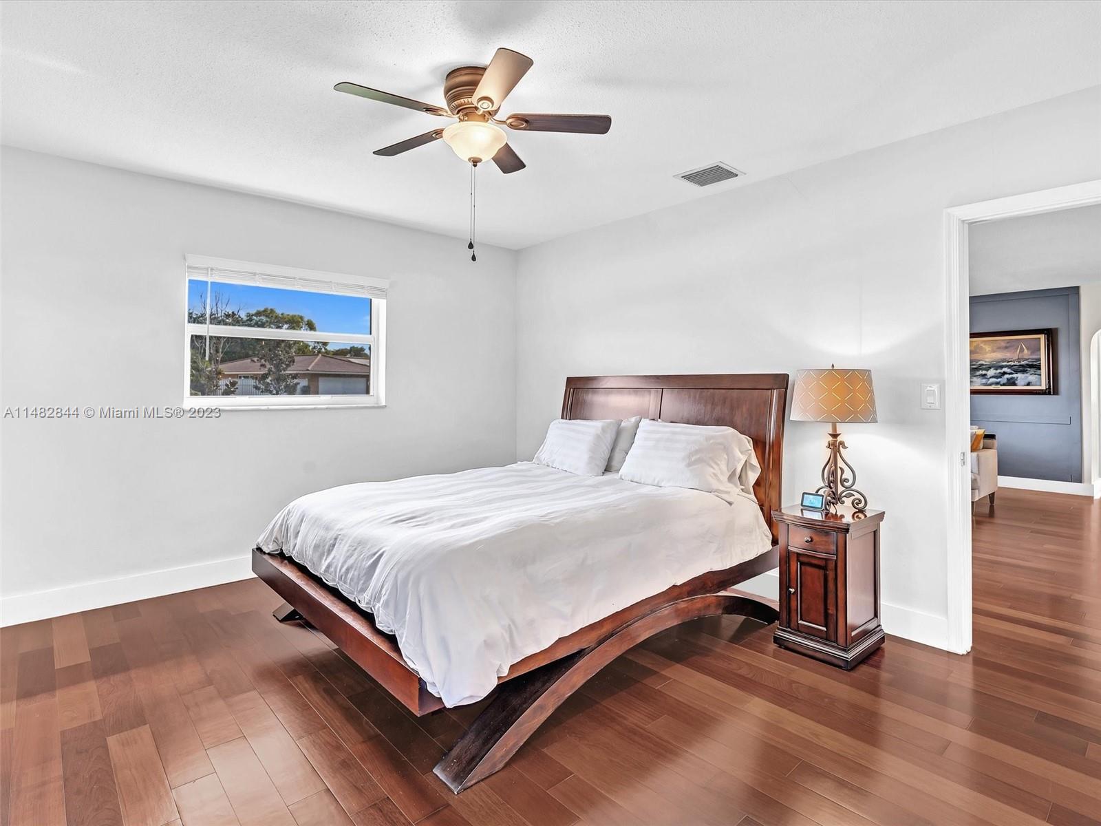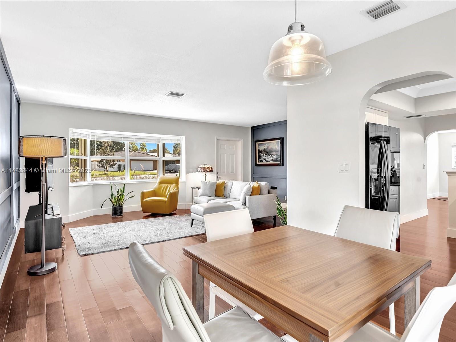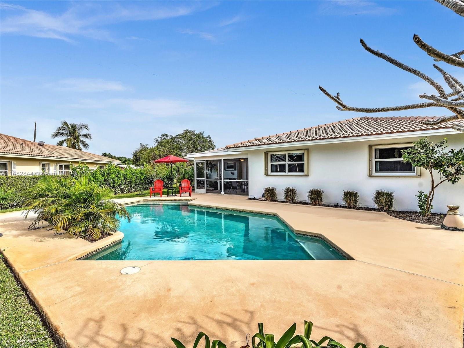 PRICE REDUCED - This meticulously maintained home boasts a perfect blend of comfort & desirable features that make it a dream abode. Beautifully landscaped & NO HOA. Gleaming "oak" hardwood flooring extending throughout most of the home w/abundance natural light, nicely appointed kitchen + adjacent breakfast nook (w/ the possibility to extend the kitchen). Freshly painted inside/out, new driveway, updated sprinkler system & illuminated in the evening. The home offers a split bedrm plan living/dining area, versatile "Den" w/hurricane shutters throughout. The pool area is a serene retreat surrounded by lush landscape "VERY PRIVATE", an expansive backyard, screened patio- shaded haven for both lounging & al fresco dining. This home embodies complete comfort, relaxation & outdoor enjoyment.