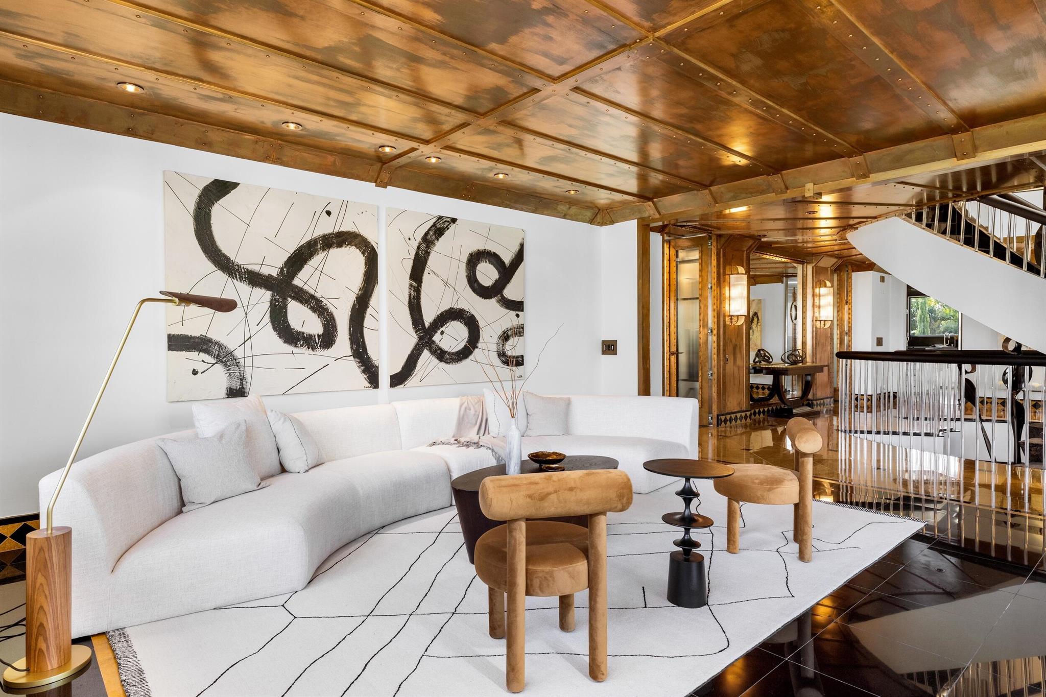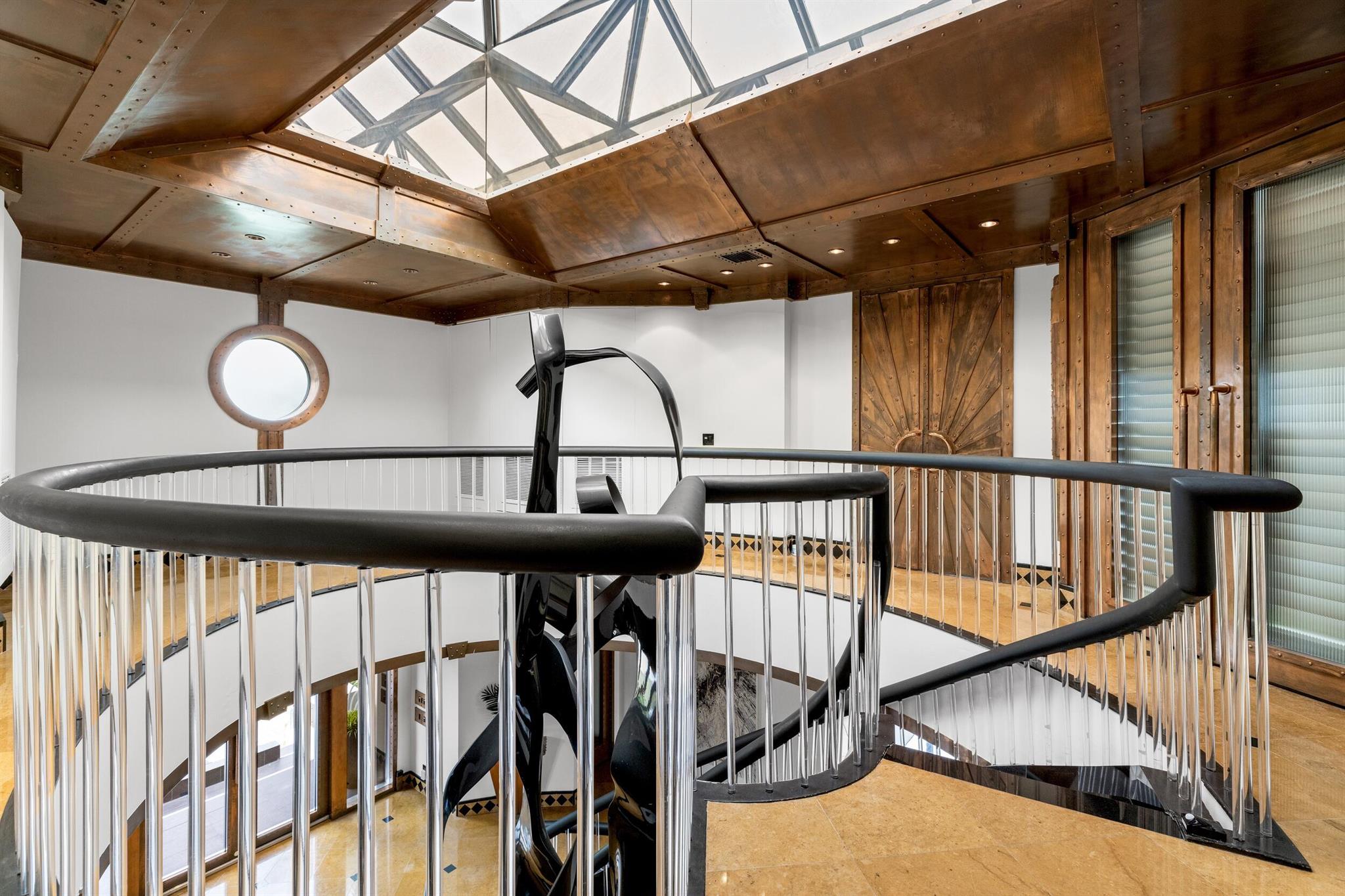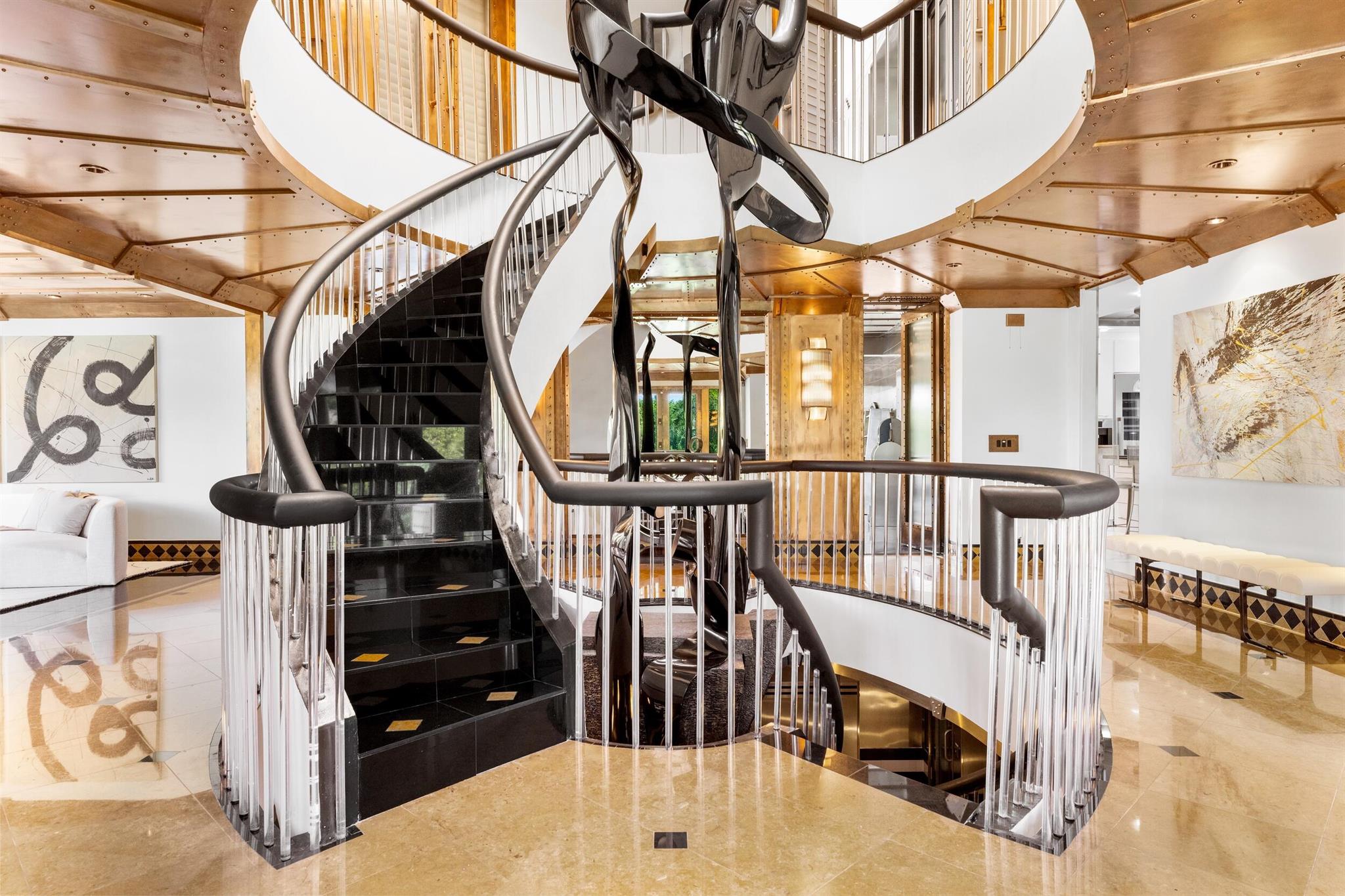 Situated on a coveted 0.81-acre double lot within the prestigious Boca Grove Country Club, this magnificent estate represents a private compound of unparalleled elegance. Comprising four individual structures, all seamlessly united under one single club membership, the property boasts a distinctive mid-century Italian modern motif that captivates upon arrival.Upon entering the copper and stainless steel ornamented main residence (7,641sf) located on the second floor, a grand spiral staircase elegantly connects all three levels of this thoughtfully designed construction. Designed for both extravagant entertaining and privacy, the property features an owner's primary suite on the entire third floor. SEE MORE..