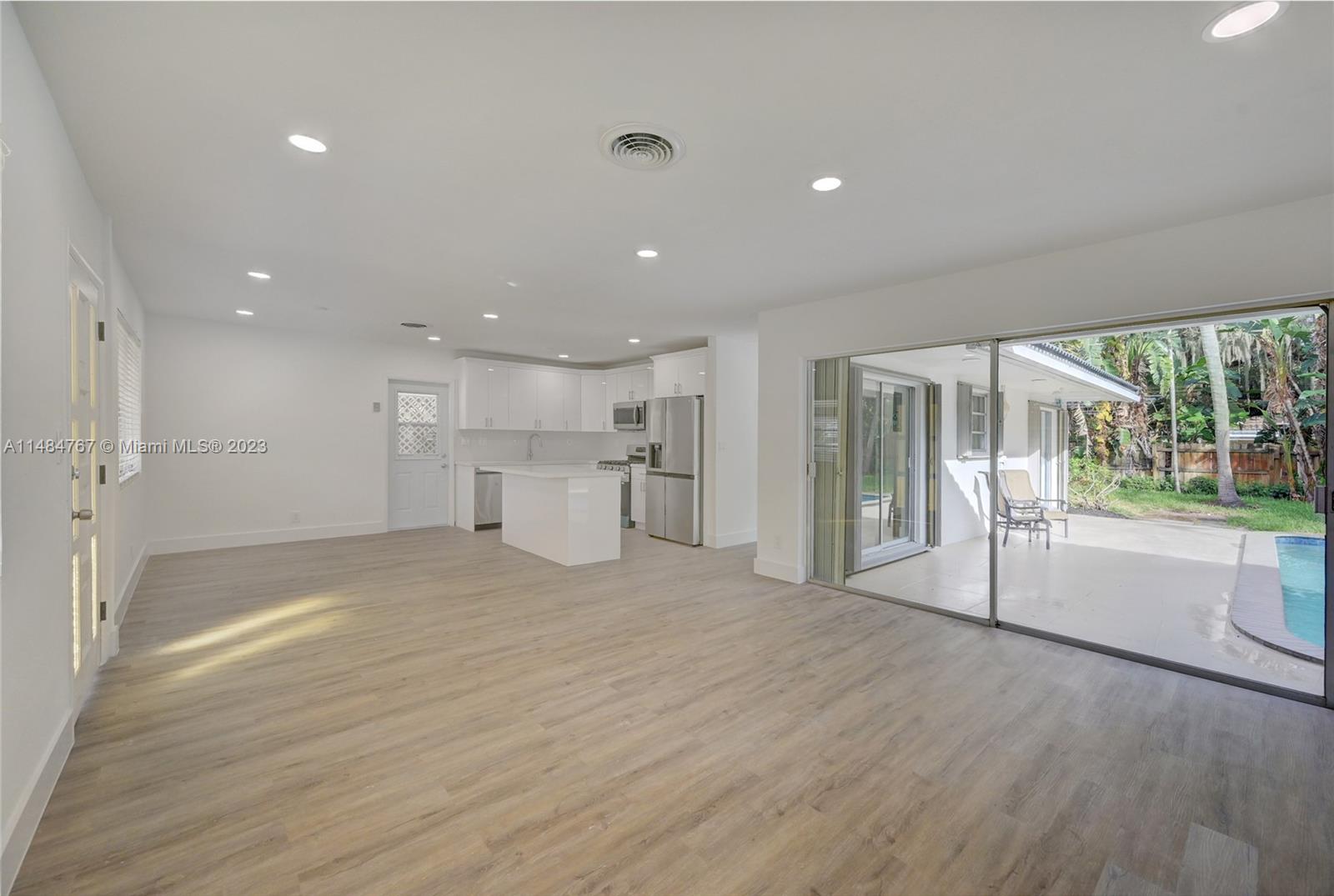 Experience the essence of Florida lifestyle in this newly renovated pool home located in the vibrant Bel-Ter neighborhood of Riverland, Fort Lauderdale. This home features an open floor plan with 3 ample bedrooms, 2 modern bathrooms with smart mirrors, white wood vanities & updated lighting. The heart of this home is the open-concept island kitchen equipped with brand new stainless steel appliances & quartz countertops. Stylish vinyl wood flooring connect every room, each offering a view of the pristine pool & patio, surrounded by lush landscaping. An expansive wood deck sets the stage for private BBQs & entertainment. Ideally situated near major highways, top-notch dining, shopping & entertainment. Just 10-15 minutes away from the beach, airport & Port Everglades.