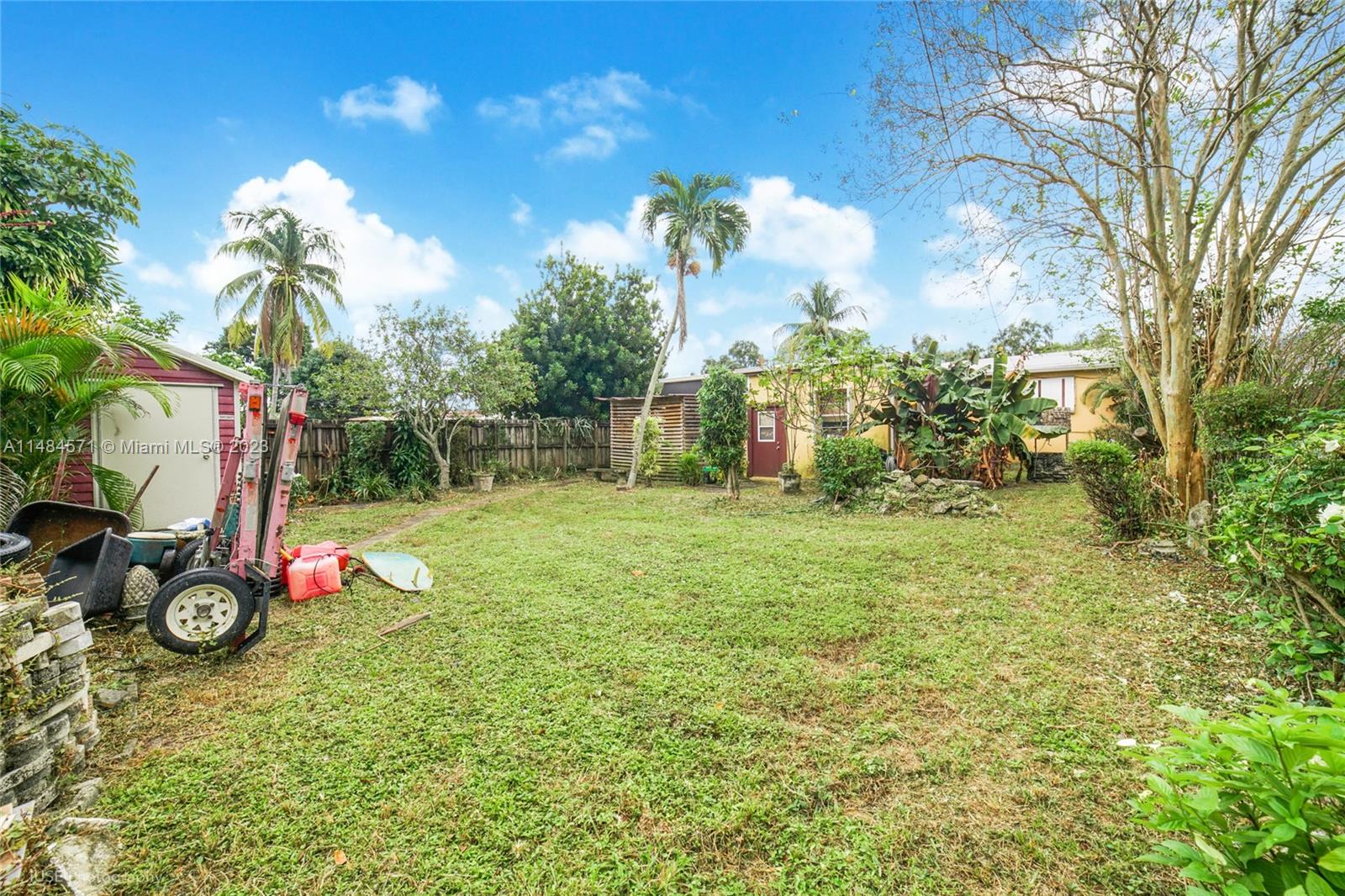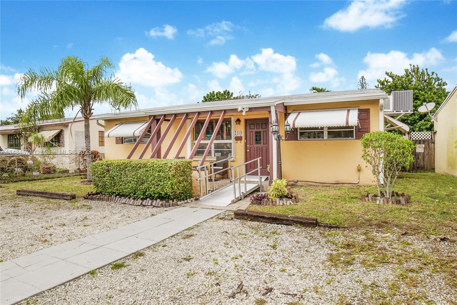 Wonderful 3 bedroom 2 full bath, single family home now available. Primary bedroom has ensuite shower room. 2 large size guest bedrooms and Formal living room plus den/family room (with backyard access) and garage (last used as a work shop) Full size washer/dryer. This spacious home has been lovingly updated with newer kitchen and family style dining. Brand new A/C (in 9/2023) under warranty. Newer roof (approx two-three years new), tile throughout. Large backyard in great Hollywood location, minutes east of I-95. Artistic features make this a unique home. Must see to appreciate. Motivated Seller. NO HOA's here. Single family home with plenty of parking for cars and big toys. Large fenced backyard with shed.