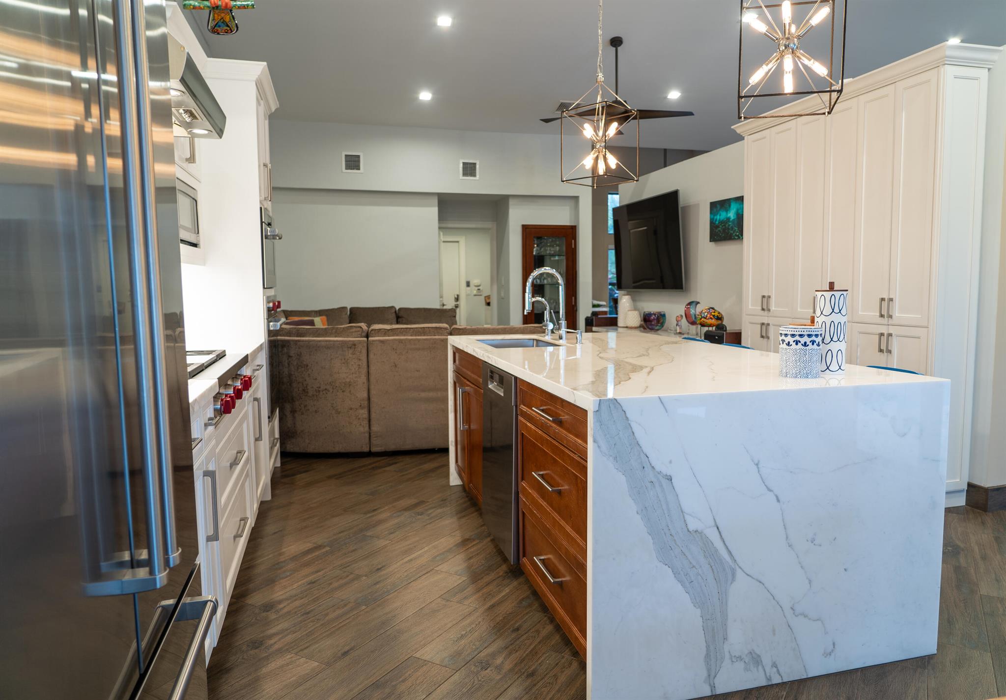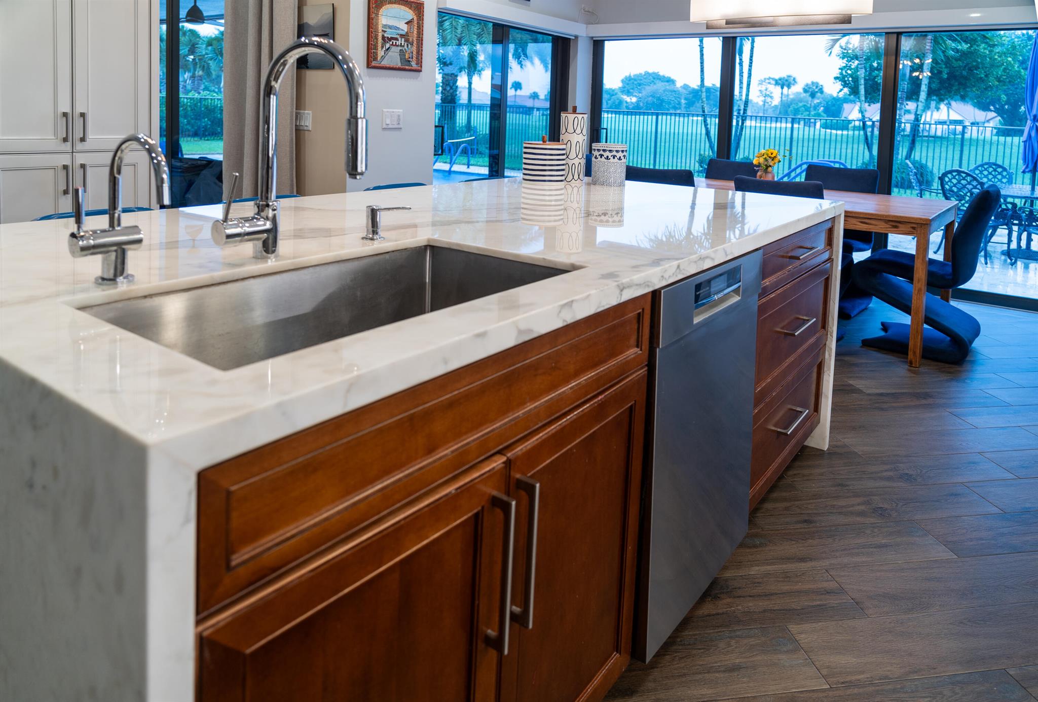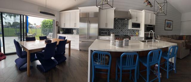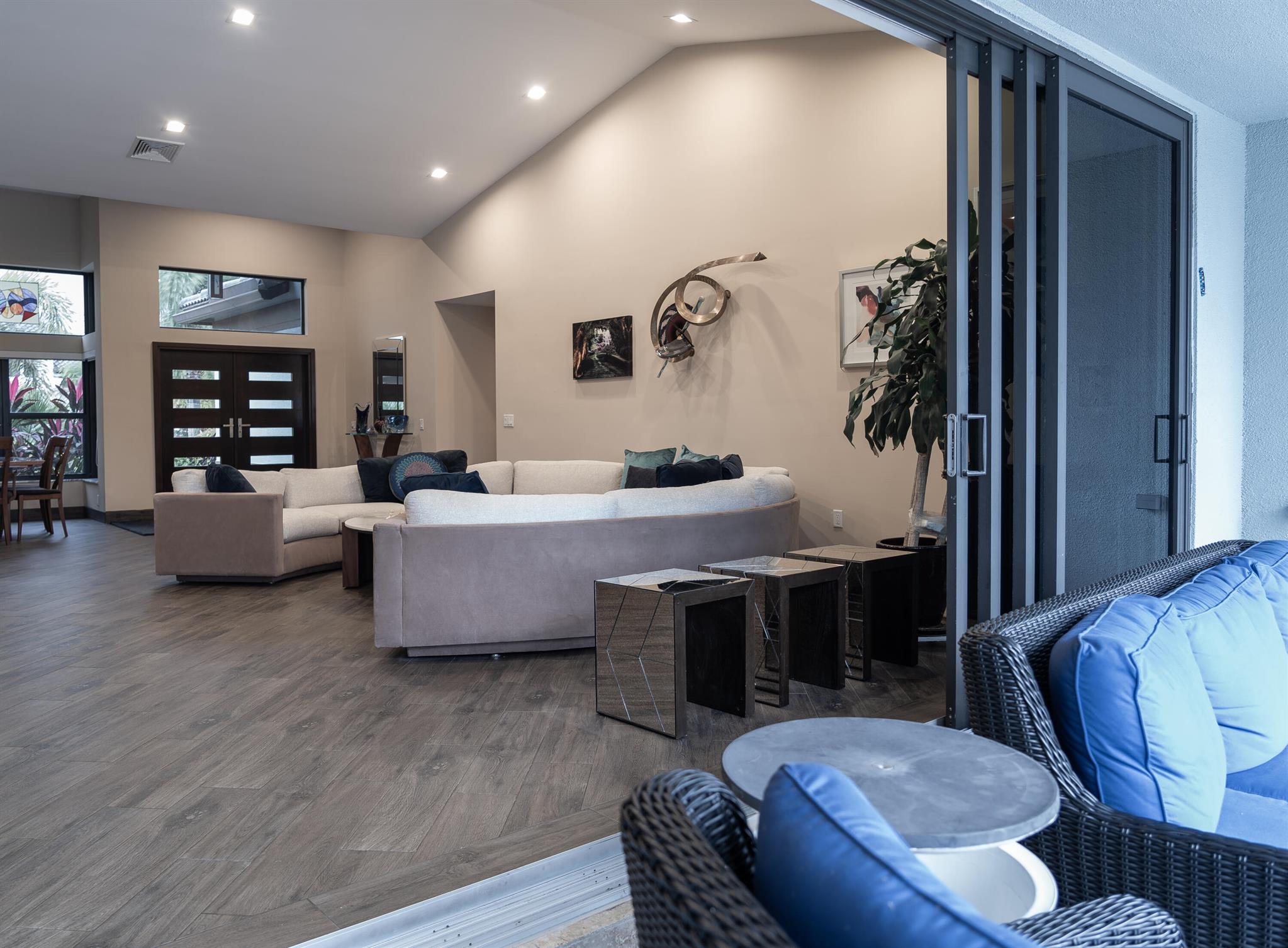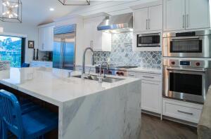 This house is a 'TURNKEY' fully renovated home of warmth and high end finishes with everything rebuilt and replaced in 2018 from the baths to the pool and the roof and all mechanical components. It has ALL PORCELAIN flooring. Make an appointment to see it as soon as possible.This home is for the discerning homeowner. You enter this understated spectacular home through rich dark mahogany double doors experiencing soaring cathedral ceilings flowing into the living spaces of the entry, living and dining rooms leading into the professional WOLF SUBZERO kitchen and great room. The original kitchen and den were re-engineered into this fabulous calacatta marble kitchen and truly GREAT room with 18 feet of
