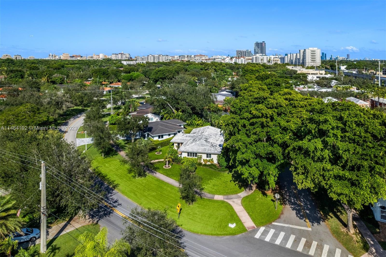 Charming 3-bed 2-bath home on a 10,000 sq ft corner lot in the heart of Coral Gables. Natural light bathes hardwood floors in the main living areas, and wooden millwork accents extend to the kitchen and bedrooms with tongue and groove ceilings. The light and airy kitchen comes with a double oven and Corian countertops. The bathrooms were remodeled in 2016; impact windows and doors and a new storm door for the 2-car garage were installed in 2017; and in 2023 a new air conditioning unit and septic tank were put in. Mature landscaping and a Calusa privacy-hedge borders the generously sized backyard, with room for plantings around existing fruit trees, or installing a deck or pool for entertaining. Within minutes of a Metrorail Station, Coral Gables Youth Center, Merrick Park and Miracle Mile.