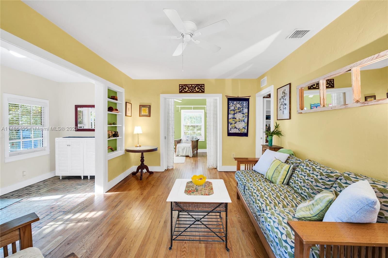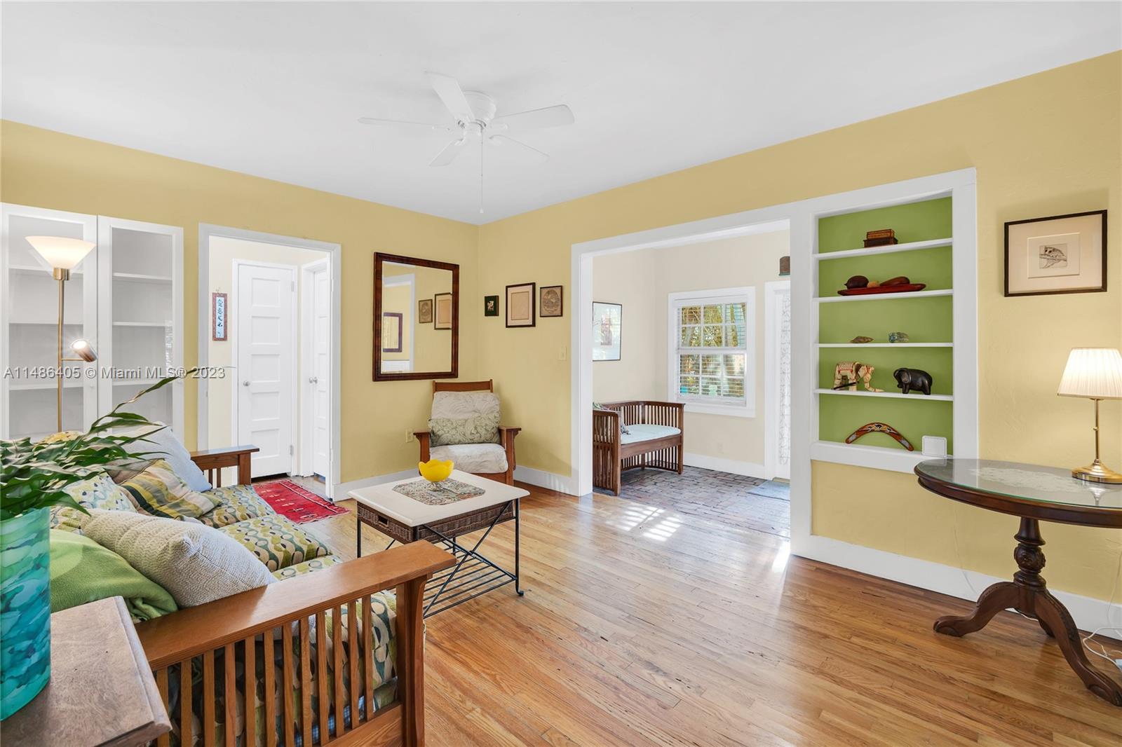 Cape Cod in Coconut Grove! This charming Center Grove single family home is located on a quiet, tree lined street many other single family home neighbors from the same era. It offers four spacious bedrooms, two full baths, formal living area in addition to family room and dining room where the open kitchen is located. Primary bedroom is located towards the rear of the property and offers privacy from the other three bedrooms and full bath. Home has two welcoming covered patios, one in the front of the house and on the side. All openings are impact except for two doors and one small bathroom window. There is a full attic with access ladder for amazing storage plus a detached shed. Not in a flood zone. Property is zoned duplex and suitable for development of two large town homes.