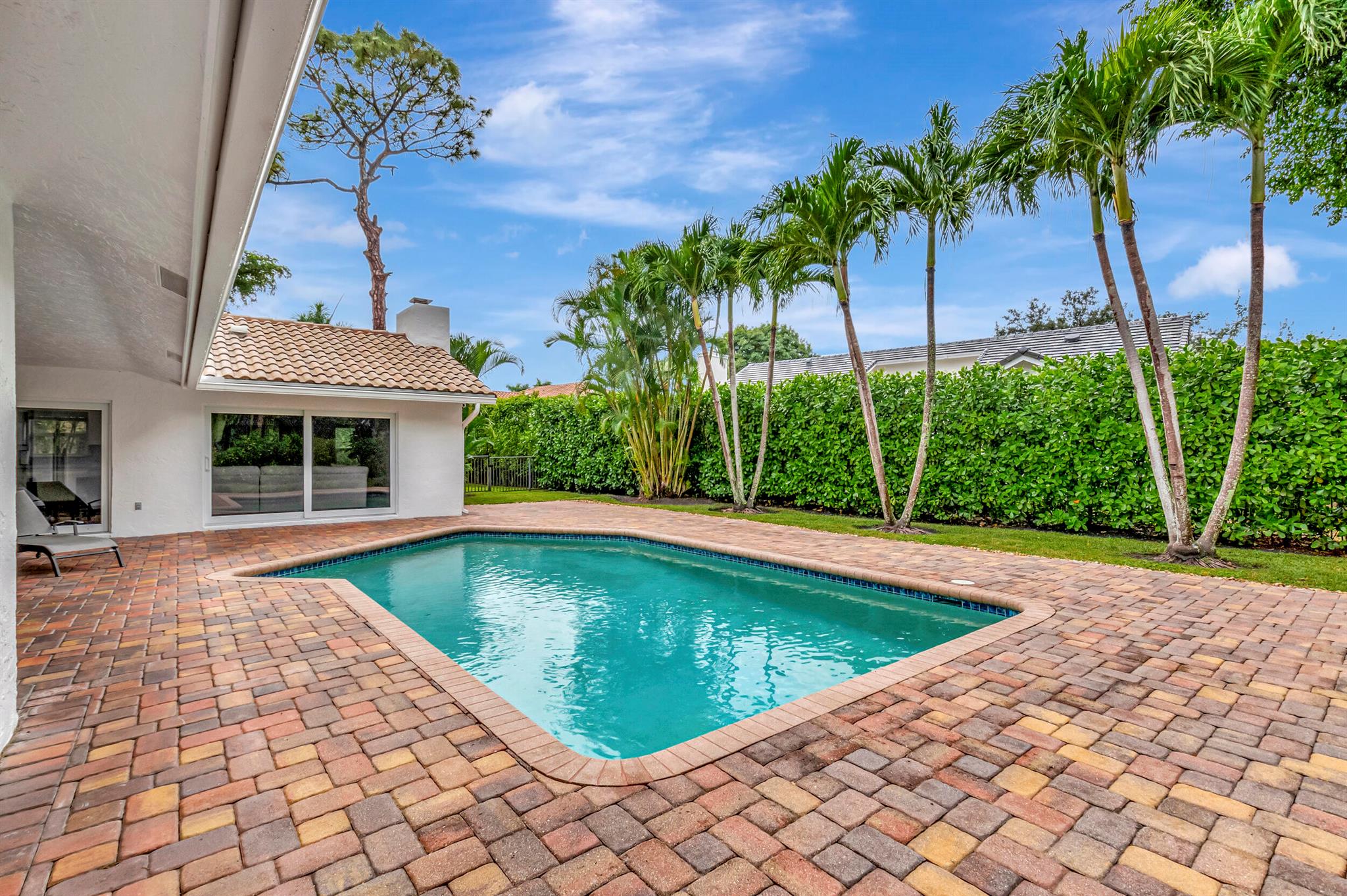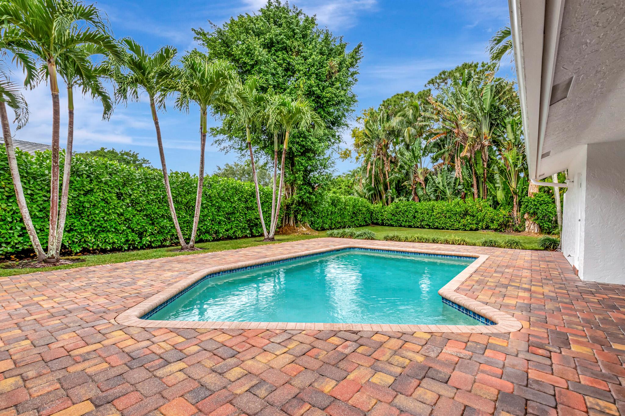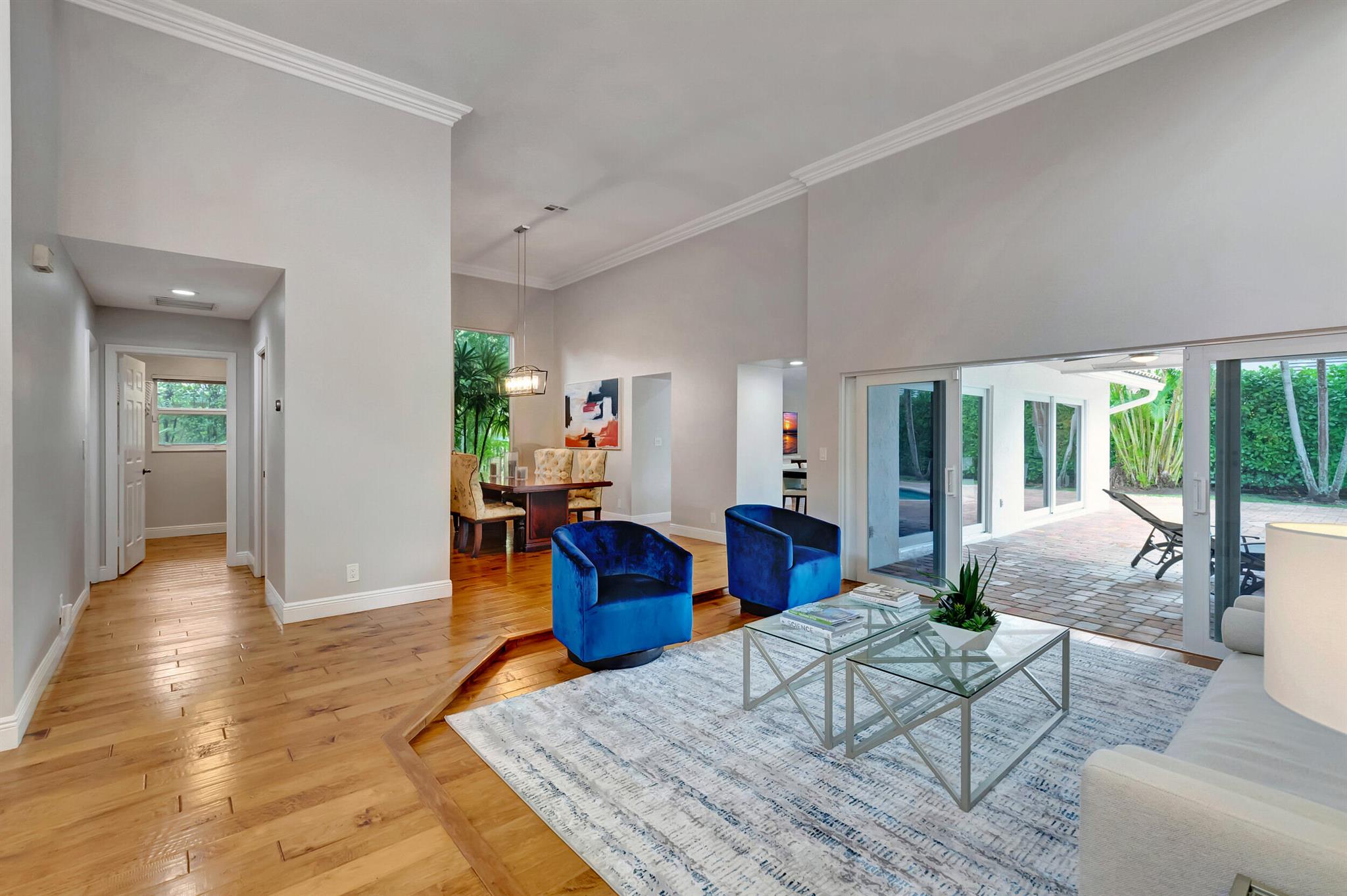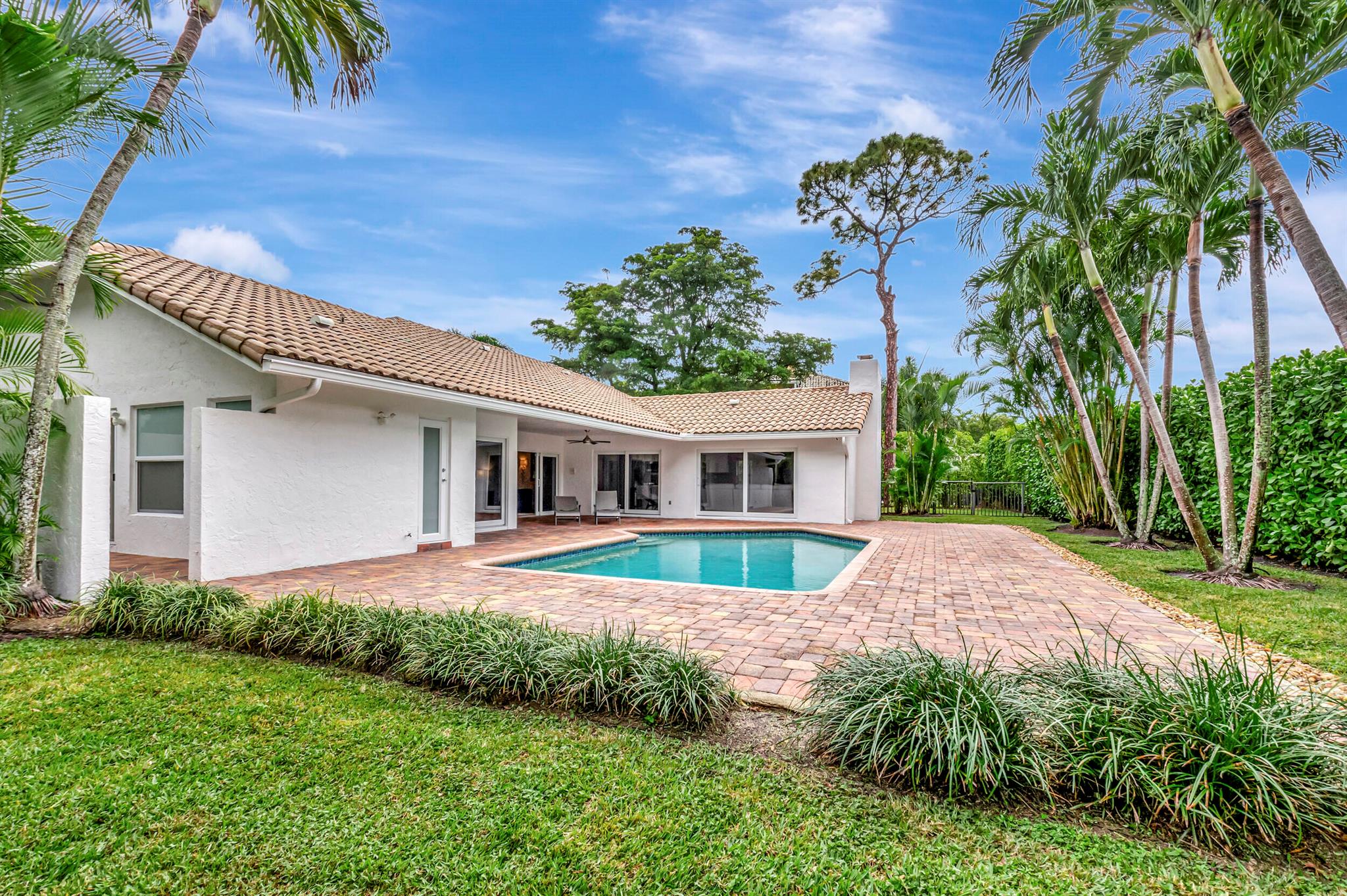 Located in The Colonnade in the heart of Boca Raton, this renovated 4 bedroom, 2.5 bath home, situated on over 1/3 acre lot, is an opportunity you won't want to miss! You'll love the open flow found inside the formal living and dining rooms with over 13 ft ceilings, smooth walls, crown molding, and hardwood floors all protected by impact windows and doors. Designed with entertaining in mind, the gourmet-style kitchen is open to the family room and features quartz counters, stainless appliances & plenty of storage. Enjoy pool views from the primary suite with large walk in closet and relax in the spa like master bath with freestanding tub, marble floors and frameless shower. The brick paved sundeck outback offers