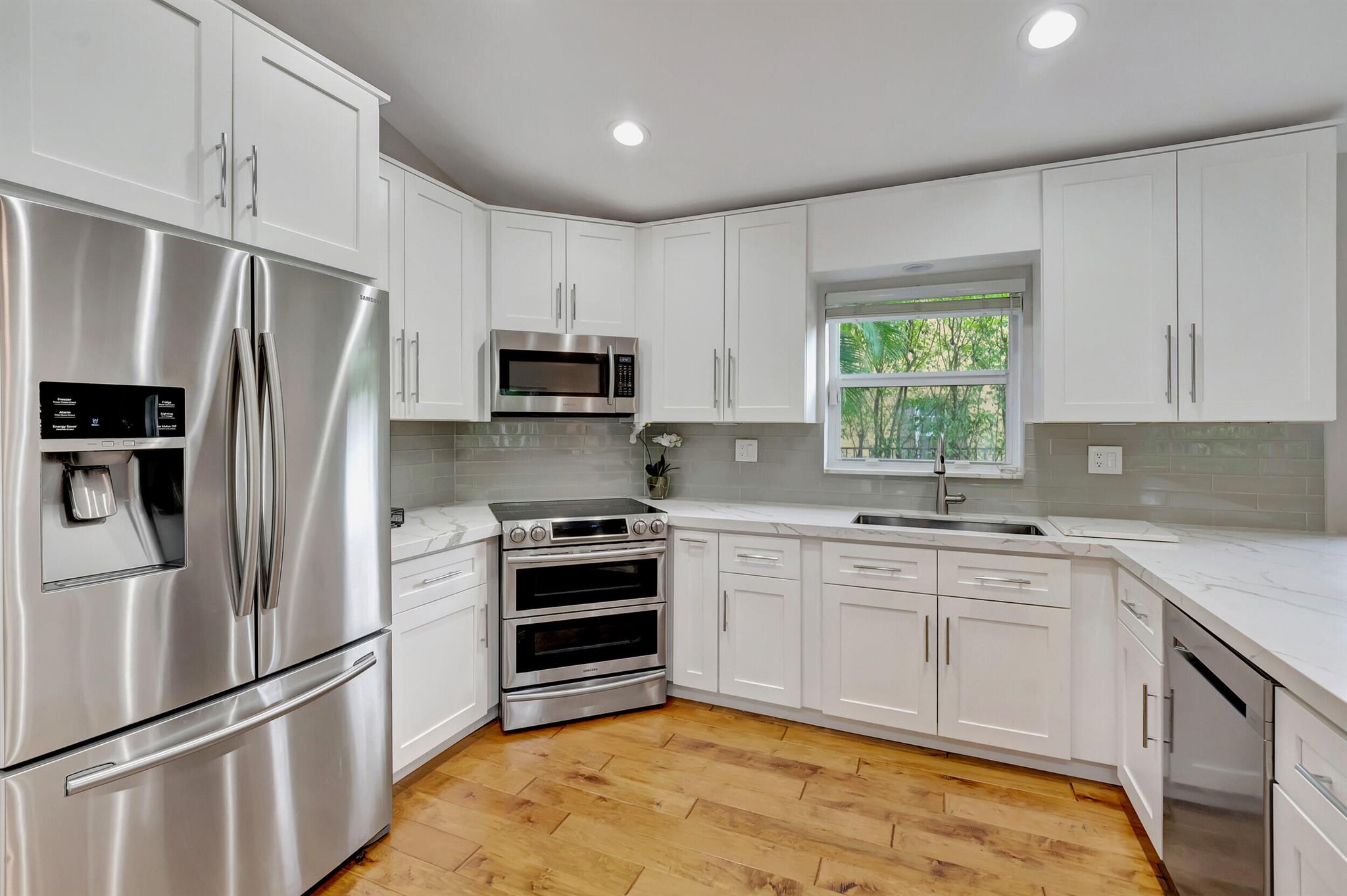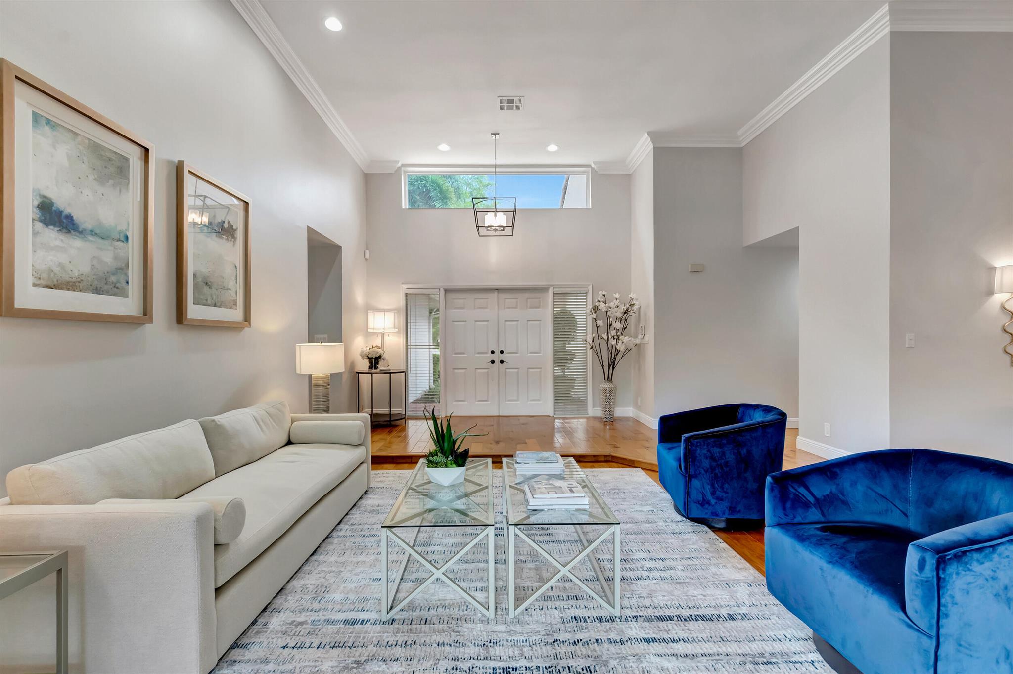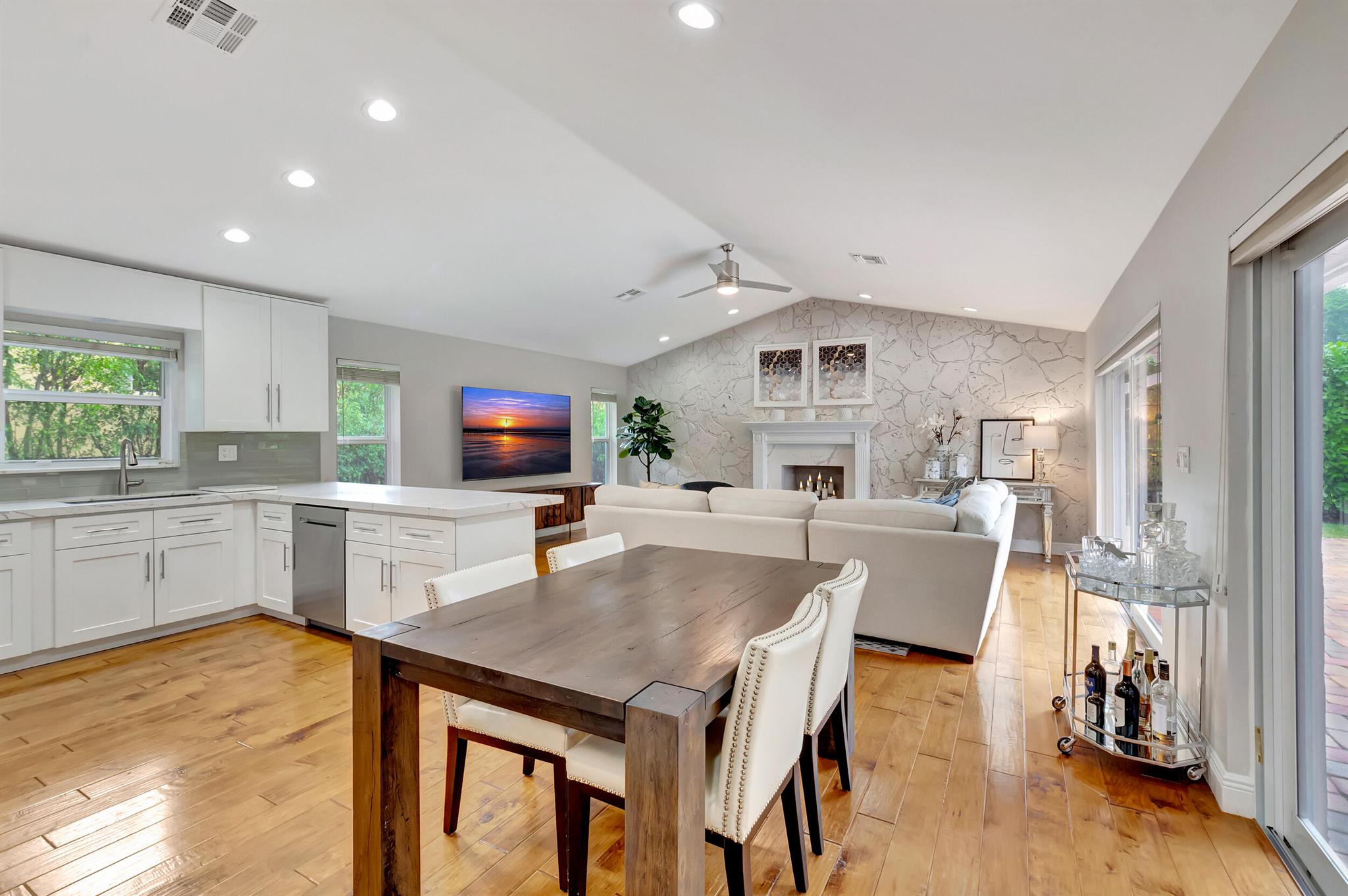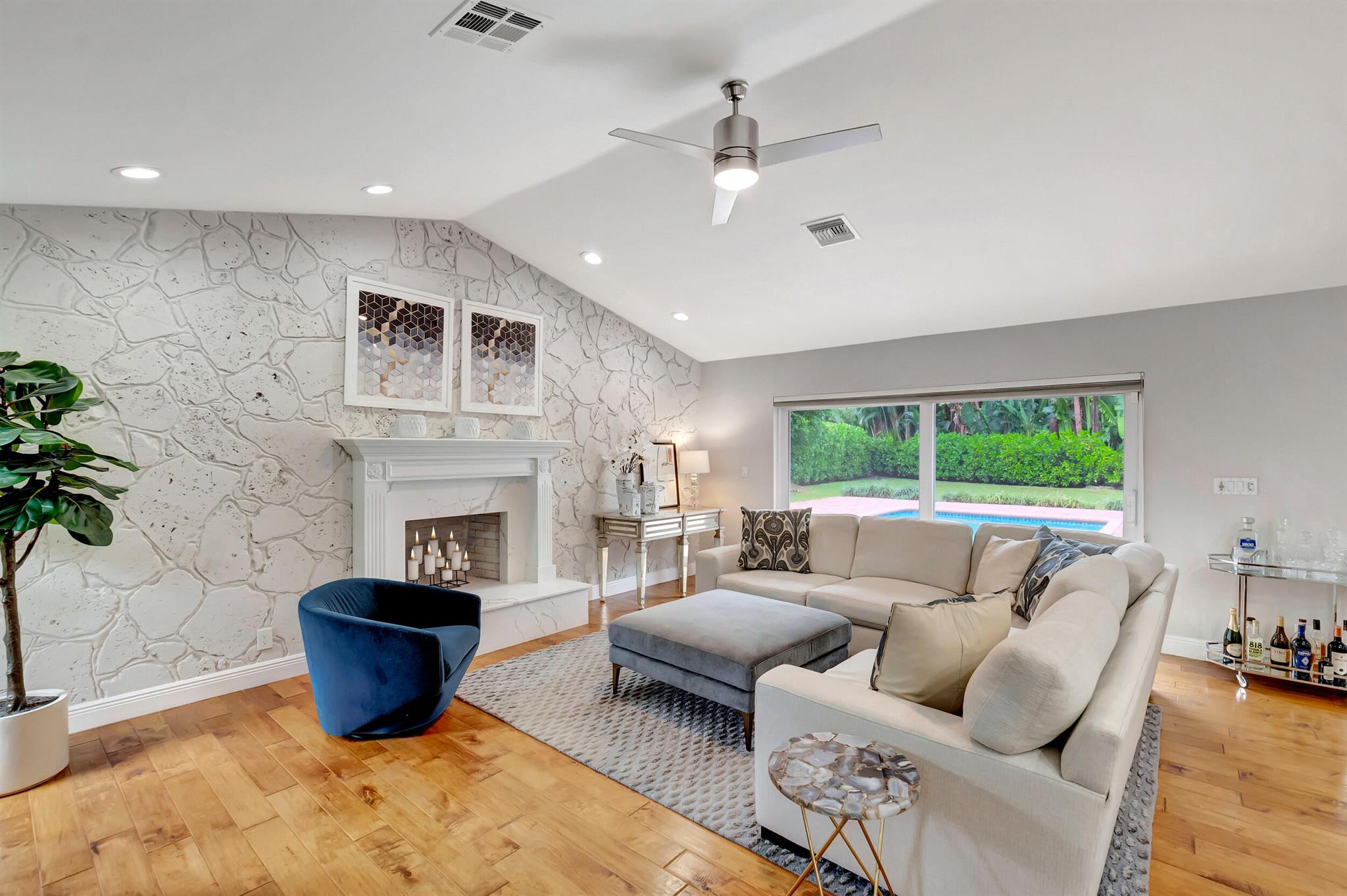 Located in The Colonnade in the heart of Boca Raton, this renovated 4 bedroom, 2.5 bath home, situated on over 1/3 acre lot, is an opportunity you won't want to miss! You'll love the open flow found inside the formal living and dining rooms with over 13 ft ceilings, smooth walls, crown molding, and hardwood floors all protected by impact windows and doors. Designed with entertaining in mind, the gourmet-style kitchen is open to the family room and features quartz counters, stainless appliances & plenty of storage. Enjoy pool views from the primary suite with large walk in closet and relax in the spa like master bath with freestanding tub, marble floors and frameless shower. The brick paved sundeck outback offers