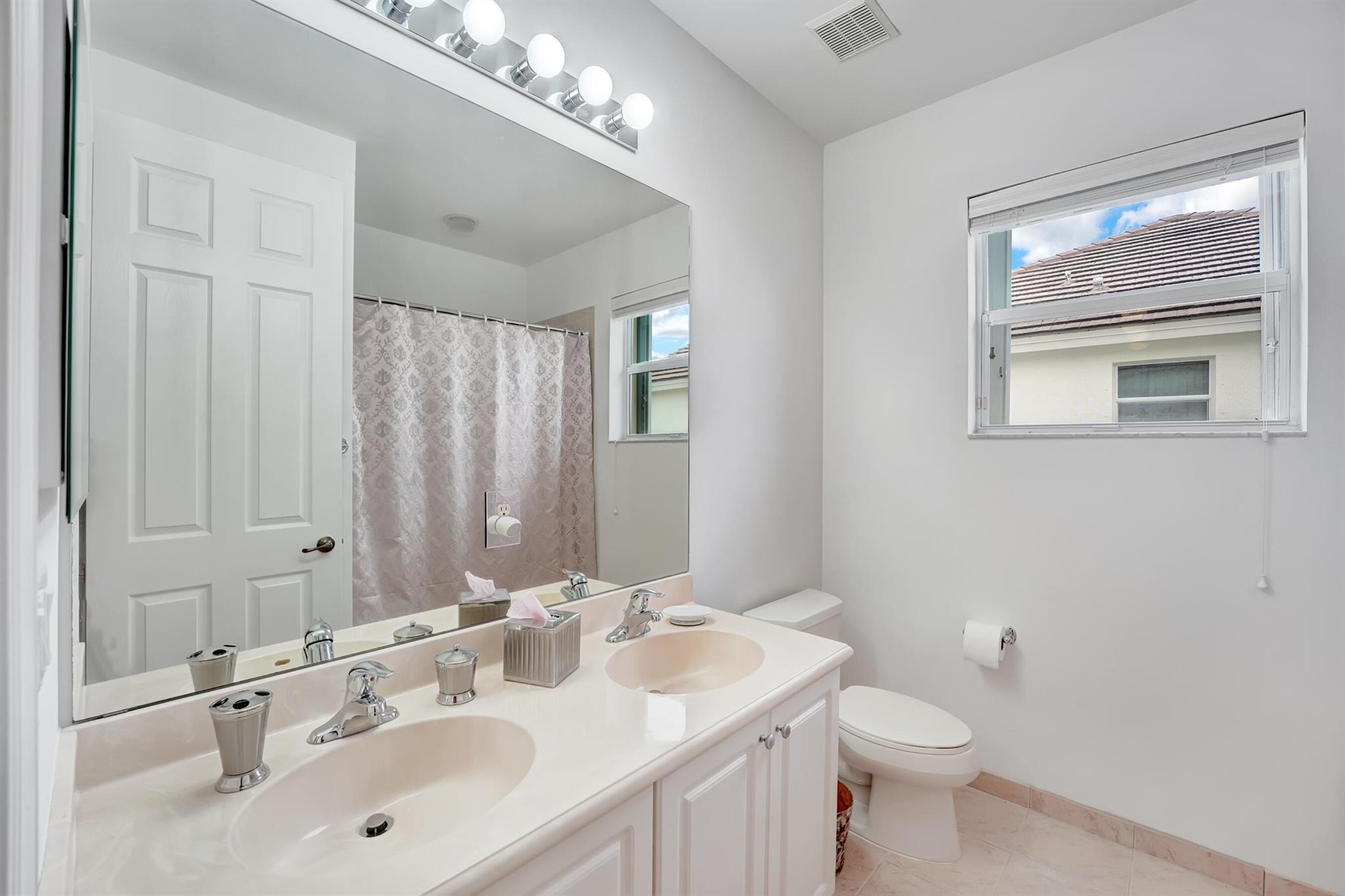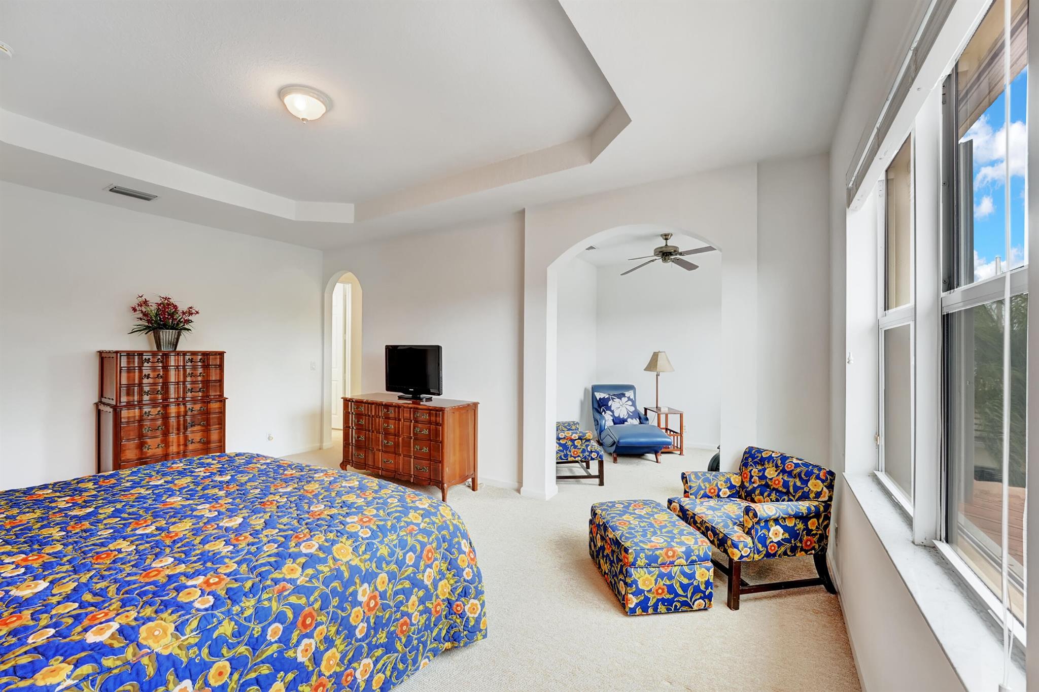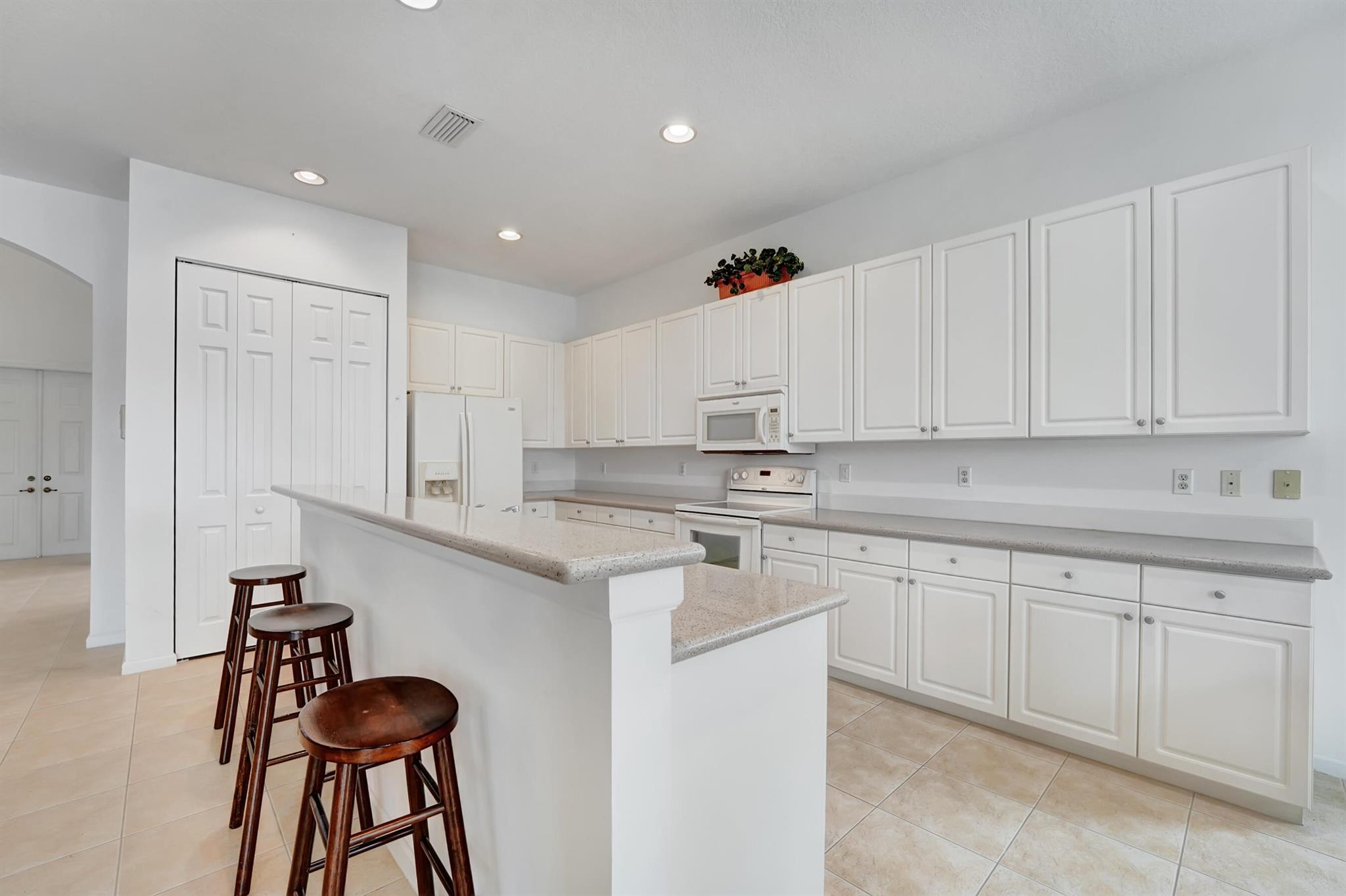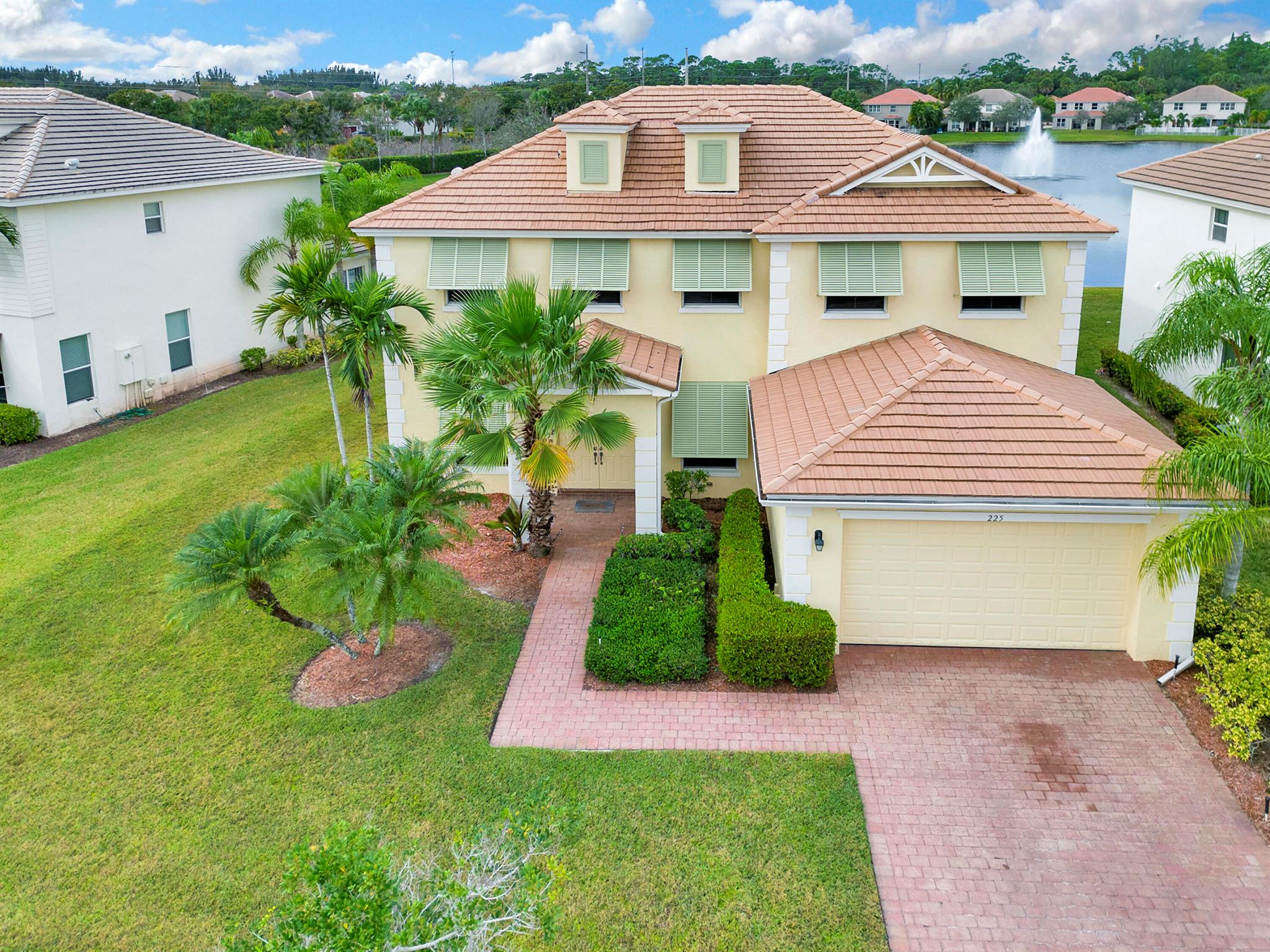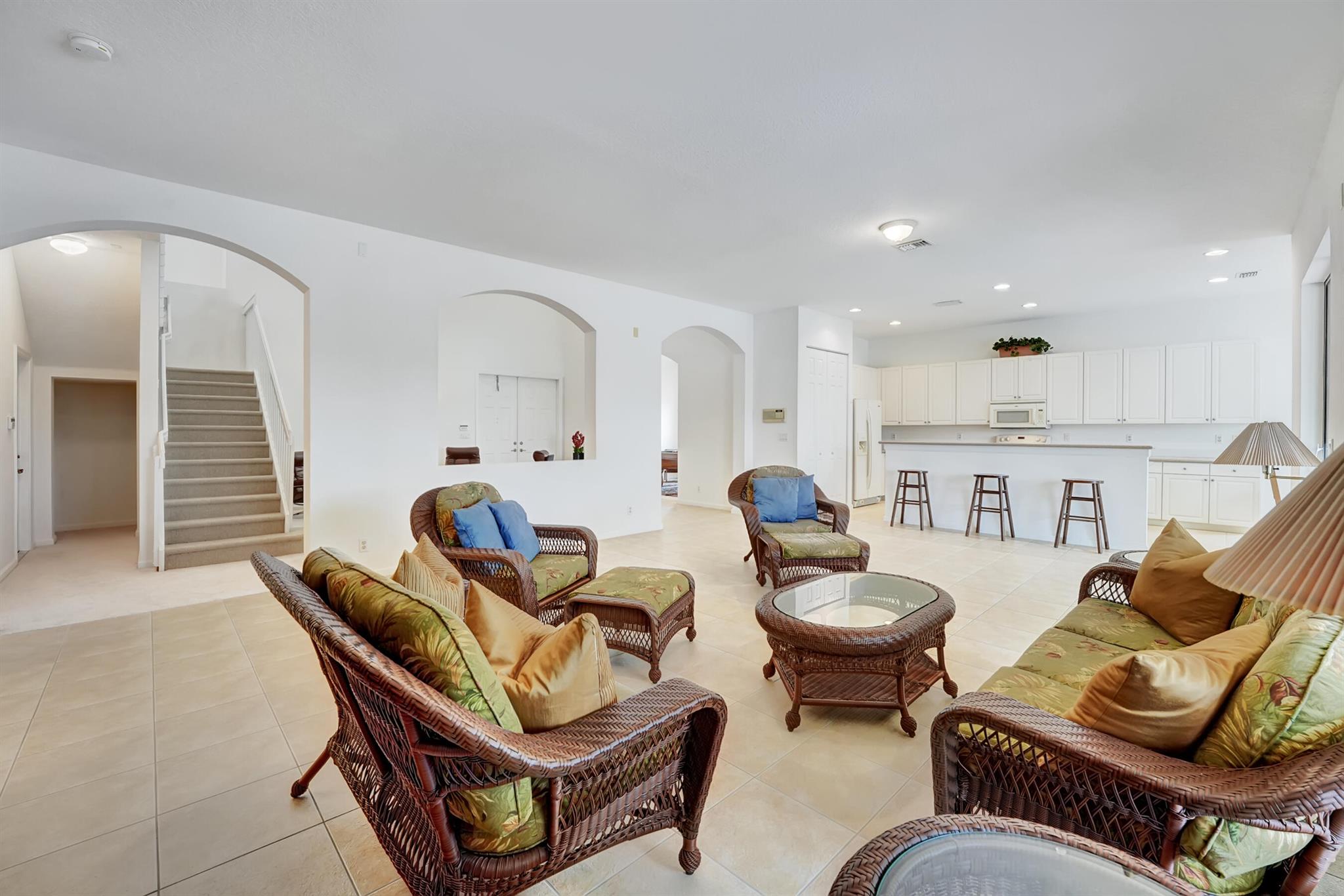 Welcome to the spacious and popular Oakley model, situated on one of the best premium lots with a lake view and a Mediterranean inspired pool. This 5-bedroom, 3-bathroom home with soaring ceilings has 1 bedroom and full cabana bathroom on the 1st floor. The home has been meticulously maintained, is move-in ready and showcases both casual and formal living with an eat-in kitchen which is open to the casual living area overlooking the lanai and pool. The kitchen is well appointed with extensive cabinetry, pantry and features granite countertops with a snack/breakfast bar. The upstairs primary suite overlooking the water is expansive with a seating/gym area off the bedroom and large walk-in closets. The Palm Beach Plantation community is