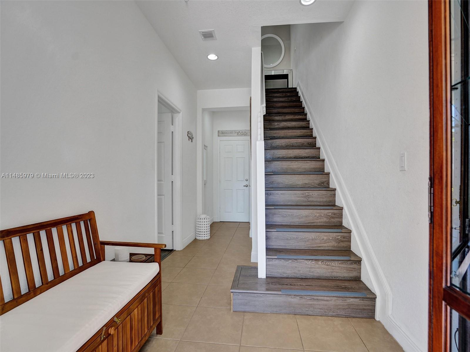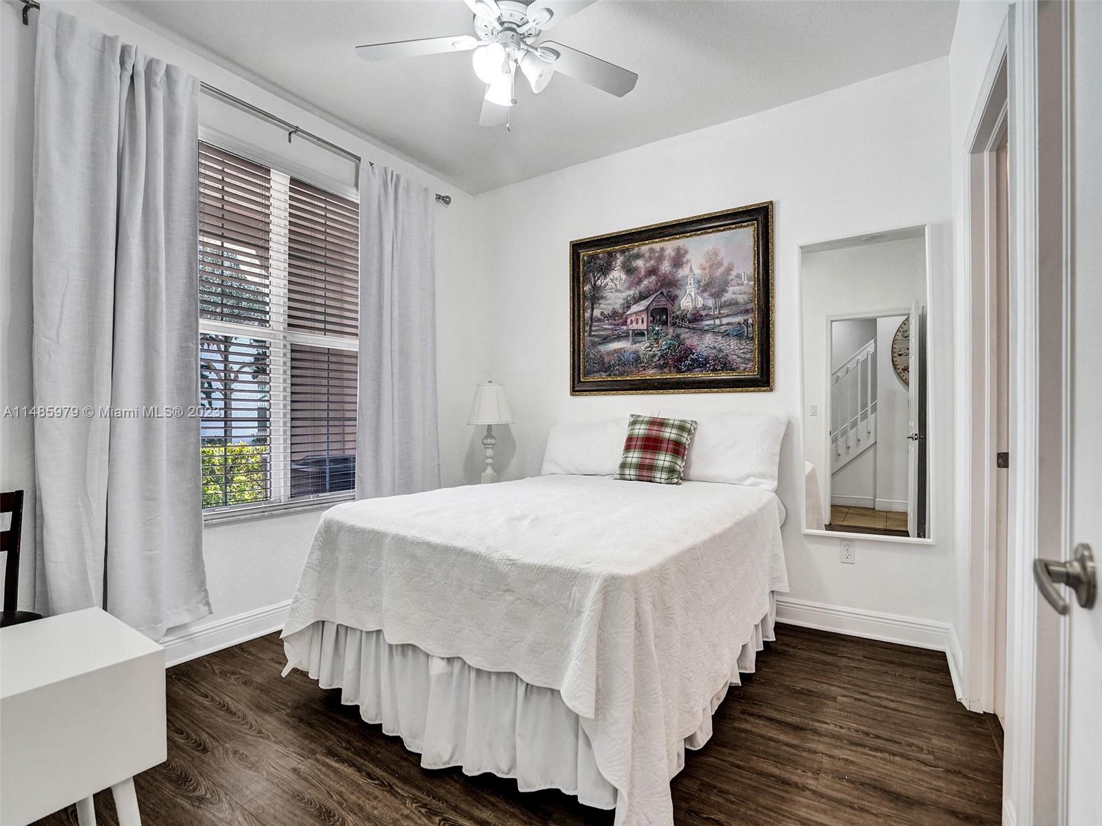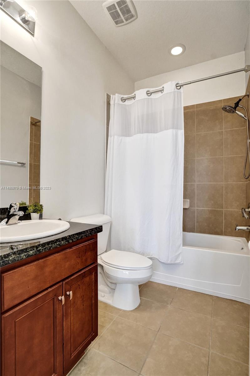 Discover the largest 3-story townhome model in Montclair's gated community in Miramar. This residence boasts 3 bedrooms, 3.5 bathrooms, and a 2-car garage with hurricane impact windows and a spacious balcony. The kitchen features 42" European-style wood cabinetry, a large island, quartz countertops, and stainless-steel Whirlpool appliances. Stylish upgrades include an elegant glass chandelier, tile, and laminate flooring. The master bedroom offers Ikea custom closets. Centrally located with amazing amenities including a clubhouse, gym, pool, and more. A ground-floor bedroom with an ensuite bathroom adds convenience. Residents can unwind in the scenic pool area overlooking a serene lake. Enjoy tranquility in this quiet, upscale community.