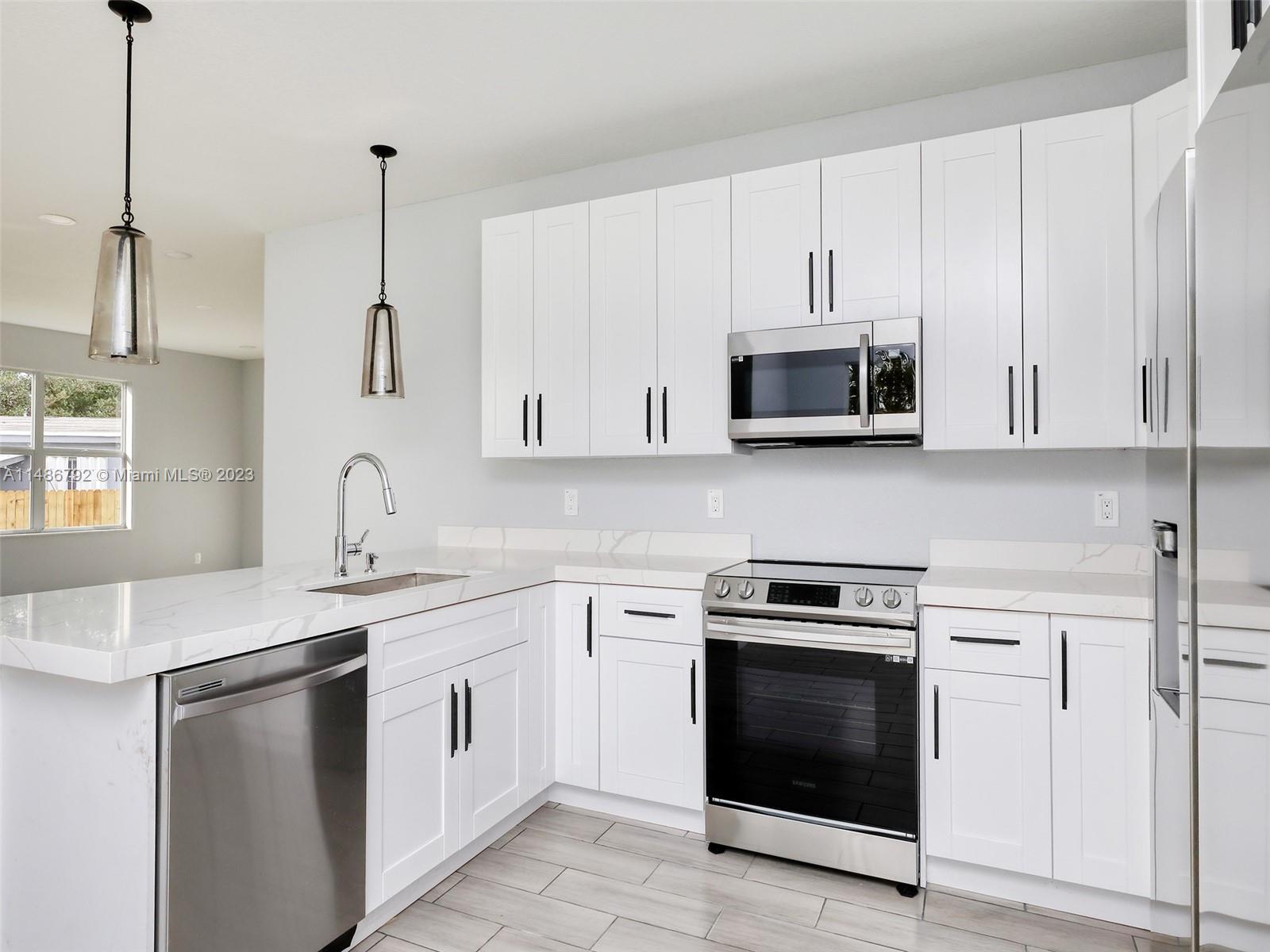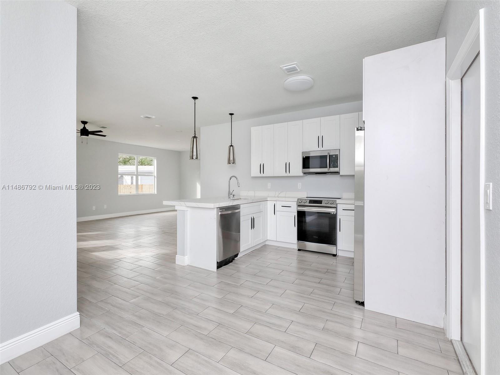 2023 New Construction 3 bed 2 bath 2 car garage, 2184 sq/ft with a large yard in a great area. Modern white kitchen with quartz countertops and all stainless steel appliances included. Washer and dryer included in laundry room. Porcelain tile flooring throughout. Large master bedroom with walk in closet. Built to current building code, includes features such as hurricane impact glass windows and doors, wall and ceiling insulation, energy efficient tankless water heater and air conditioning unit. Includes 1 year builders warranty. No association, not in a flood zone (X). House complete and ready for move in. Seller will pay closing costs and help with rate buy downs.