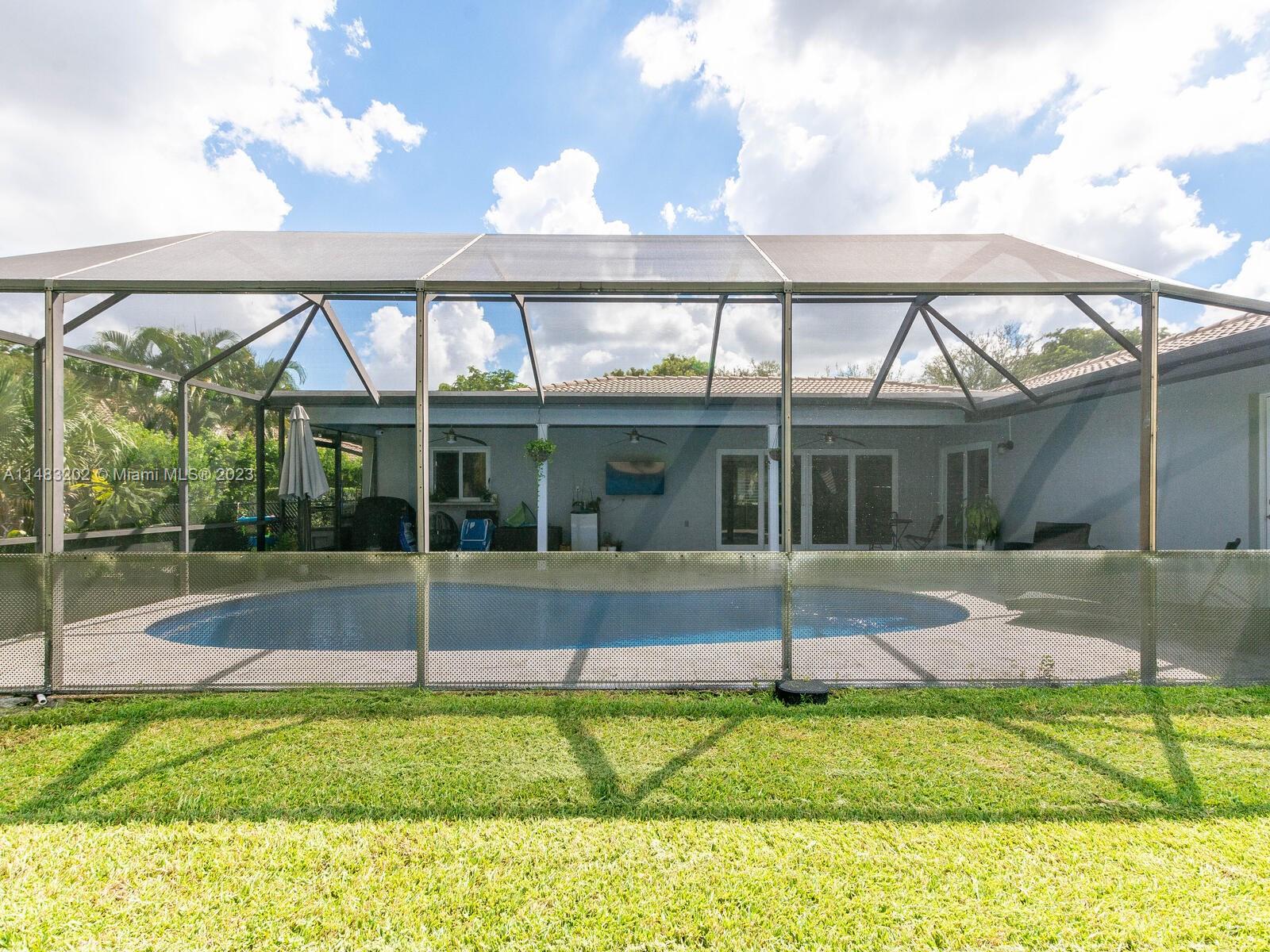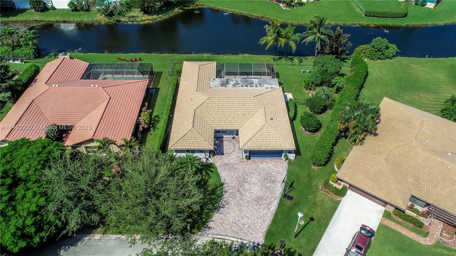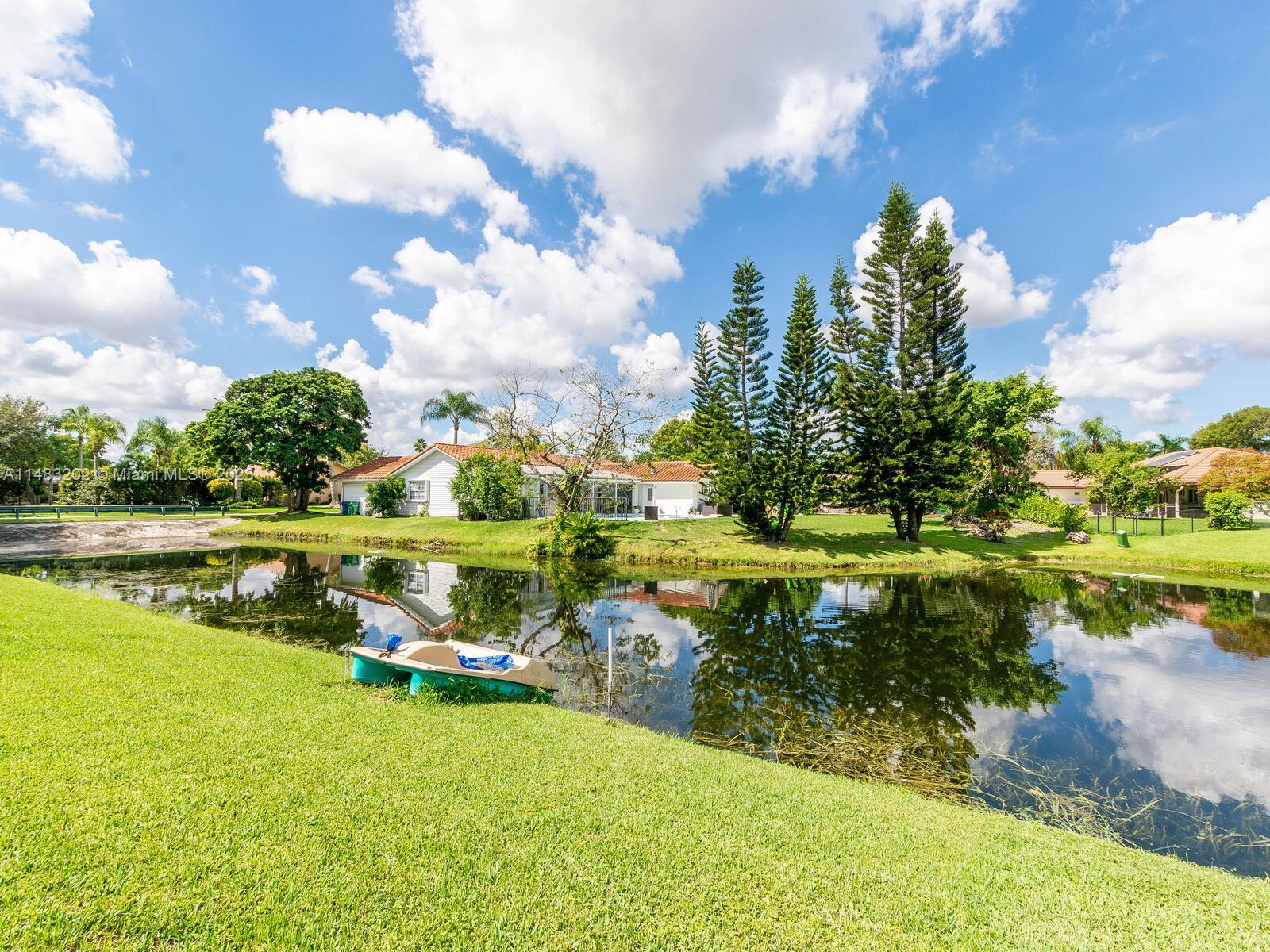 Stunningly updated 4/3 home on the water. Enjoy breathtaking sunsets from the living room, kitchen and back patio or under the mango trees! Located on a quiet street in highly desired community in Coral Springs, this home has all of the improvements you could ever want. Newer roof, & impact doors & windows for maximum safety, security and insurance discounts. Upgrades galore from the extended paver driveway to the front door, also floor to ceiling upgrades with high end laminate in the bedrooms & tile throughout, plantation shutters, fresh paint, & textured ceilings with updated lighting. The huge custom kitchen includes a work area, high end appliances, & storage all around the island. The sparkling blue pool is surrounded by a travertine deck, screened in patio & baby fence installed.