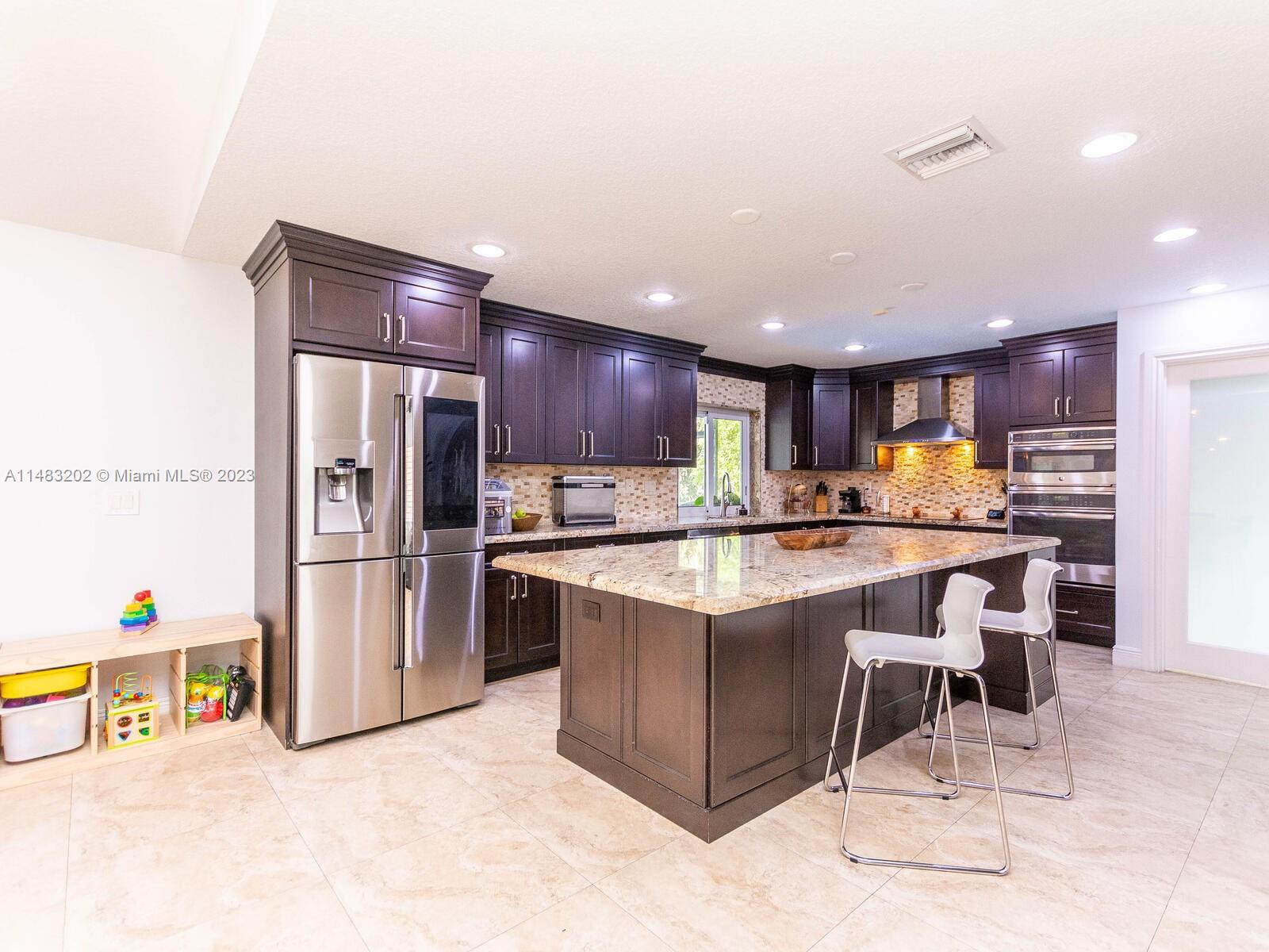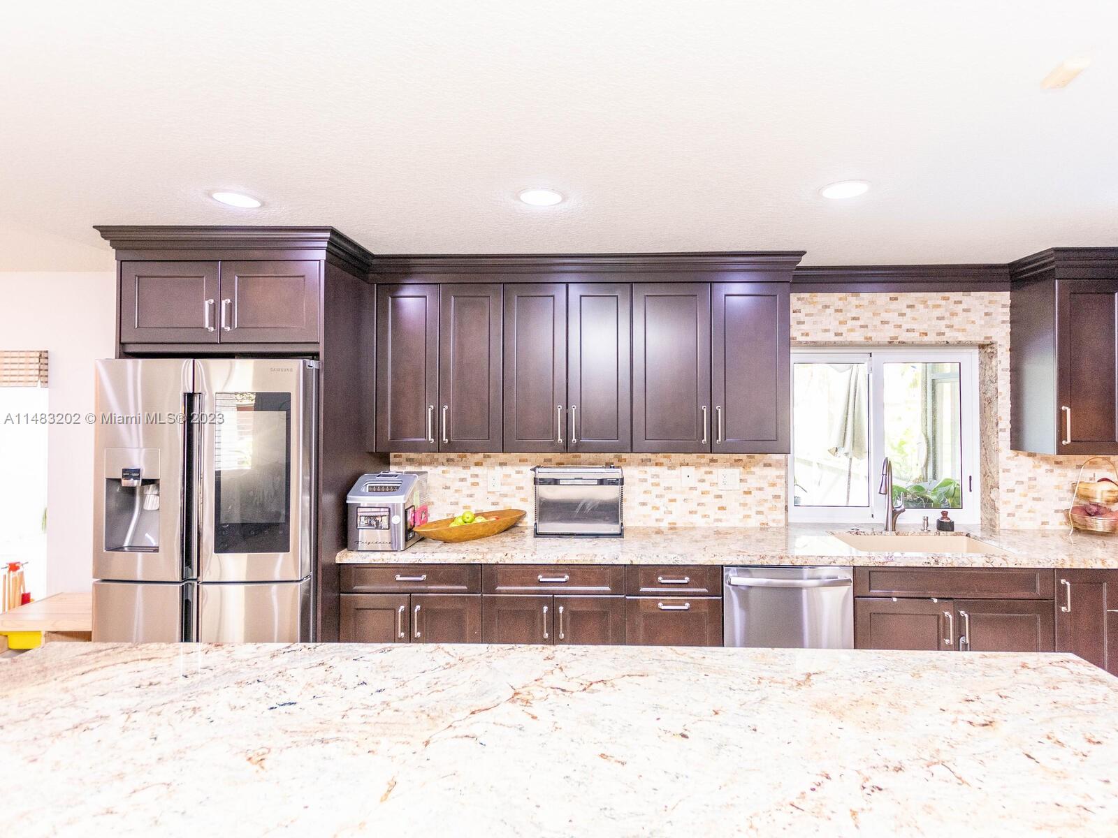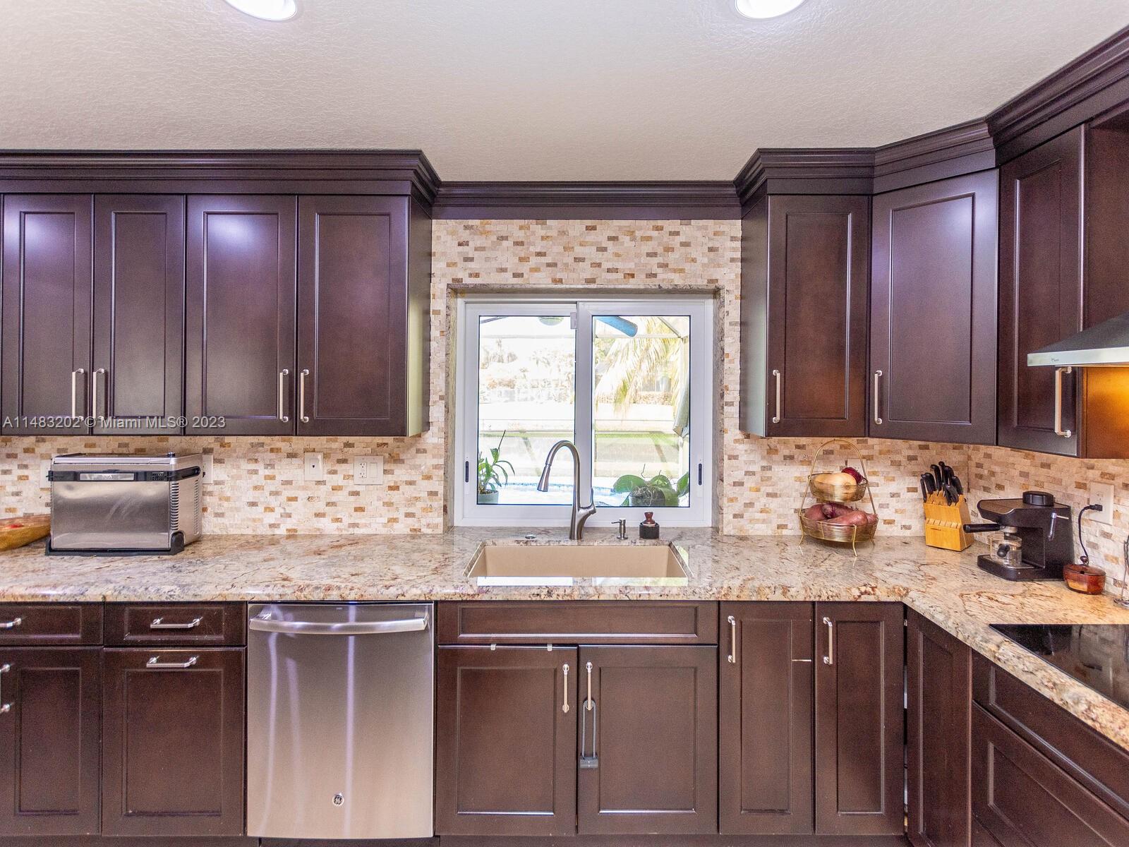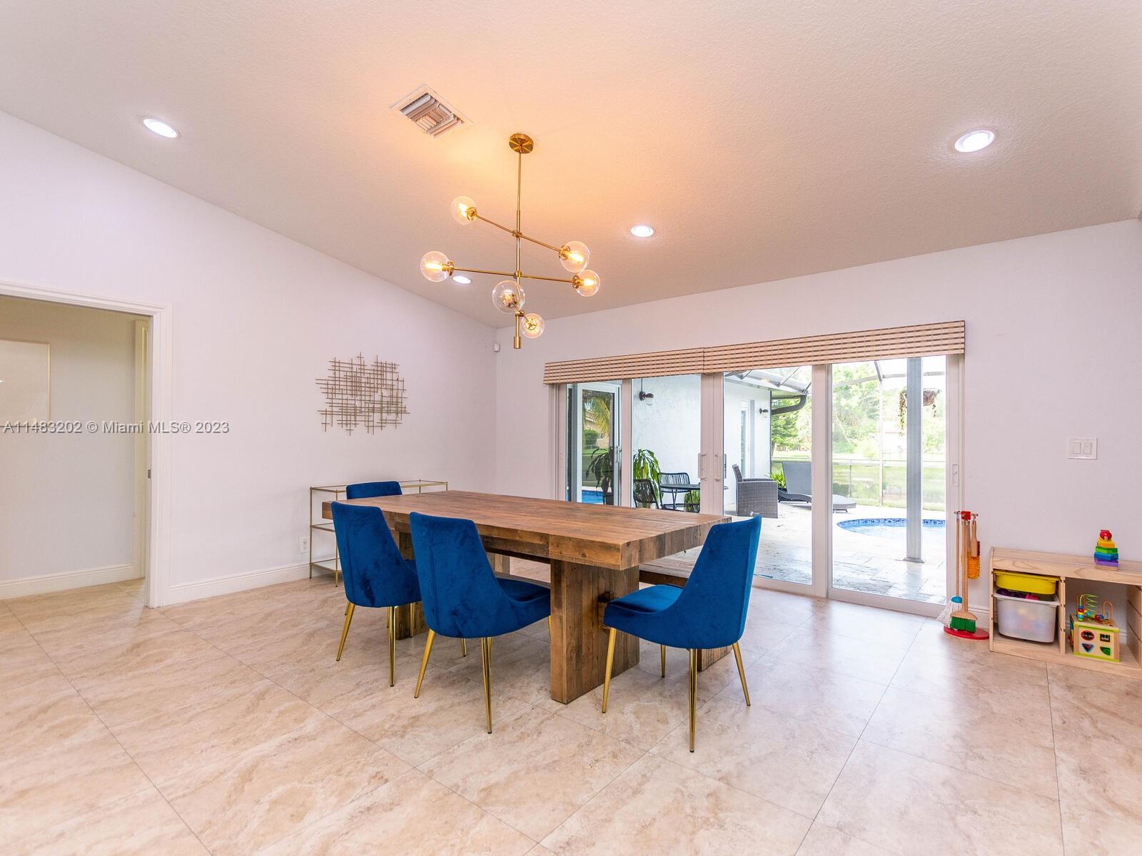 Stunningly updated 4/3 home on the water. Enjoy breathtaking sunsets from the living room, kitchen and back patio or under the mango trees! Located on a quiet street in highly desired community in Coral Springs, this home has all of the improvements you could ever want. Newer roof, & impact doors & windows for maximum safety, security and insurance discounts. Upgrades galore from the extended paver driveway to the front door, also floor to ceiling upgrades with high end laminate in the bedrooms & tile throughout, plantation shutters, fresh paint, & textured ceilings with updated lighting. The huge custom kitchen includes a work area, high end appliances, & storage all around the island. The sparkling blue pool is surrounded by a travertine deck, screened in patio & baby fence installed.