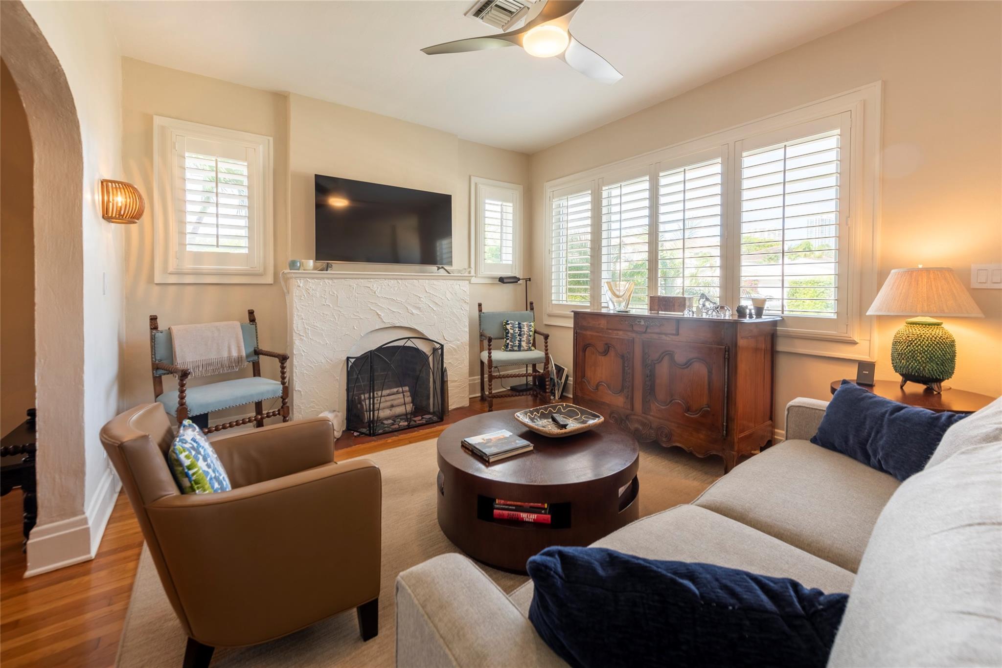 Welcome home to Rio Vista, Ft Lauderdale's most sought-after downtown neighborhood. Whether a first-time homebuyer or downsizing, this home, believed to be an original Francis Abreu, this updated 1920's bungalow is for you. Dade county & oak wood floors add to the charm. The side yard is set up for entertaining w/ built in gas grill & bar fridge. The home features impact windows, natural gas, and a primary bedroom w/ walk in closet. Both bathrooms are updated, one with jetted tub. The large dining room opens to the lovely side yard through French doors. The living room is complemented by a decorative fireplace. This is the best priced home in Rio Vista, located on the non-cut through street of SE 10th Street, and just a stroll to Virginia Young Park. Live the Rio Vista lifestyle.