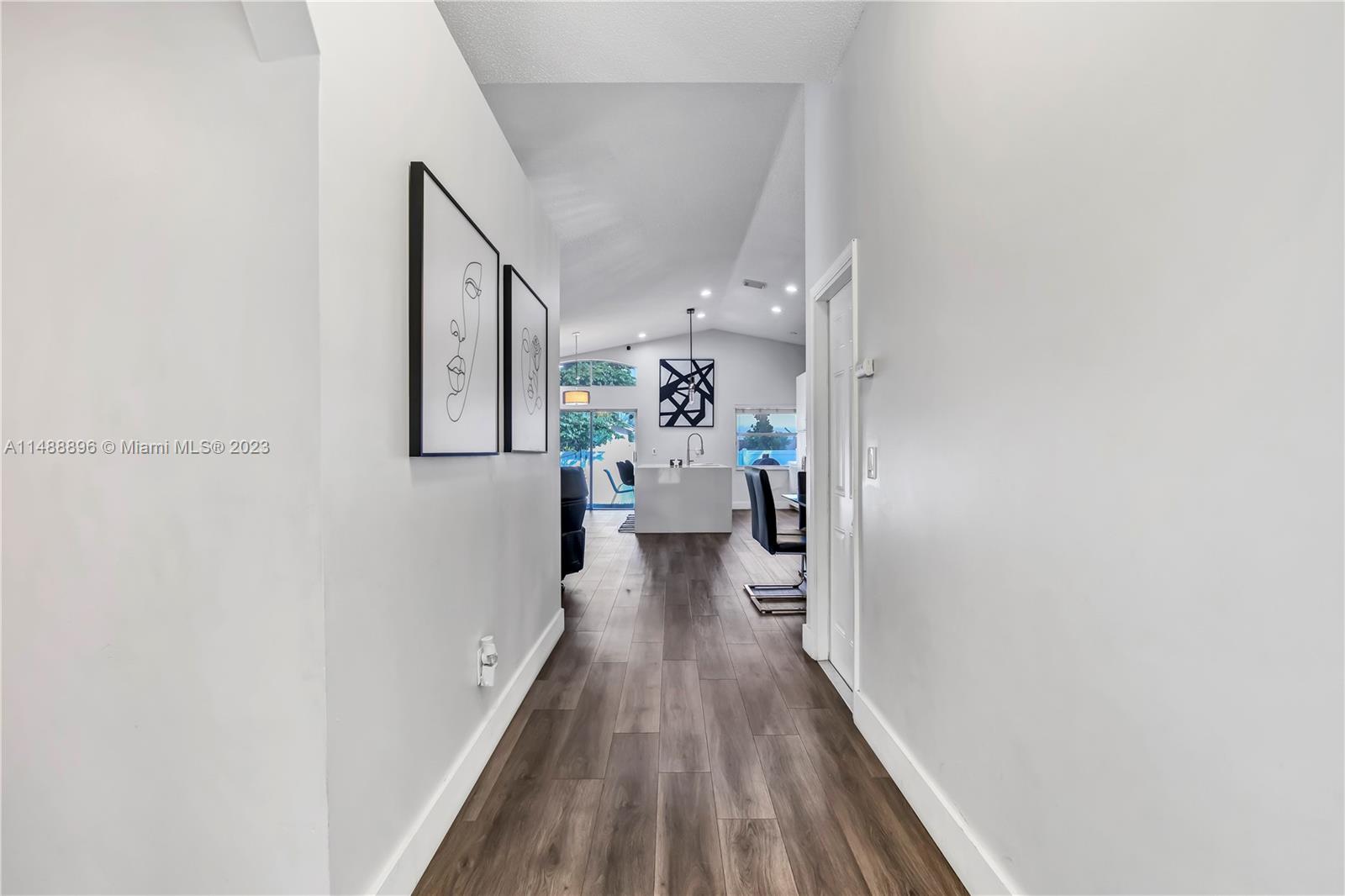 Modern Turnkey 3BD, 2BTH, 2 CAR GARAGE.NEW KITCHEN, NEW CABINETS, NEW APPLIANCES in sought after gated community of Estancia, whether you are looking for a tranquil retreat or a vibrant community, this home has everything you need to live your best life. Modern kitchen, new cabinetry, custom pantry, w/ large center island for cooking, with quartz countertops, and new laminated floors throughout all the living areas. Eat in kitchen with formal dining area. NEW ROOF! Renovated bathrooms, freshly painted with neutral colors. Low HOA with community pool, new gym, basketball court and playground. Centrally located in West Pembroke Pines Close to US-27 & I-75. This area offers A plus schools.