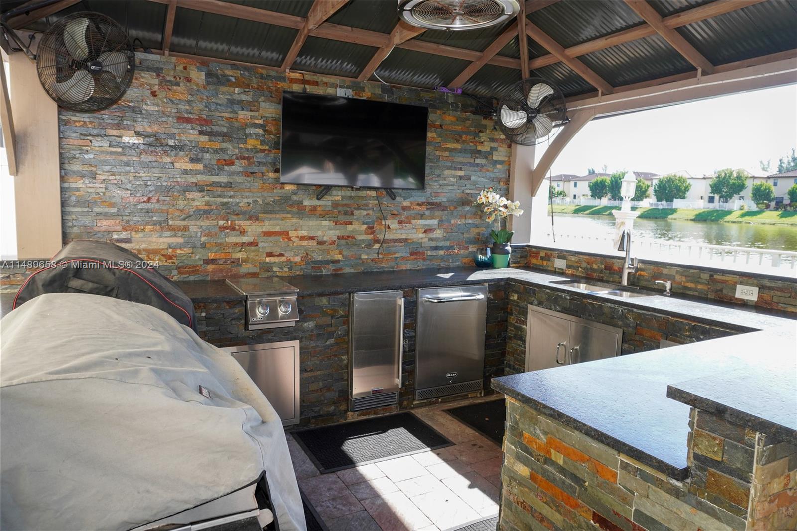 Discover a stunning two-story heavenly home in Aragon by Lennar. This 3 beds/2 ½ baths home, opposite to the clubhouse, boasts a prime waterfront location with lake views. The master suite is elegantly designed, offering a serene connection to the water. The residence features marble countertops, S/S appliances, and porcelain tiles on the first floor, with upgraded wood floors on the second. Enjoy privacy in the fenced yard with a paved deck, two gazebos, and a full bar. No rear neighbors provide a perfect view of the lake's fountain. Aragon offers security, clubhouse, pool, playground, park, and an 8-acre lake, conveniently located for easy access to highways and amenities. Make this beautiful home your own today!! Easy to show - Showing time or call/text listing agent /24 hours app