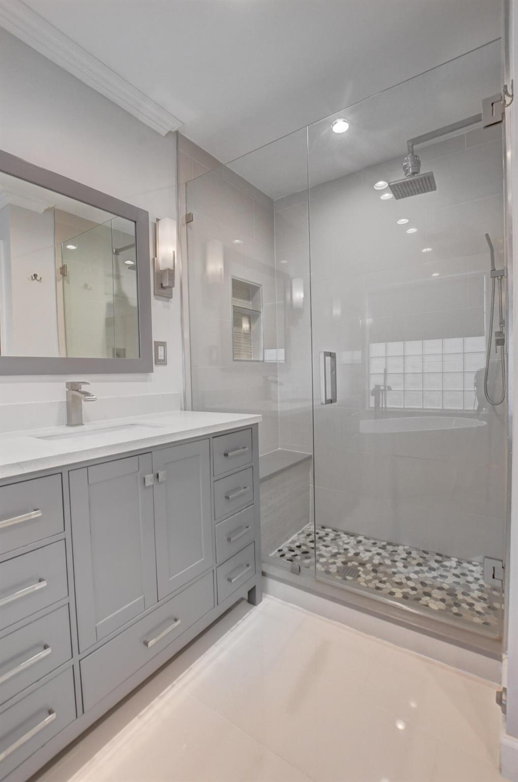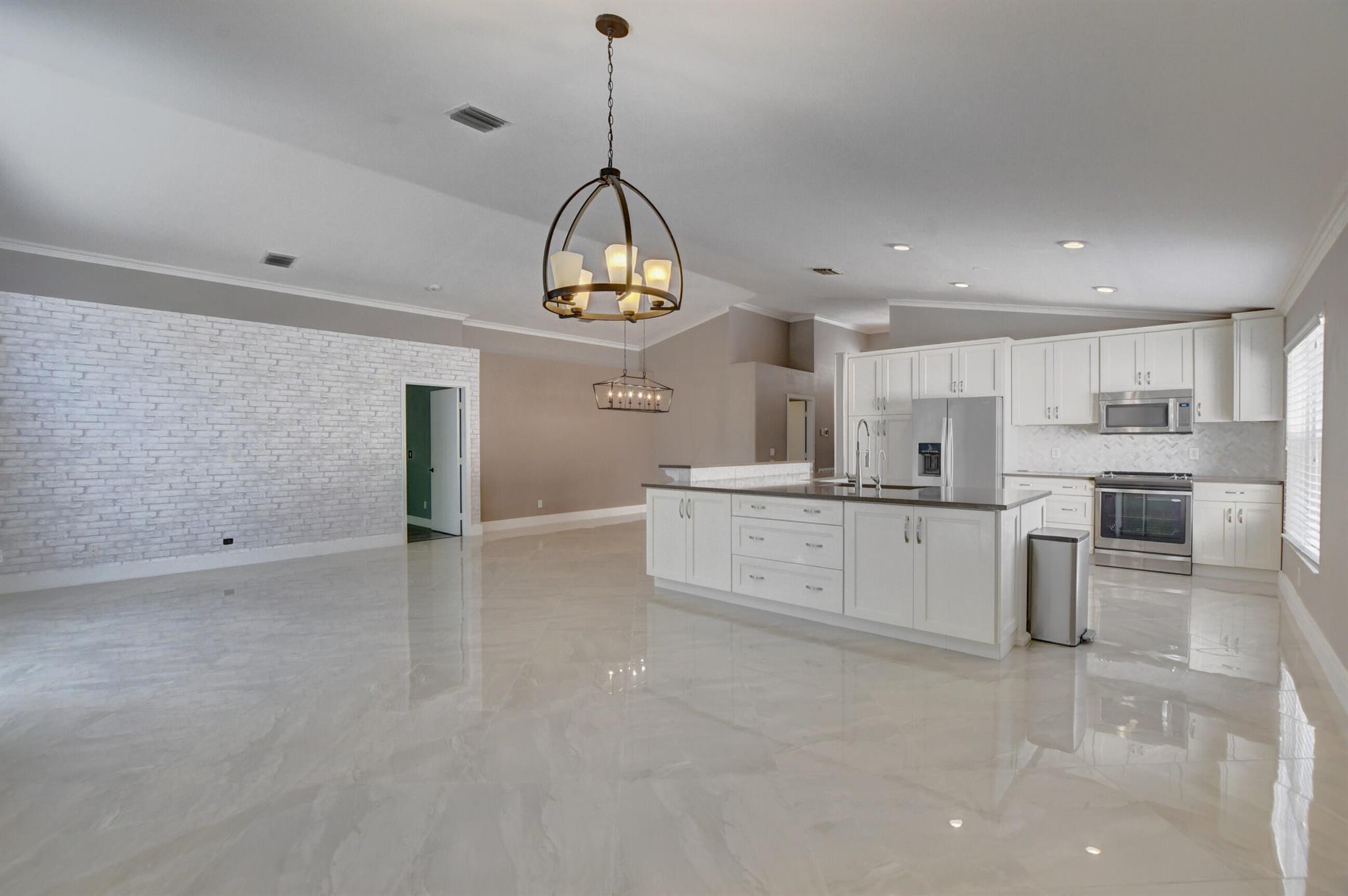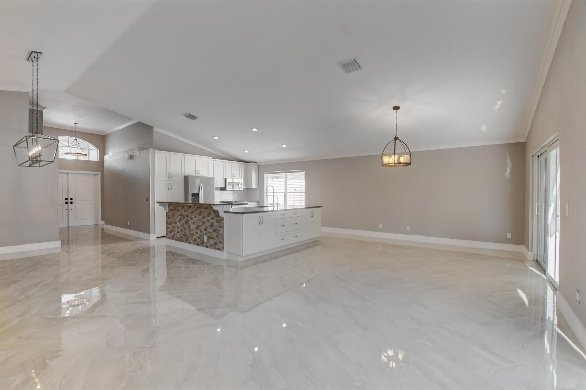 Your Symphony Bay dream home awaits! This home has been updated throughout including exterior paint (2023) and a newer roof (June 2021). Inside, you'll find a split-bedroom floor plan with a spacious great room, perfect for entertaining. The modern kitchen features white cabinets, quartz counters, stainless appliances, and add'l storage under the island. The large master suite is a true haven, offering a walk-in closet with built-ins and two add'l closets. The updated master bath has a freestanding soaking tub and dual sinks. Enjoy the lush tropical landscaping and beautiful South Florida weather from your screened patio. The sliding glass doors and arched window are both impact glass providing safety and security. Smart home features include a Nest thermostat and MyQ garage door opener.