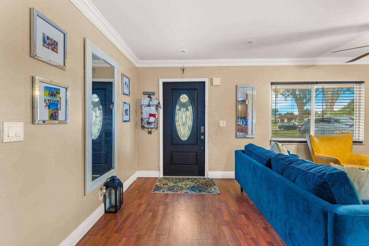 Welcome to Boca Raton!! This beautiful and spacious 5 bed 2 bath single family home with huge travertine paved backyard with a fully screened patio and huge 30 x15 private heated pool with outside shower, on one of the largest pie shaped lots in the community which provides lots of backyard space. Property features double room main bedroom, new roof 2016, wood laminate flooring over off-white ceramic tile underneath, new hurricane impact windows and doors 2022, formal living and huge family room, newer tiki hut, outside bar for entertainment, updated kitchen, updated main bathroom and guest bathroom. Newer water heater and a/c unit, huge driveway. Newer sprinkler system with pump. Close to A graded schools, houses of worship, shops, and parks.