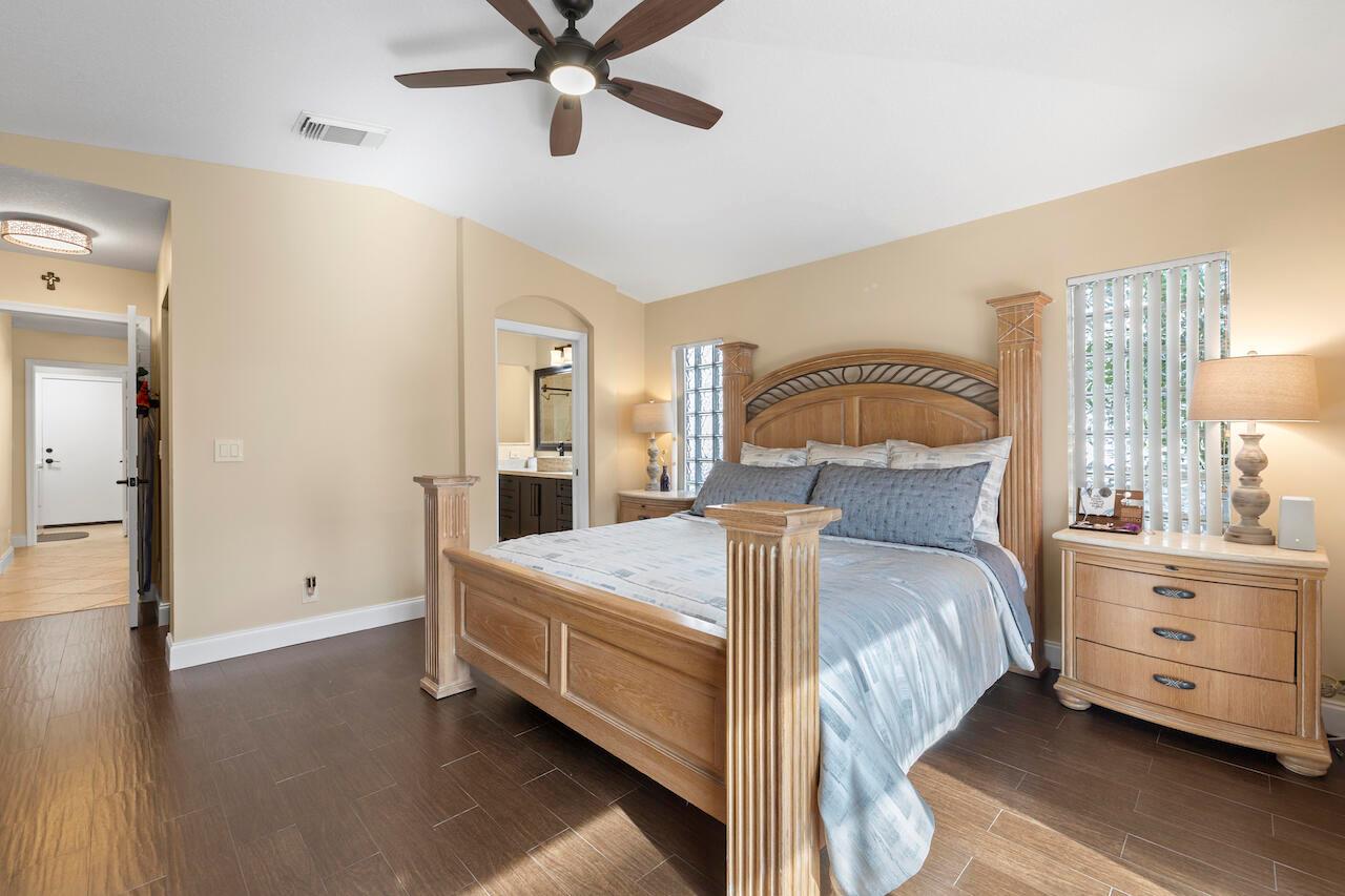 Welcome to an exclusive opportunity to own a hidden gem in the Wyndham Lakes North community! This impeccably maintained 3-bedroom, 2-bathroom home has never before graced the market, offering a rare chance to call it your own. As you step through the front door, you are welcomed into a living room with vaulted ceilings, creating an airy and inviting atmosphere. The television wall is adorned with reclaimed wood. The kitchen is a culinary masterpiece featuring brand new stainless steel LG appliances, an oversized island, generously sized custom cabinets, and Moritz Quartz countertops. Primary bedroom is a true retreat, featuring sliding glass doors that lead to the patio, two closets, and vaulted ceilings. Both bathrooms are adorned with premium finishes, including an unfinished