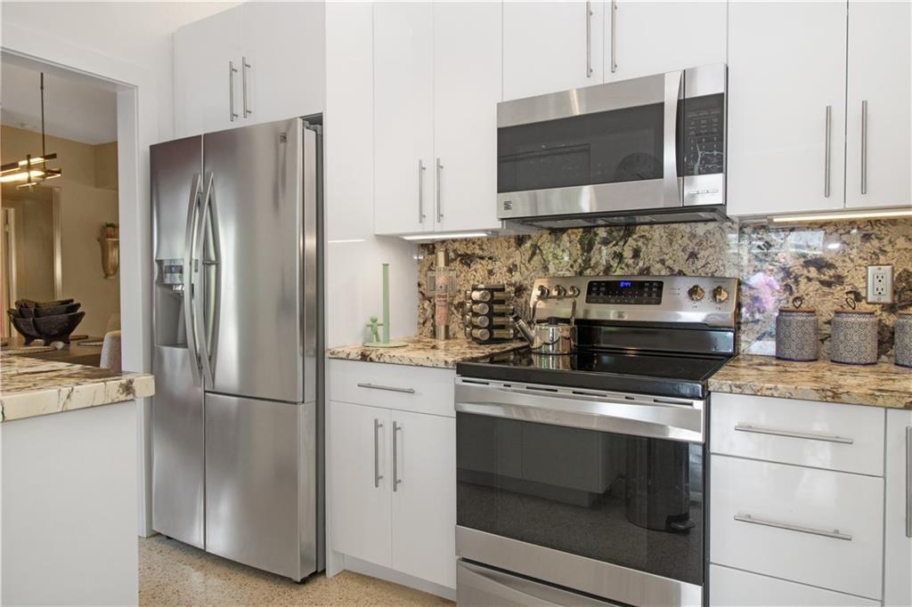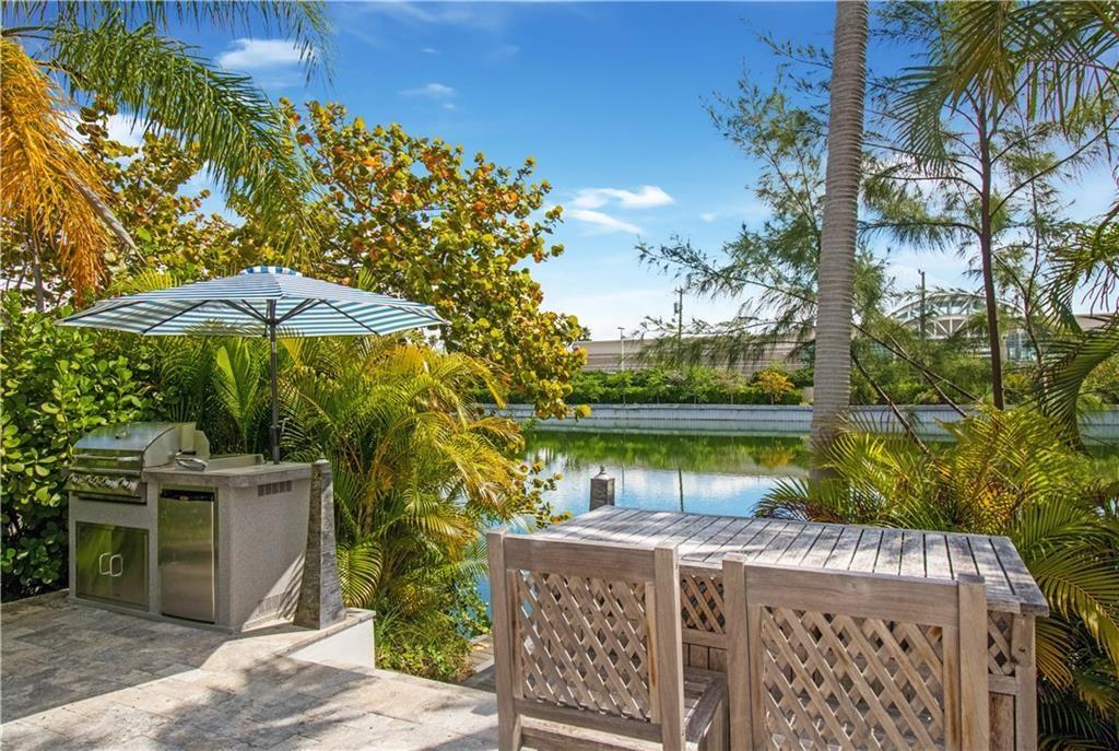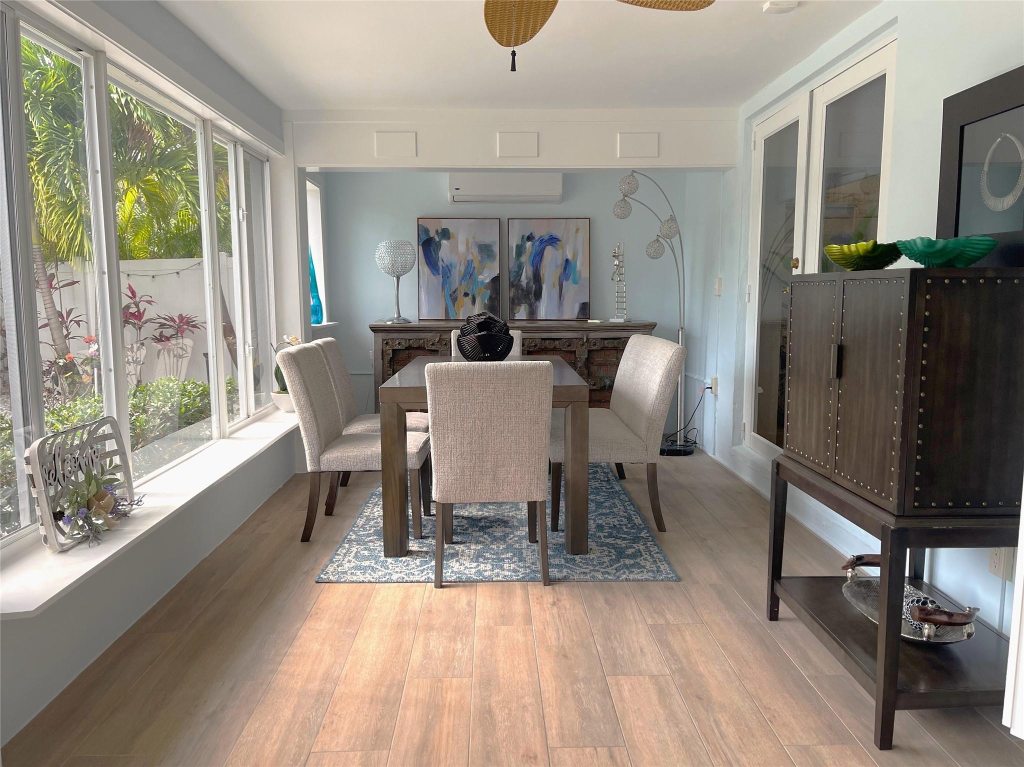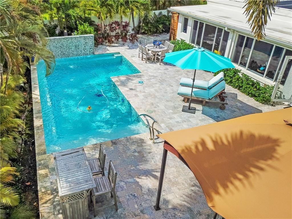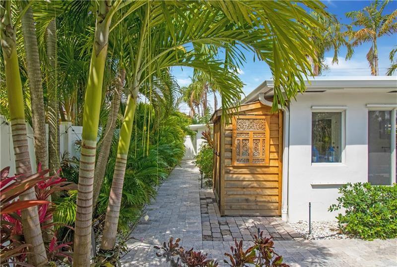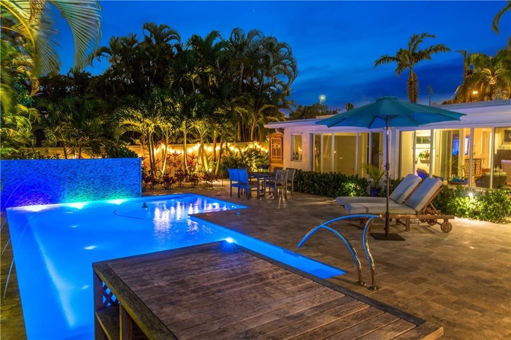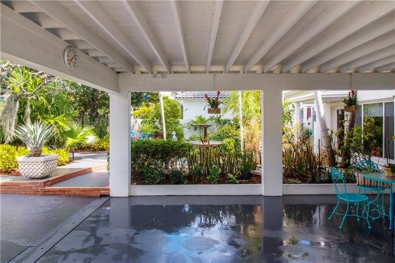 Once-in-a-while opportunity to own a large private lakefront compound in desirable Poinsettia Heights designed for entertainment, located just 2,5 miles from the beach. Upon entry, you'll be greeted by a magnificent courtyard garden. The lush backyard allows ultimate privacy, and the constant lake breeze will make you feel like you are on vacation every day. There are multiple entertaining outdoor & indoor areas. Each room welcomes light in. Terrazzo floors, Split bedroom plan. Renovated kitchen. Convenient attached Carport. Newer roof and newer A/C. Heated swimming pool. Gas Generator, on-demand hot water heater. Secured fenced and Remote-controlled driveway gate. Cul-de-Sac. No HOA. Lake with no ocean access. Must See.