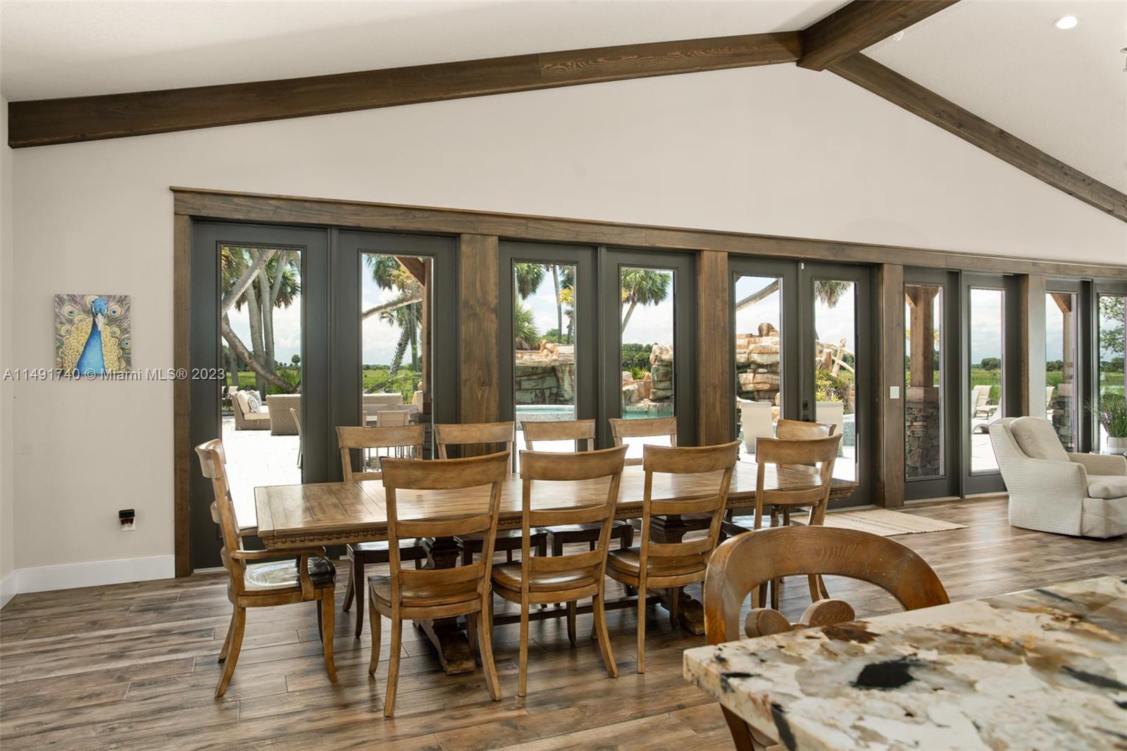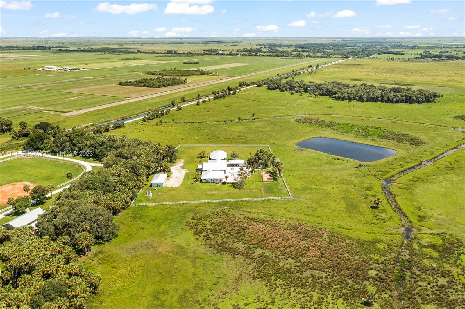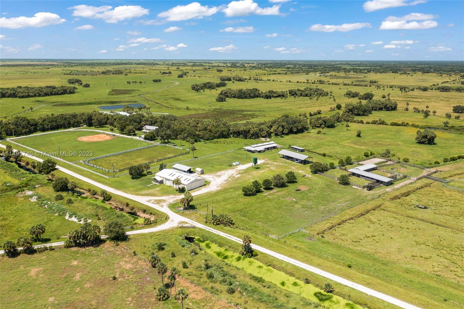 Discover Victoria's Ranch, a premier 2,368-acre cattle ranch in "prime cow country," featuring 75% bahia grass and 14 pastures. This thriving ranch doubles as a private retreat or land banking opportunity. Central to the ranch is a stunning 6,361 sq ft custom-built house with 7 bedrooms, 8.5 baths, an open-plan great room, gourmet kitchen, dining area, and family room with a full bar. The one story design combines rustic elegance with a tropical outdoor area with a resort-style pool, summer kitchen, and private baseball field. A secondary residence for a ranch manager, a horse barn, a storage/equipment barn/office, a mobile home, cattle pens, and pole barn. Situated 21 miles north of Okeechobee, this ranch is a blend of luxury, recreation, and potential for future development.