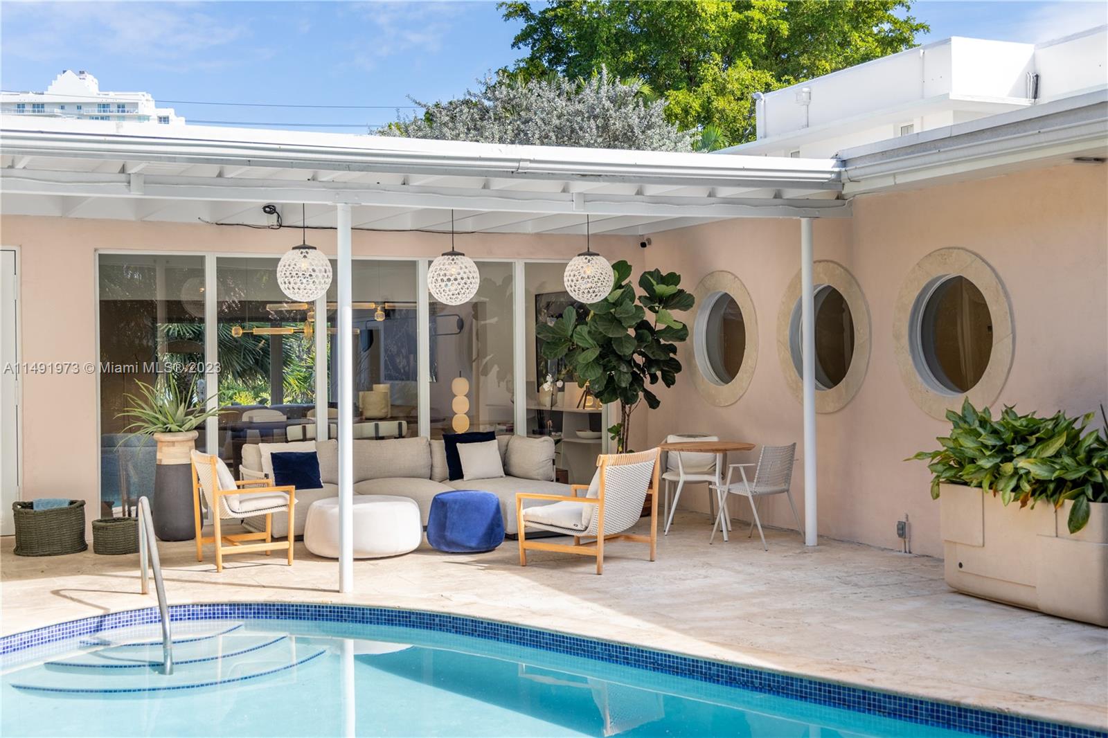 Charming 4 Bedroom and 3 Bathroom deco bungalow-style home with lots of natural light and a fantastic cozy feel. Features original arquitectural details and marble floors throughout. Enjoy the view of the beautifully landscaped front yard and the large terrace with a pool. Impact windows throughout the house and refurbished roof. Next-door corner house, 6000 Pine Tree Dr, is connected through the yard and also for sale. Both houses together would offer a unique, rare and hard to find large lot with over 16,000 square feet. Call 24 hours in advance.