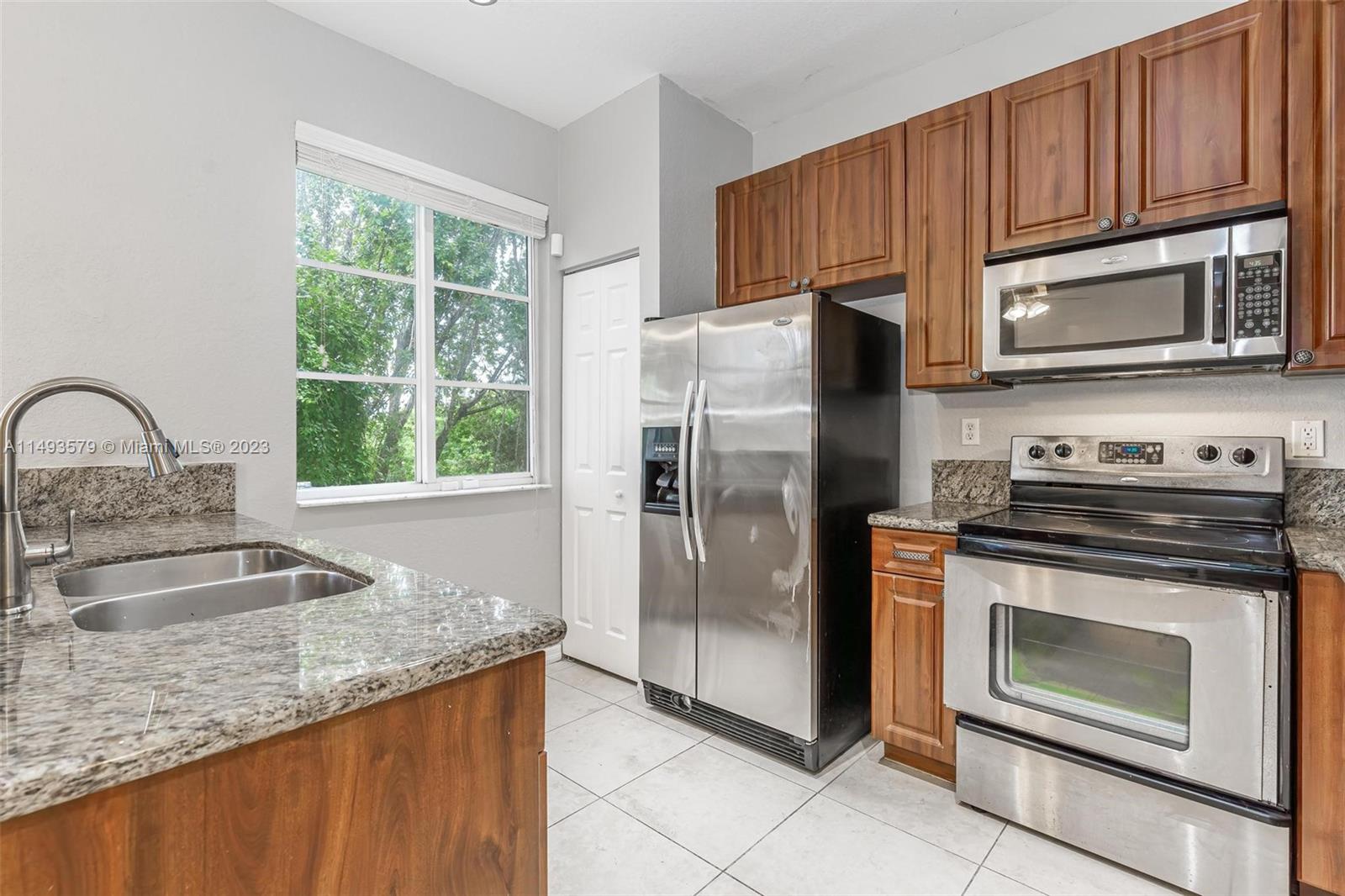 This beautiful townhouse is move-in ready and boasts 3 bedrooms / 2.5 bathrooms, and a spacious open living area with plenty of natural light. The kitchen is tastefully upgraded with elegant granite countertops, high-quality stainless steel appliances, and wood cabinets. The main living areas feature tile flooring, the stairs & bedrooms with lamintate wood flooring. The washer & dryer are conviniently located on the same level as the bedrooms upstairs. The master bedroom has a walk-in closet and a luxurious master bathroom with a jetted tub, a separate stand-up shower, and double sink vanity. This gated community offers ameneties such as a large community pool, children's playground and more. Amazing location easy access to major highways, schools, shopping, dining and much more!