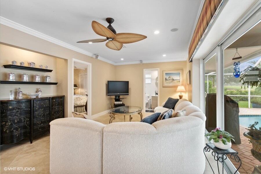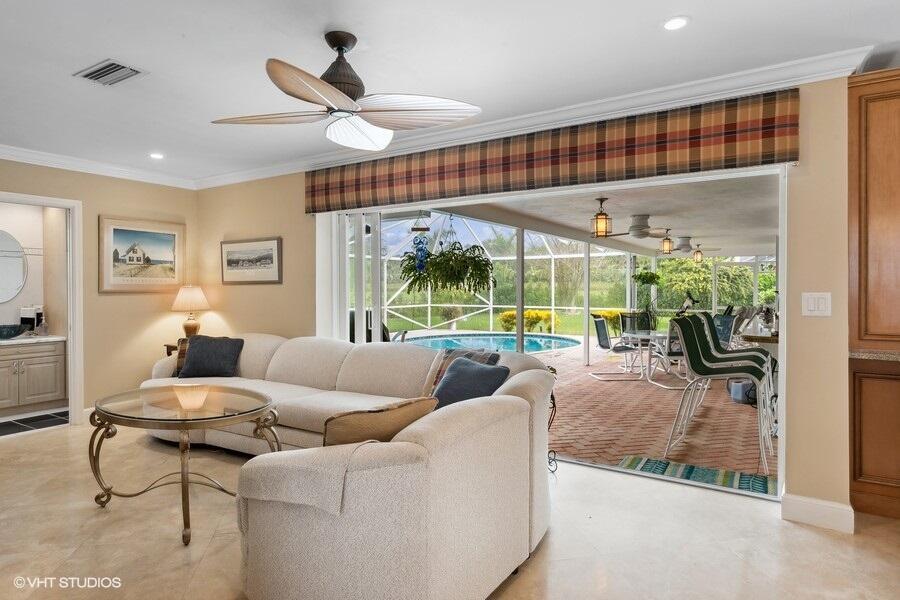 MAJOR PRICE REDUCTION! SELLER'S NEW HOME IS READY, PRICED FOR QUICK SALE! This home has been meticulously maintained and loved by the same owners for 30 years and offers a seamless flow between rooms. Living space features include a spacious Livingroom with abundant natural lighting, dining room, well equipped kitchen with stainless appliances, granite counters, ample cabinets and convenient serving window to patio. Family room with triple pocket sliders lets the outside in. Full guest cabana bathroom with glass enclosed shower. Unwind in the tranquil primary suite with pool and yard views from the sliders. Enjoy the luxurious primary bath walk-in shower with jets, steam and multiple shower heads including a rain shower.