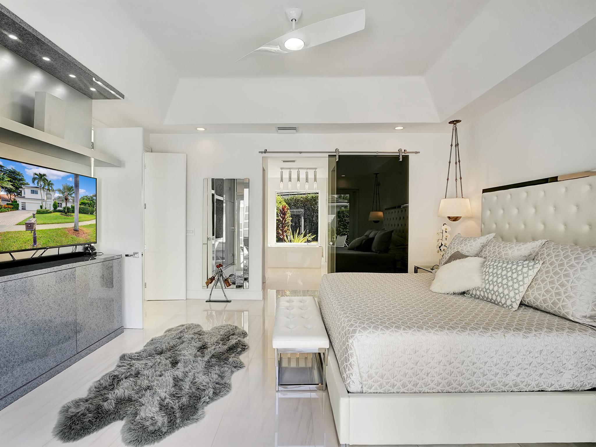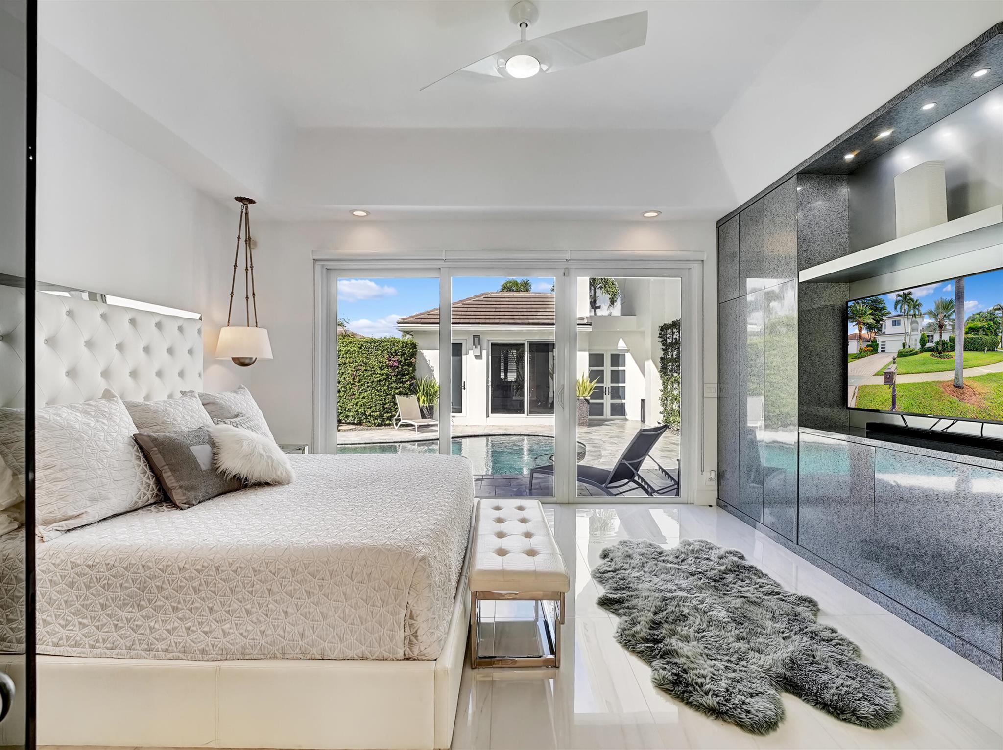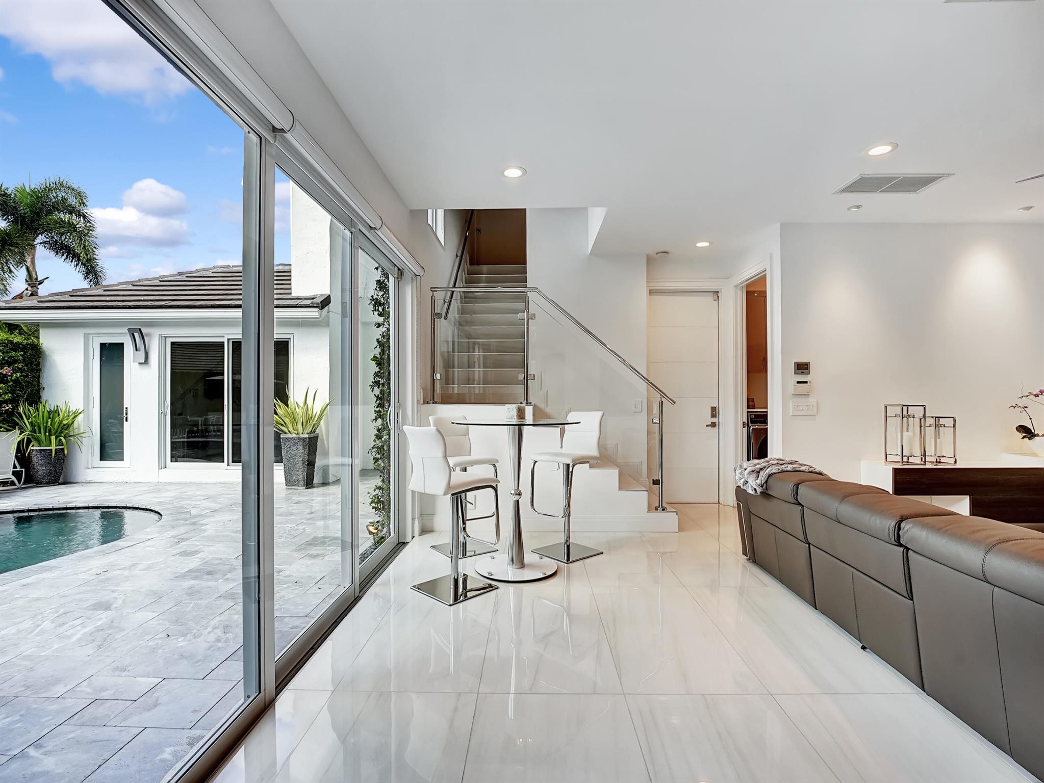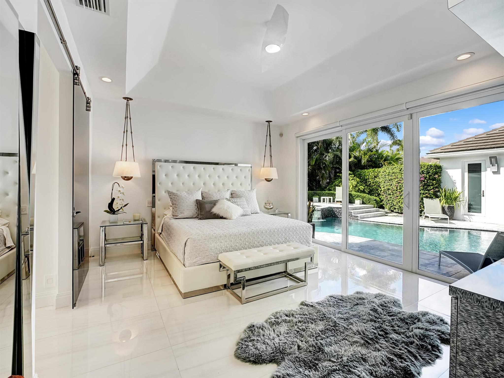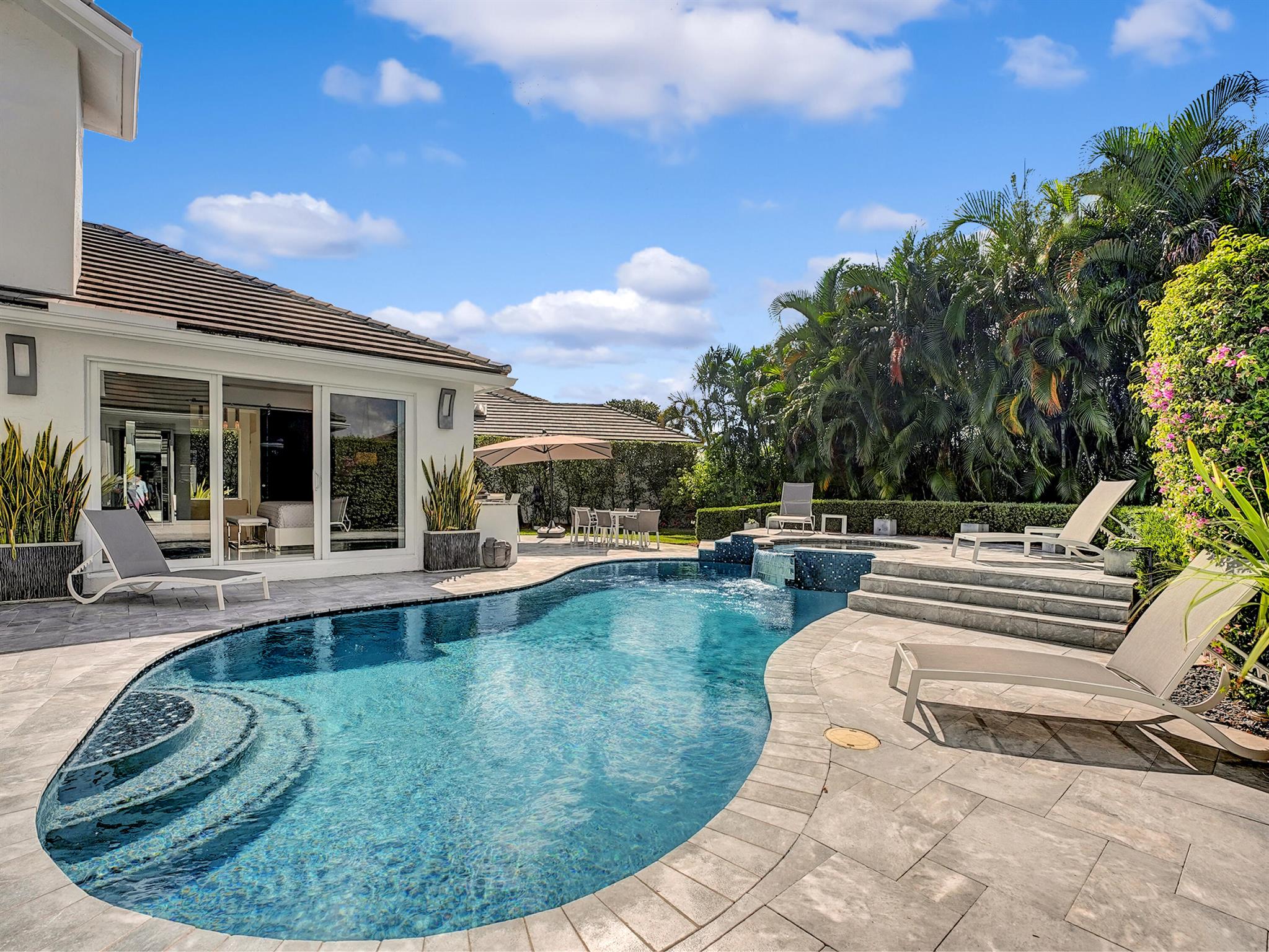 Stunning contemporary courtyard two story home on oversized private lot with a guest house, that includes bedroom and bath. Free form floating pool with waterfall and spa. The patio has marble pavers and a summer kitchen with DSS appliances. Total renovation, primary main floor bedroom en-suite with walk-in closets, second floor bedroom en-suite with walk-in closet, kitchen with exquisite cabinetry and countertops, all remodeled bathrooms, 4 x 6 Italian porcelain flooring on main floor, plantation shutters/remote blinds, impact hurricane windows, 2019 roof with 10 yr warranty. Amenities include a championship golf course, tennis and pickleball courts, a state-of the art fitness center, kids club, restaurants, clubhouse and newly renovated spa. Membership in Woodfield is required