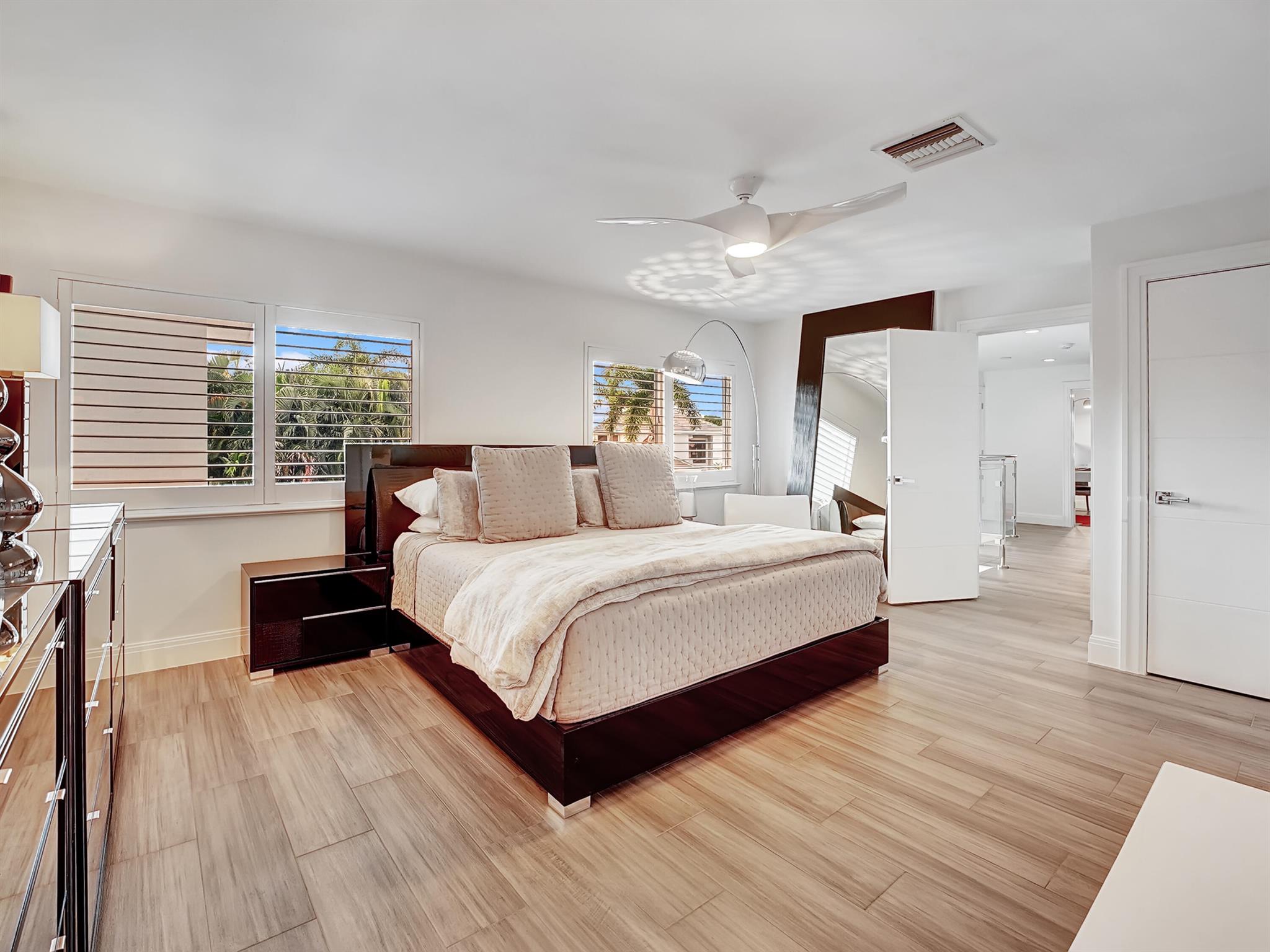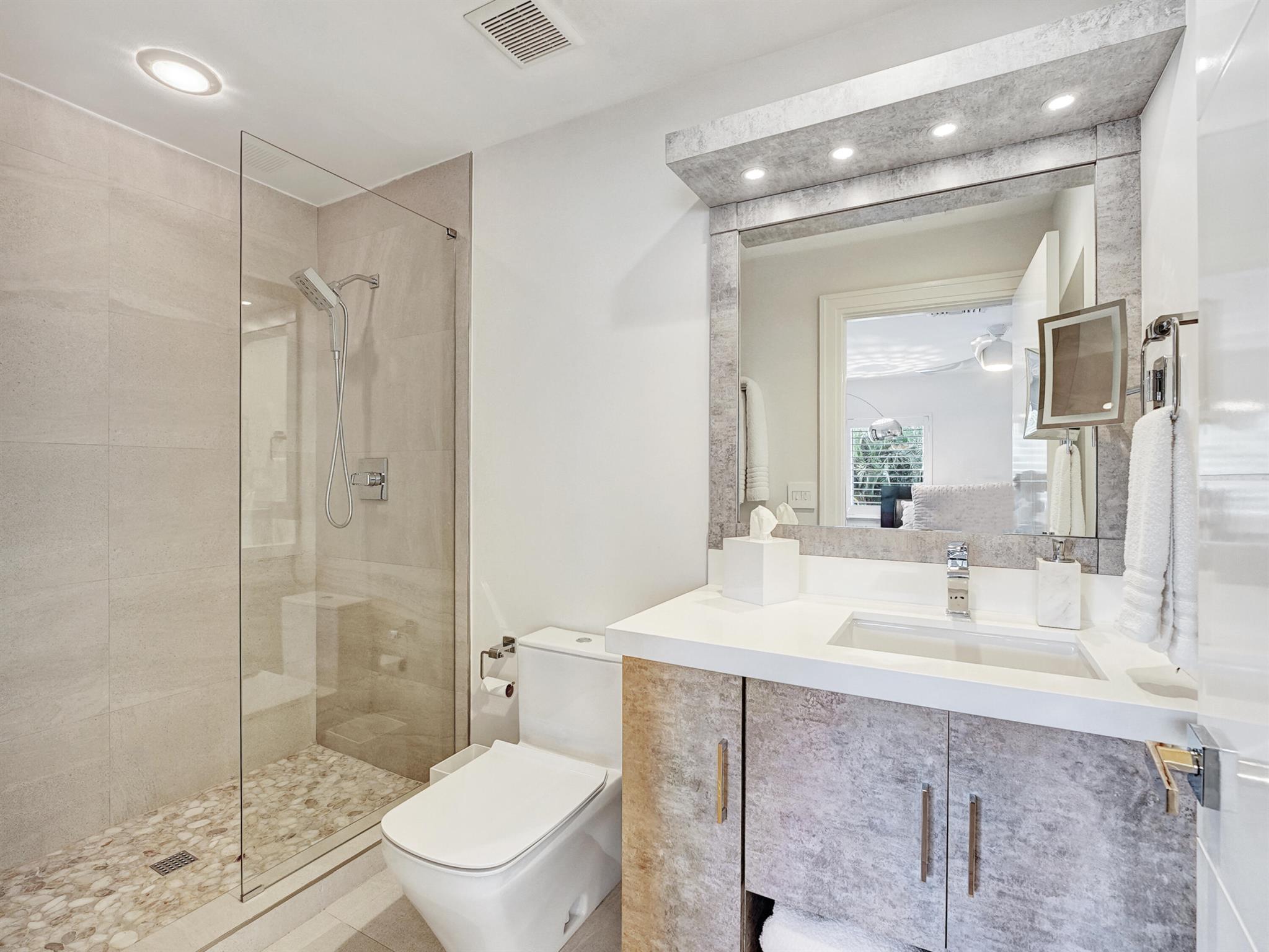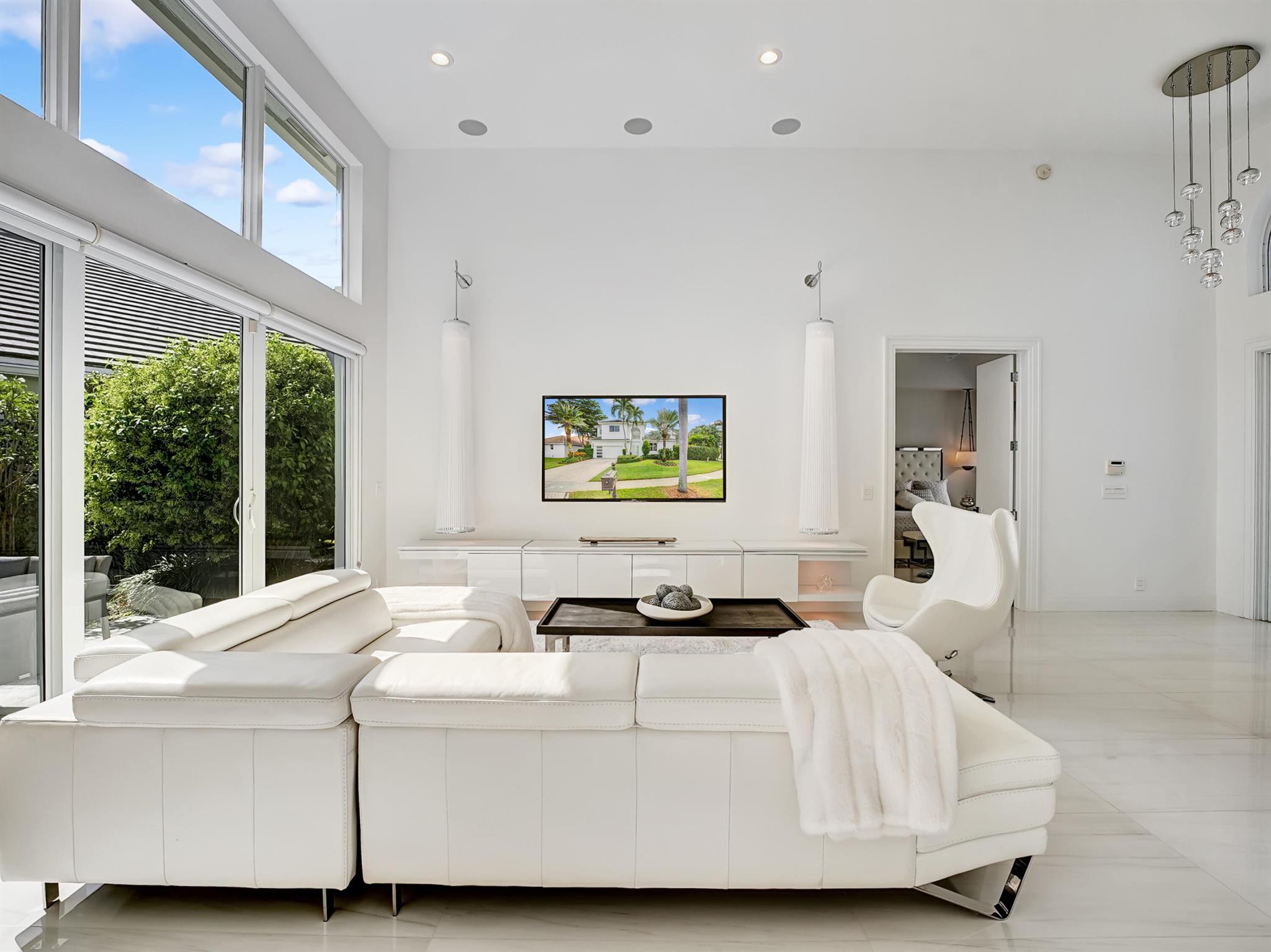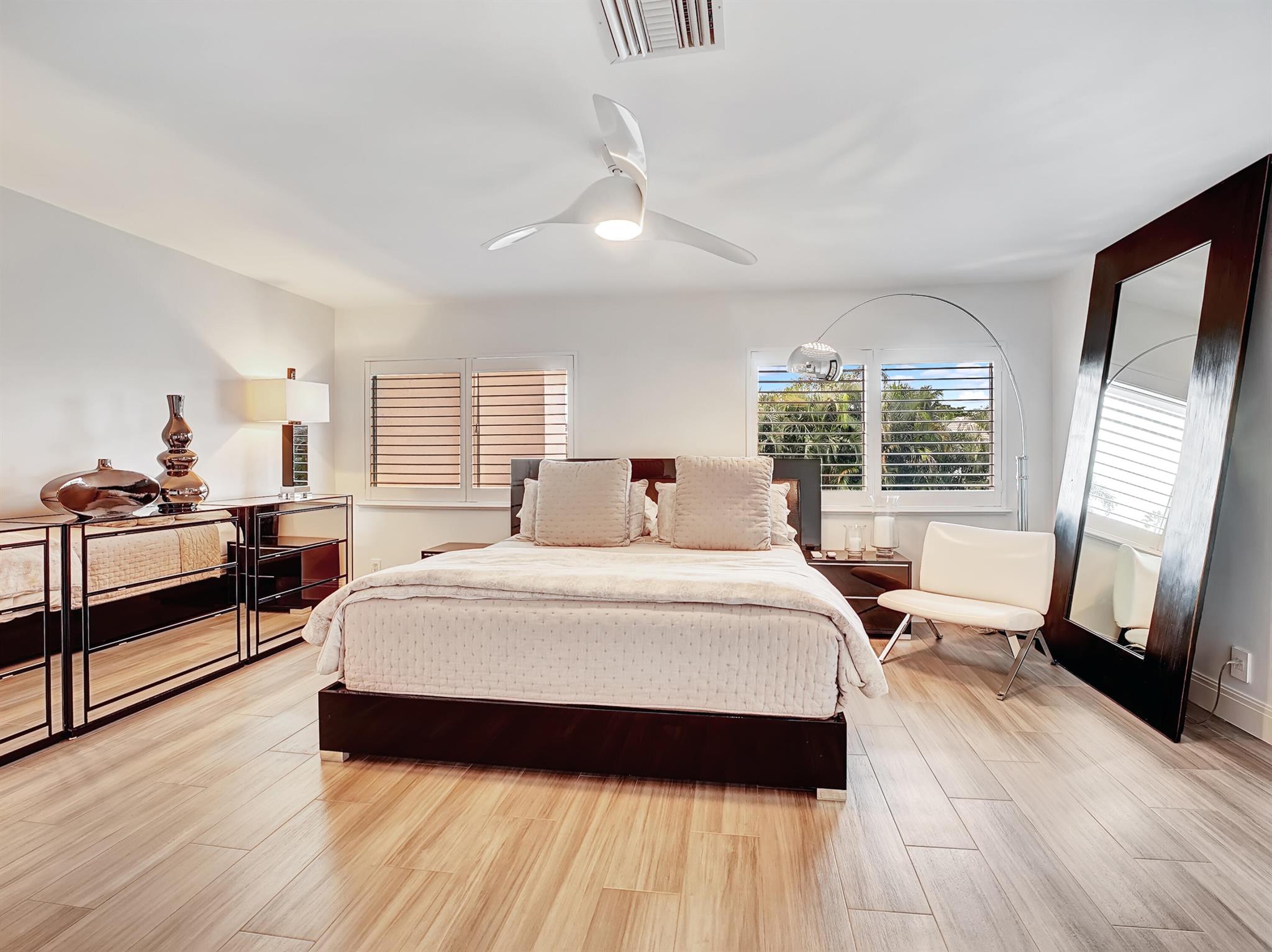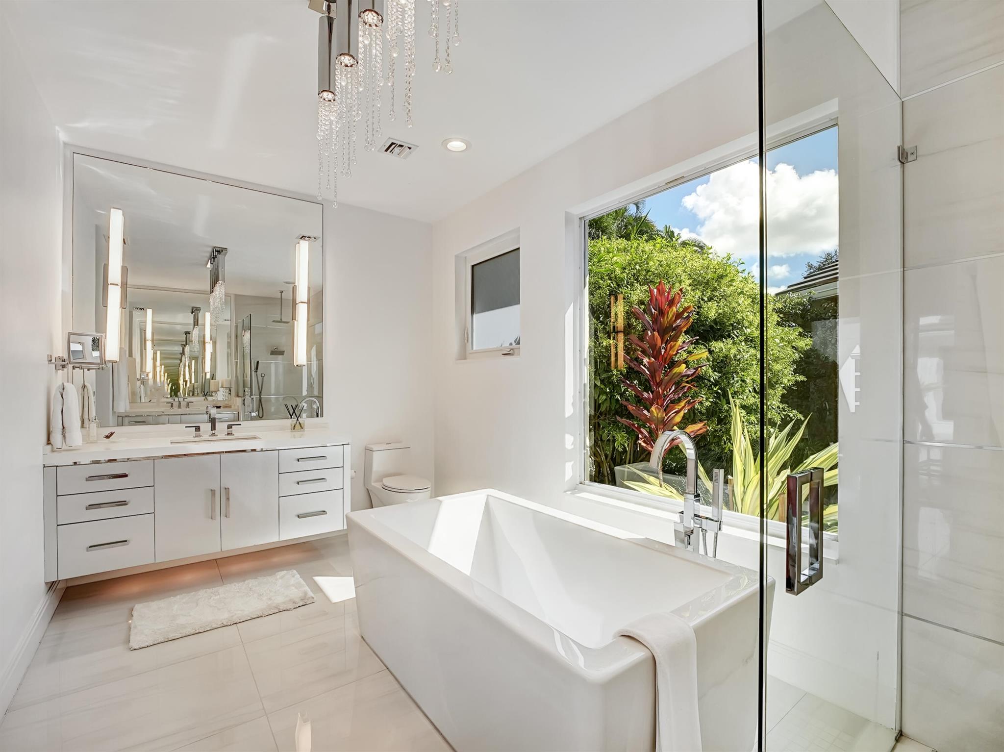 Stunning contemporary courtyard two story home on oversized private lot with a guest house, that includes bedroom and bath. Free form floating pool with waterfall and spa. The patio has marble pavers and a summer kitchen with DSS appliances. Total renovation, primary main floor bedroom en-suite with walk-in closets, second floor bedroom en-suite with walk-in closet, kitchen with exquisite cabinetry and countertops, all remodeled bathrooms, 4 x 6 Italian porcelain flooring on main floor, plantation shutters/remote blinds, impact hurricane windows, 2019 roof with 10 yr warranty. Amenities include a championship golf course, tennis and pickleball courts, a state-of the art fitness center, kids club, restaurants, clubhouse and newly renovated spa. Membership in Woodfield is required
