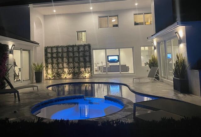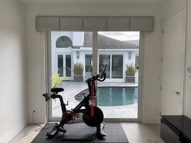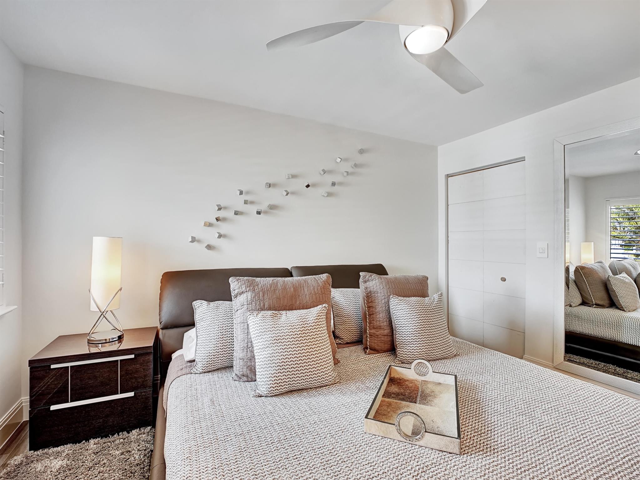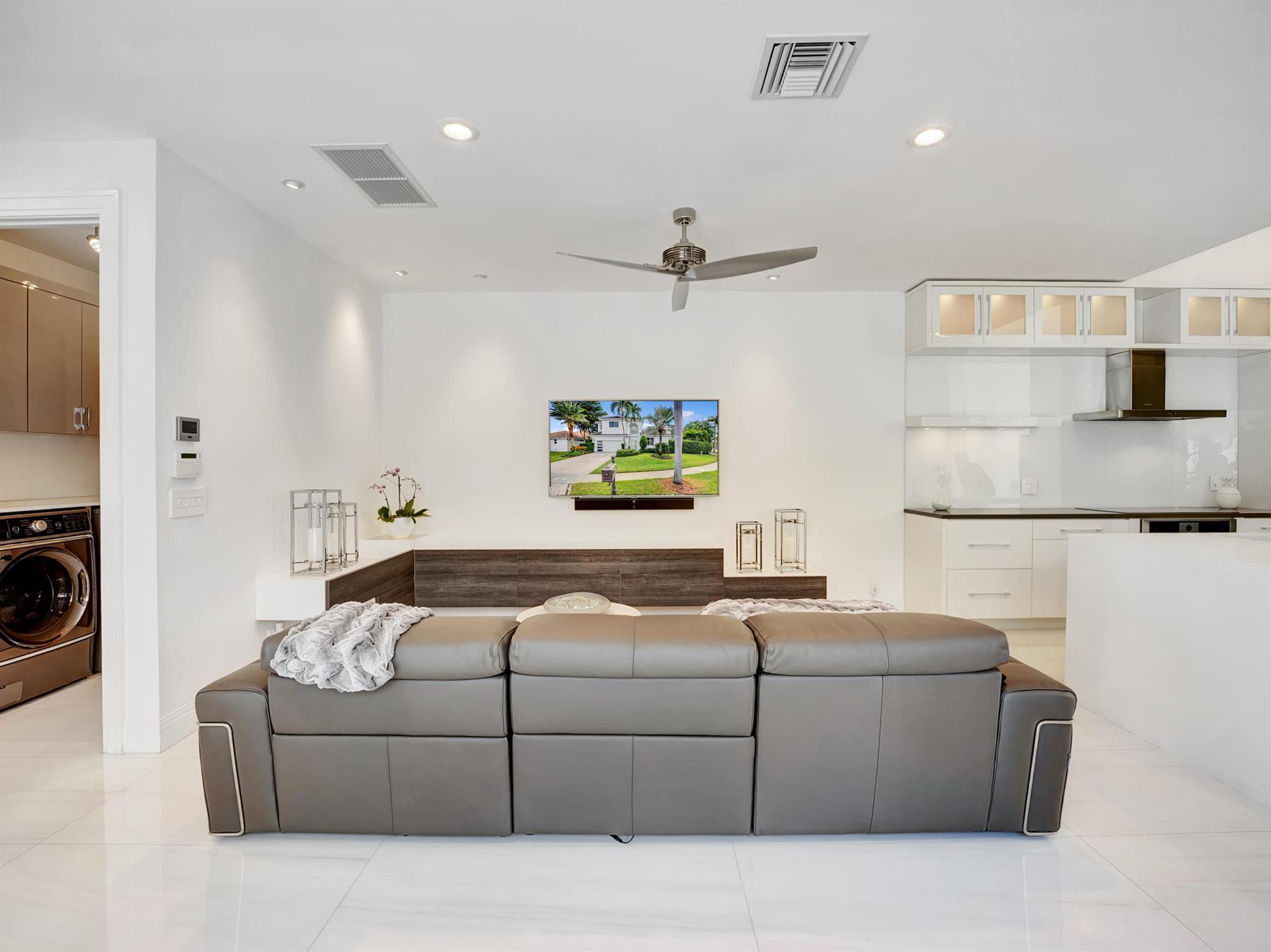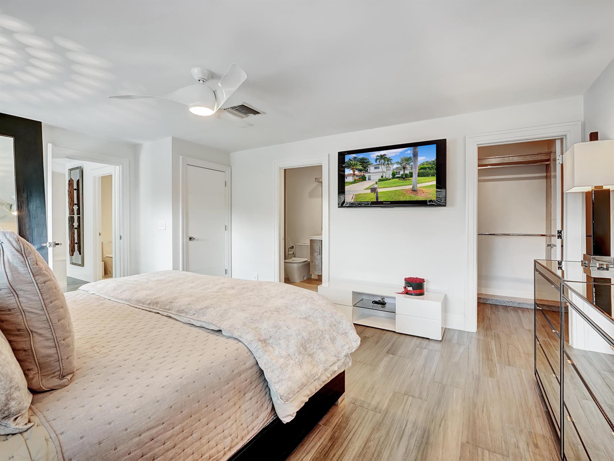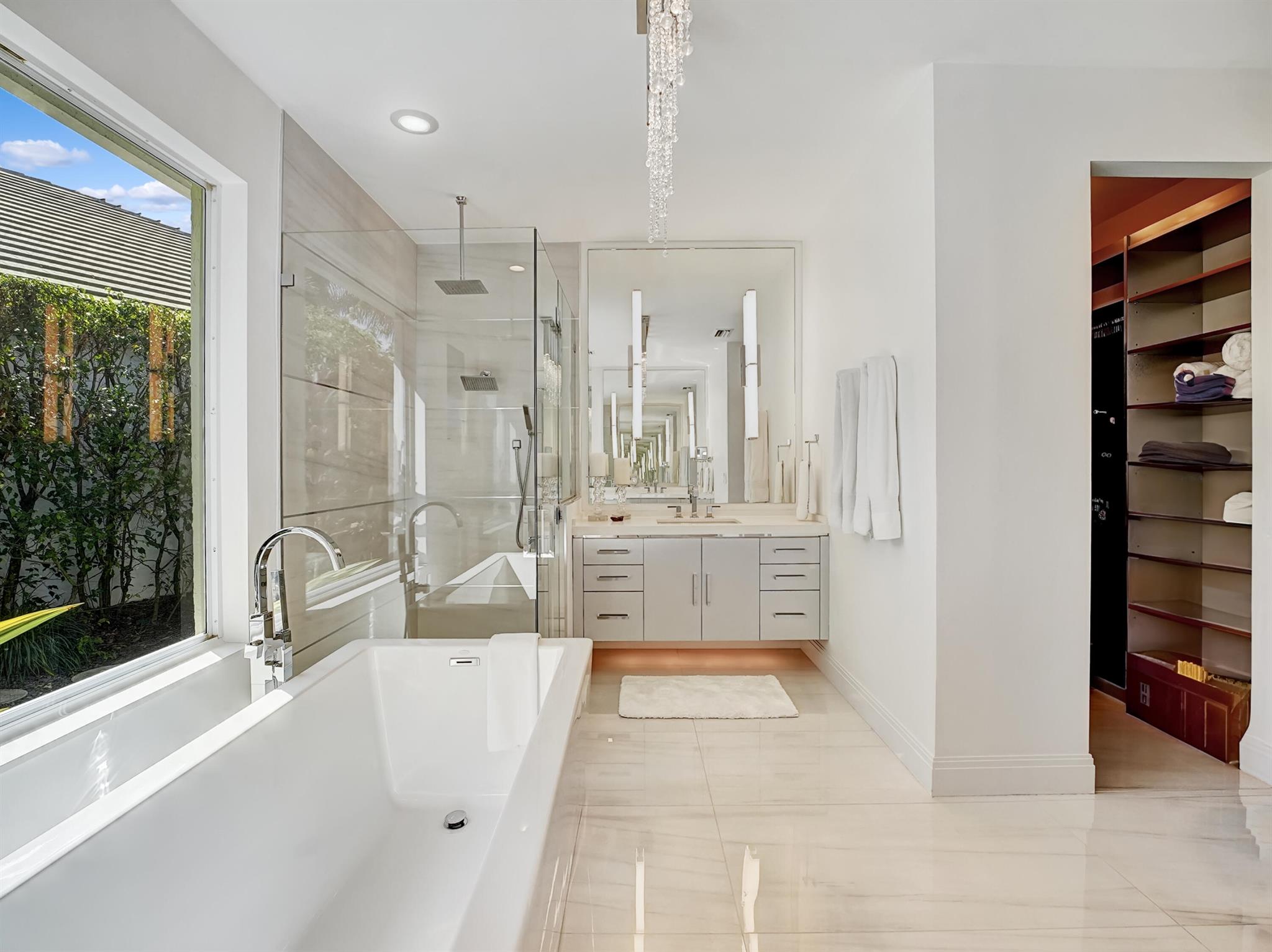 Stunning contemporary courtyard two story home on oversized private lot with a guest house, that includes bedroom and bath. Free form floating pool with waterfall and spa. The patio has marble pavers and a summer kitchen with DSS appliances. Total renovation, primary main floor bedroom en-suite with walk-in closets, second floor bedroom en-suite with walk-in closet, kitchen with exquisite cabinetry and countertops, all remodeled bathrooms, 4 x 6 Italian porcelain flooring on main floor, plantation shutters/remote blinds, impact hurricane windows, 2019 roof with 10 yr warranty. Amenities include a championship golf course, tennis and pickleball courts, a state-of the art fitness center, kids club, restaurants, clubhouse and newly renovated spa. Membership in Woodfield is required
