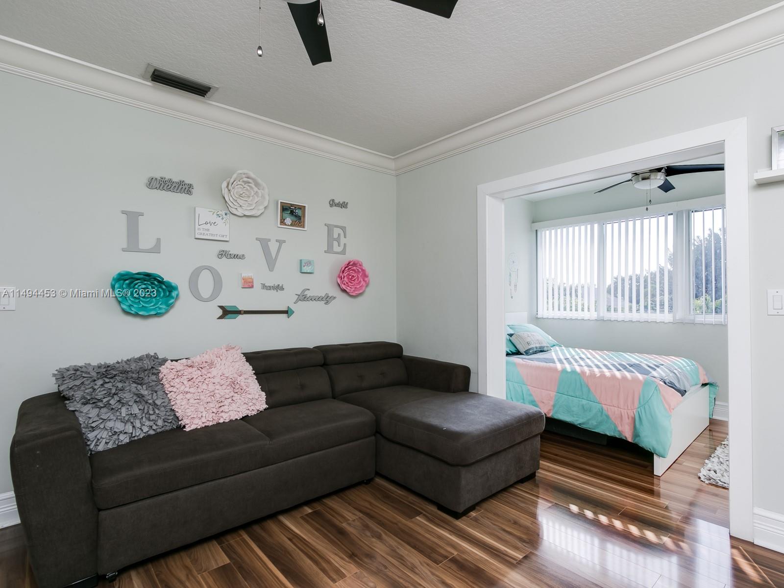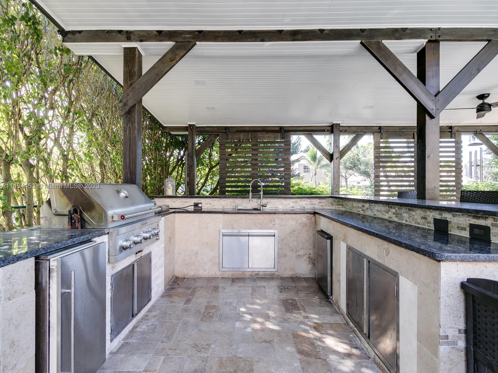 This is the paradise where you deserve to live and enjoy in the company of your family and friends creating unforgettable memories. In a resort style back yard with a salt water pool fully controlled from phone, surrounded by a patio in travertine stone, artificial turf and an outside kitchen under a large gazebo overlooking the canal. Enjoy this originally 3/2.5 with a bonus room,many improvements:large kitchen with a quartz countertop and SS appliances, family room with stone wall, bar with fridge for wines, beautiful silver SS railing post pole handrail for balcony stairs glass offering unparalleled elegance, porcelain tile on the first floor and laminate floor on the second floor.Roof 2019,Solar Panels2021,refrigerator2021,A/C 2020,zebra blinds 2019,extended dryway for 3 cars.