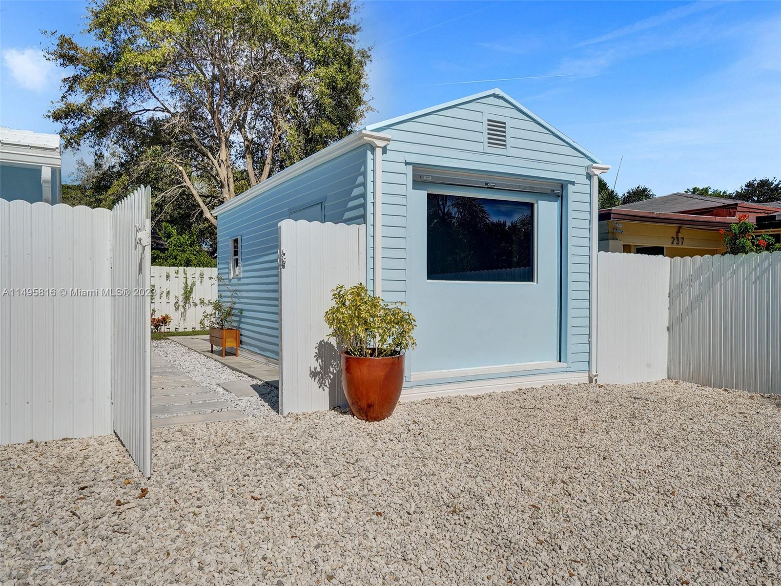 Meticulously remodeled Croissant Park hidden gem! Corner lot featuring 2 bedrooms, 2 bathrooms & southern exposure with modern finishes plus a separate bonus room / guesthouse. Custom kitchen with quartz countertops & brand new appliances. Master bedroom offers built in closets with an exquisite bathroom. High ceilings, impact windows, & tons of natural light. Completely fenced with a spacious yard & a covered outdoor space situated on a 7,024 sq/ft lot. Separate structure offers ample space to function as a studio, game room, or in-law quarters which features a breakfast bar, built in cabinets plus a half bathroom. Plenty of parking inside & outside the gate. Stackable washer / dryer (not pictured). Great location & would be an awesome AirBnb! We can manage for you - EASY TO SHOW!