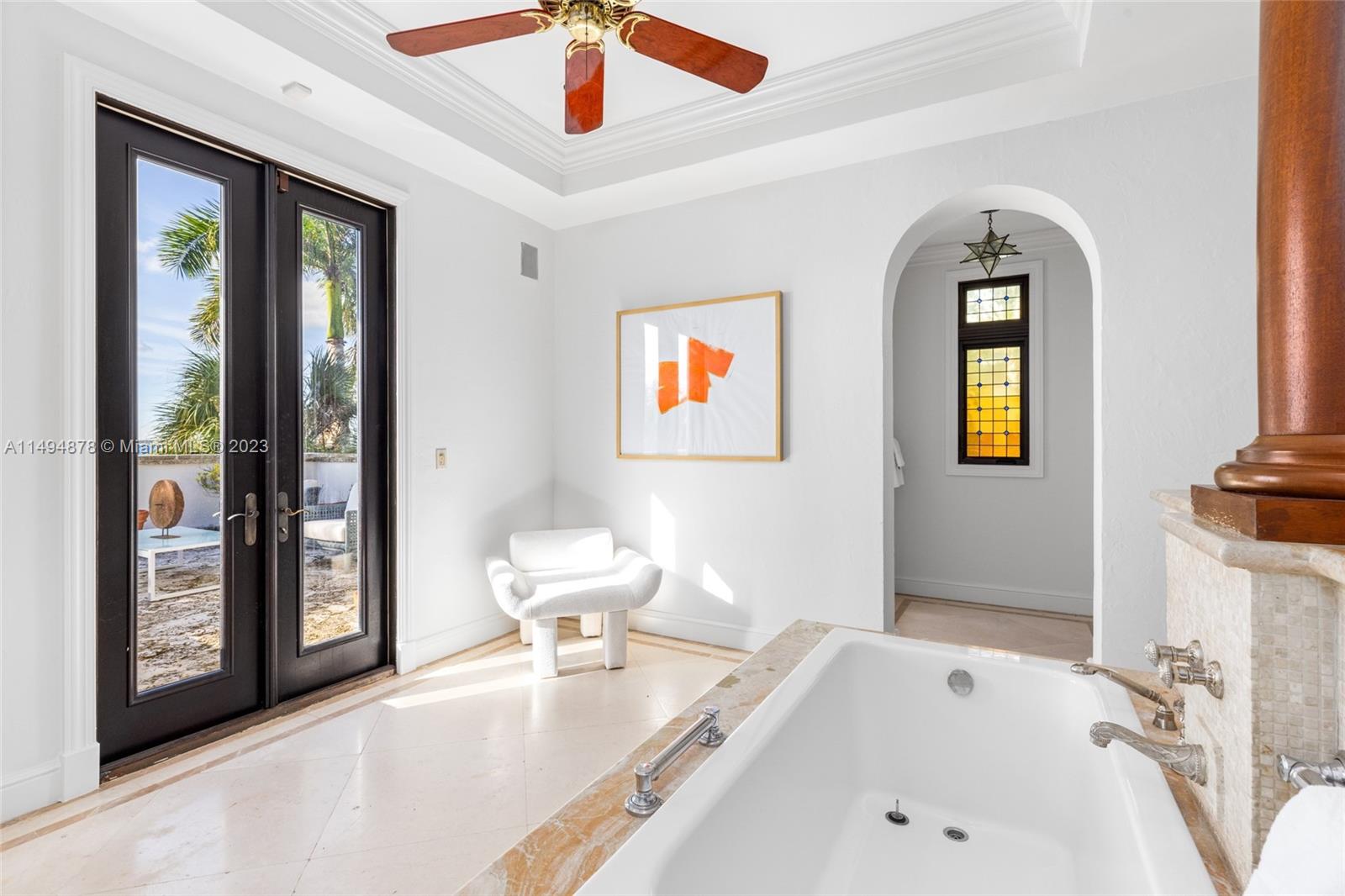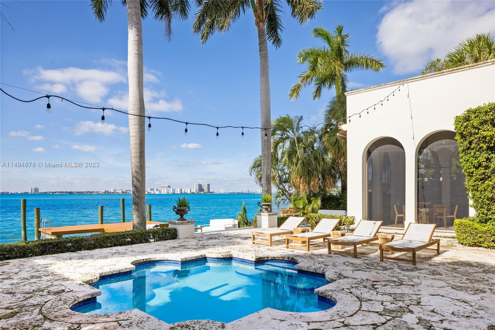 Enjoy living in this exquisite waterfront estate on prestigious N Bay Rd. A picturesque courtyard greets you as you enter this captivating residence. Large stained-glass windows bring in an abundance of natural light with high ceilings and sparkling views of the bay. Exuding charm with its classic architectural elements, surrounded by the serenity of the water's edge the home boasts 75 ft of prime waterfrontage, beautiful stone and wood floors, an architecturally stunning Victorian spiral staircase with soaring ceilings and a spacious primary suite overlooking the water. The outdoors feature a plunge pool and elegant loggia, the perfect setting for Miami’s best sunsets. A separate guest house with two bedrooms overlooks the stunning courtyard.
