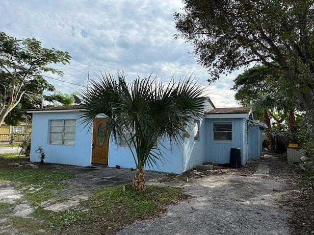 What an opportunity to be in a single family community in un-incorporated WPB. No association. Building requires permits but not association approval. A big benefit is that the existing house could be rented while plans are being developed to upgrade. No restrictions for boat/camper storage. Existing home has new water heater 2023, dated, but updated roof, kitchen, central a/c, flooring and electrical. Washer/Dryer outside in covered area. The lot is on septic but WPB sewer is available. This community seldom has homes/or/lots available and a corner, interior lot blocks from major roads is unique.