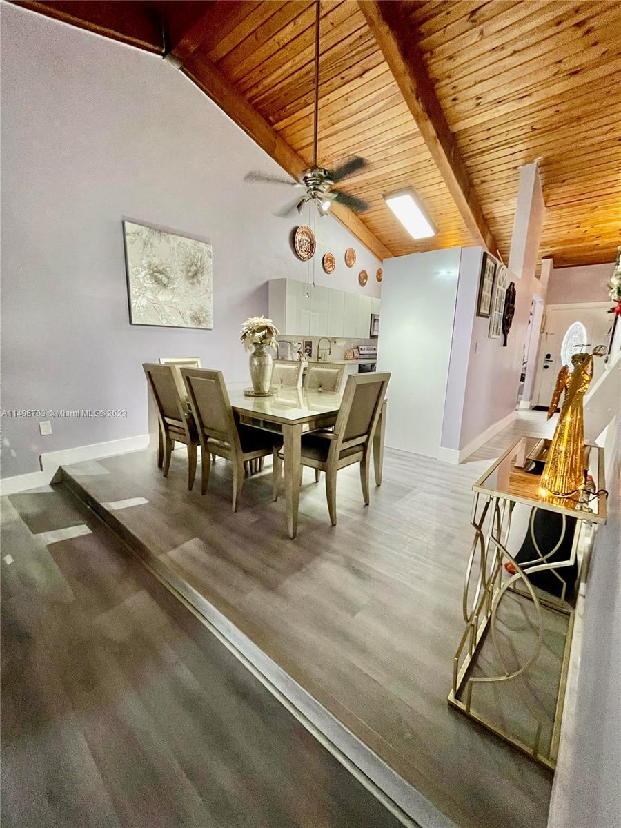 STOP!... LOOK NO FURTHER... THIS BEAUTIFUL CORNER UNIT TOWNHOME WITH NEW WASHER AND DRYER IS WAITING FOR YOU!.. IT HAS EVERYTHING YOU'VE BEEN LOOKING FOR... INCLUDING LOW HOA FEE!... THIS 2 BEDROOM 2 BATHROOM HOME HAS VAULTED CEILINGS A LOFT THAT CAN BE EASILY USED AS a 3rd BEDROOM... IT BOASTS AN OPEN FLOOR CONCEPT WITH EXPOSED WOOD BEEMS!... THIS HOME HAS BRAND NEW STAINLESS STEEL APPLICANCES WITH CUSTOM CABINETS..MODERN KITCHEN WITH QUARTZ COUNTERTOPS.. WASHER AND DRYER IS TASETFULLY ENCLOSED IN CUSTOM CABINETRY LUXURY VINYL FLOORING... IMPACT WINDOWS AND DOOR.. IT ALSO HAS HURRICANE SHUTTERS... NEW WATER HEATER...NEWER A/C AND ROOF!...LARGE PRIVATE PATIO FOR ENJOYMENT AND PLAYGROUND TO USE IF YOU HAVE KIDS.. JOGGING AND BIKE PATH IS SURROUND BY THE LARGE LAKE.. A RATED SCHOOL.