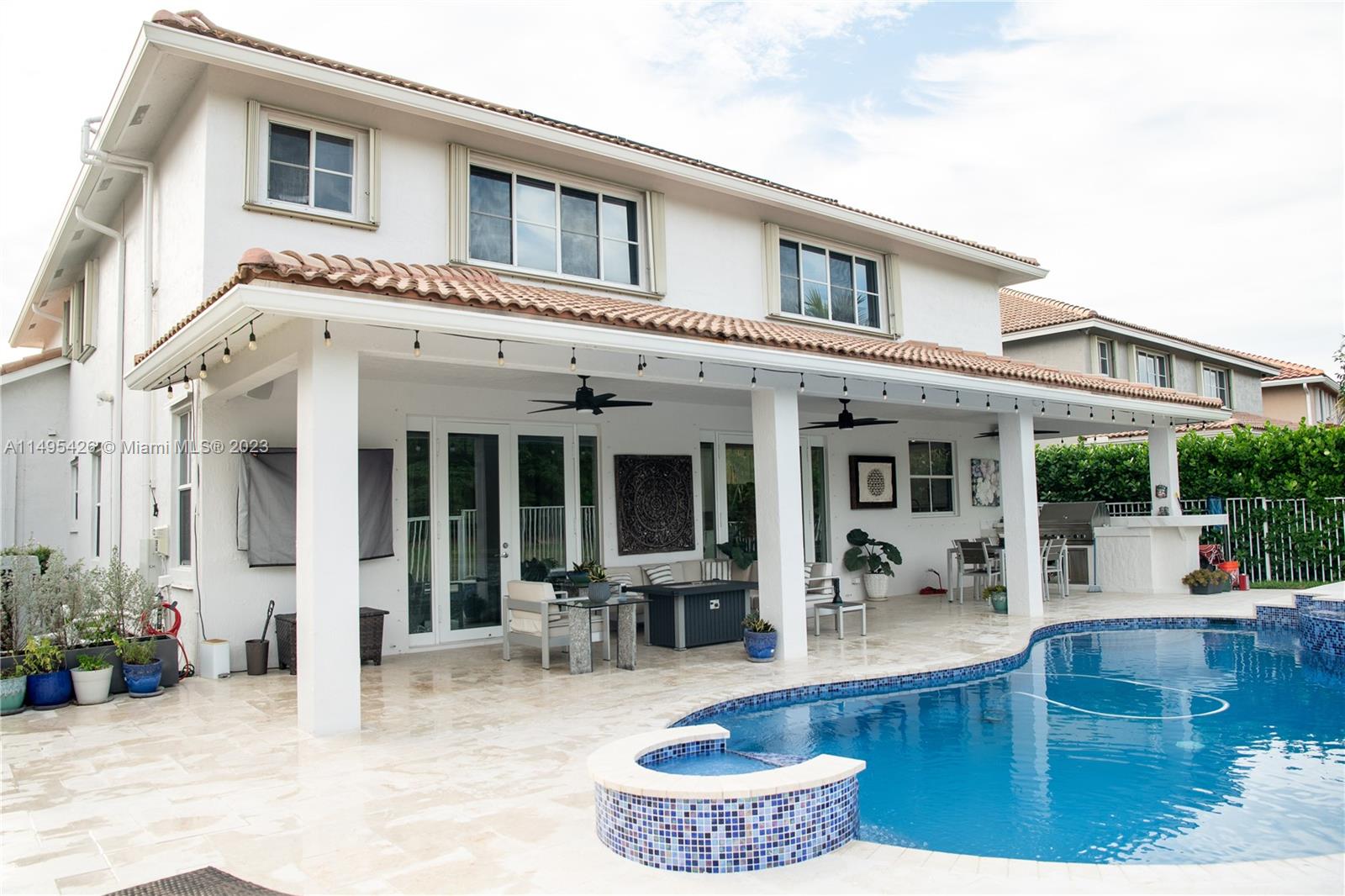 First time in the Market !!! Don't miss this spectacular Lark model located in The Grove II. The original owners are proud to present this jewel with More than 250,000 in upgrades that includes: remodeled Kitchen with Cambria Quartz countertops, Bosch and LG appliances. New Italian porcelain floors downstairs, Custom Bar with Cristalo quartz countertops, wine cooler, Motorized Hunter Douglas blinds on all first floor windows, Smart speakers, Newly renovated pool & Spa (2022) with full automation new equipments that includes Solar heater, Salt chlorinator, electric heater and chiller, Marble patio flooring, outdoor kitchen , TV and patio speakers, just painted inside and outside, new gutters, new LG washer & dryer, steam shower on MBath and much more... just come and see it by yourself