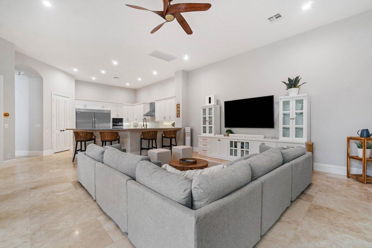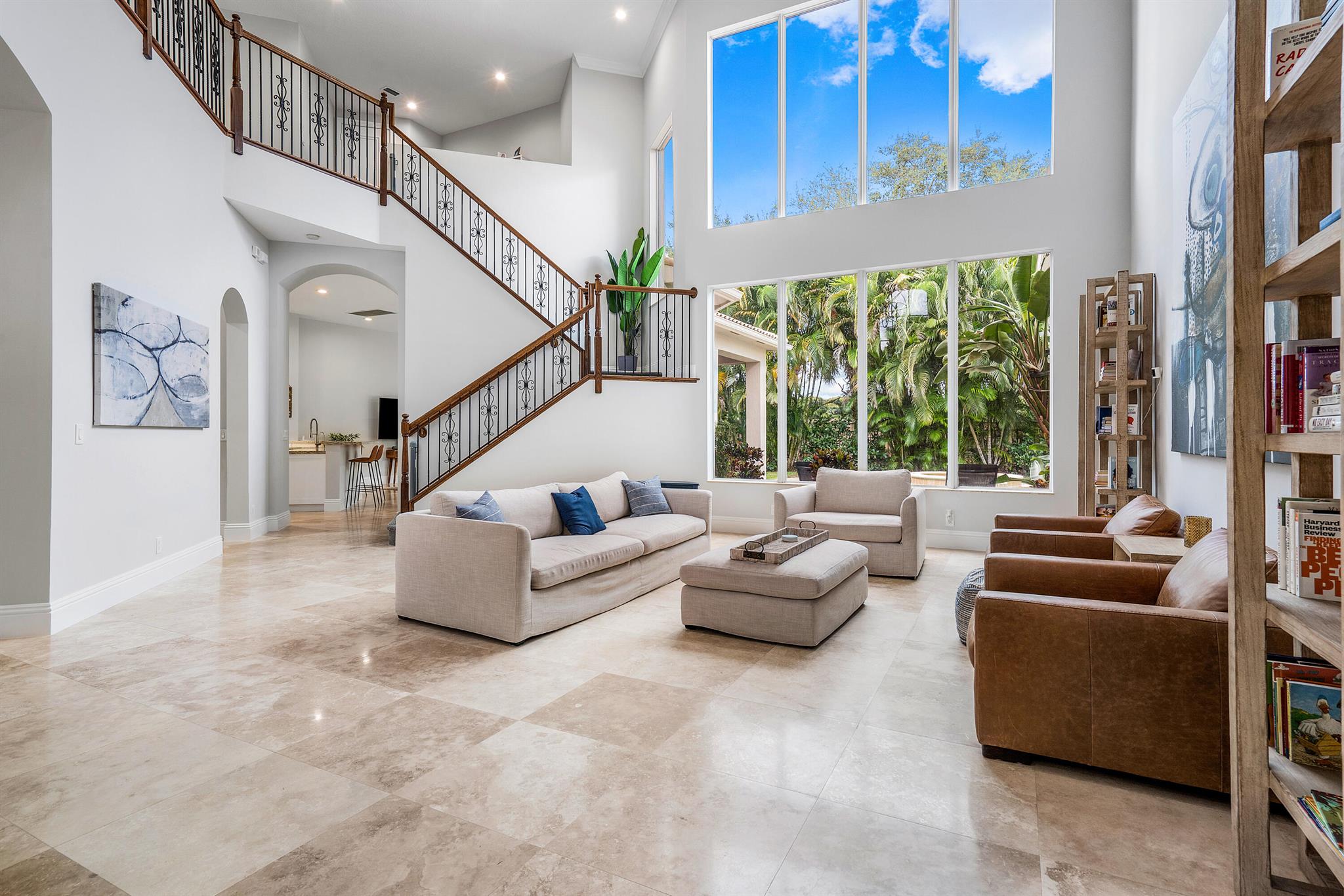 MOVE-IN-READY custom estate offered by MOTIVATED SELLERS! Featuring 4,724 lsf, 5 bedrooms, 5.1 baths, an office & a loft. The renovated open kitchen has white cabinetry, quartz countertops, & stainless-steel appliances w/ oversized fridge. Luxurious appointments include polished Saturnia marble throughout the main living areas, custom designer light fixtures, electric shades, & fully outfitted closets. The primary suite has a large, luxurious bath, & dual outfitted closets. The floor to ceiling windows in the living room are impact glass and flood the area w/ light. Outside you find a heated saltwater pool & spa, covered patio, and tropical landscaping. With a 3-car garage, recently painted exterior & interior, partial impact glass, & LED lights throughout, DON'T MISS THIS OPPORTUNITY!