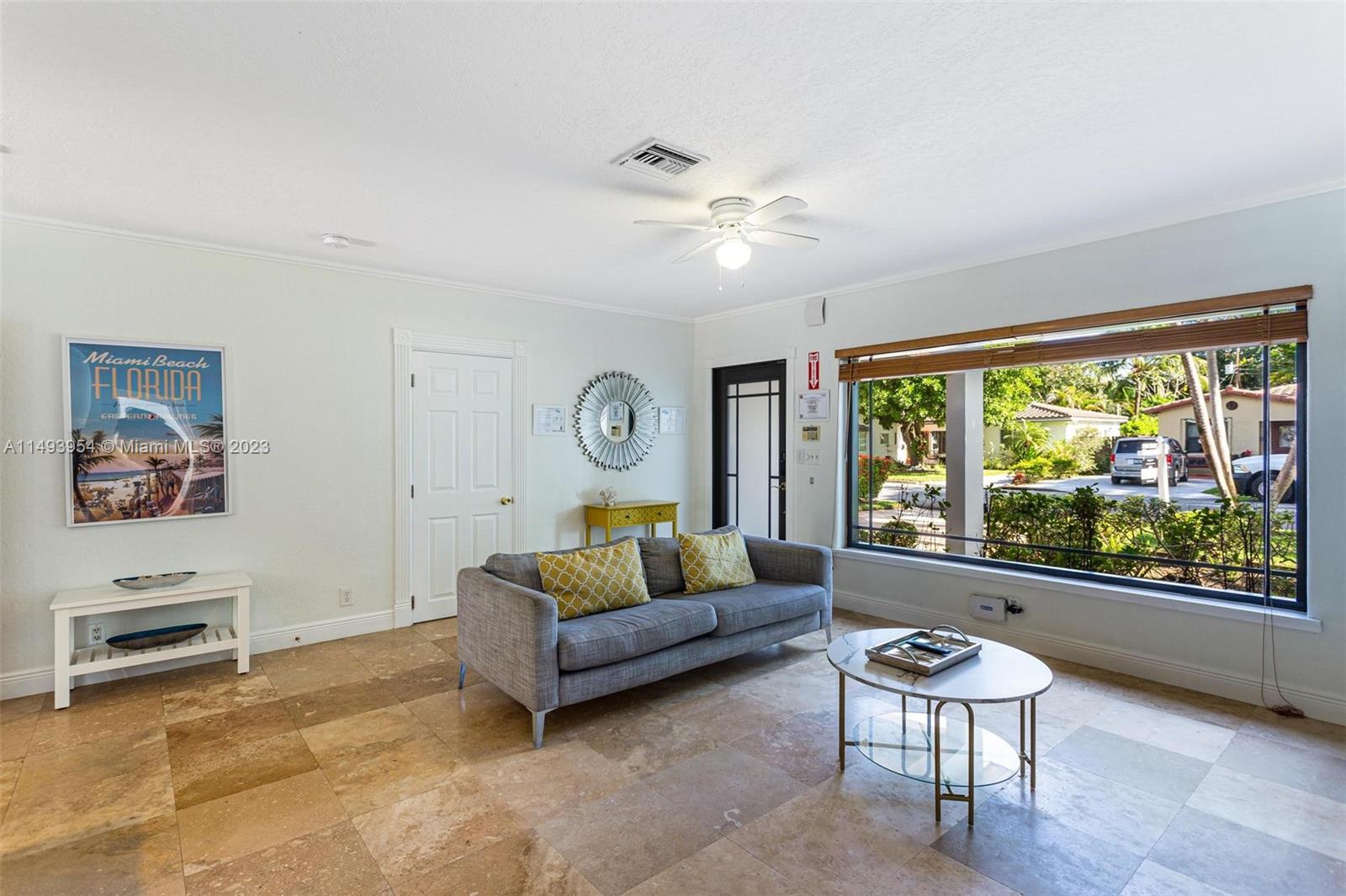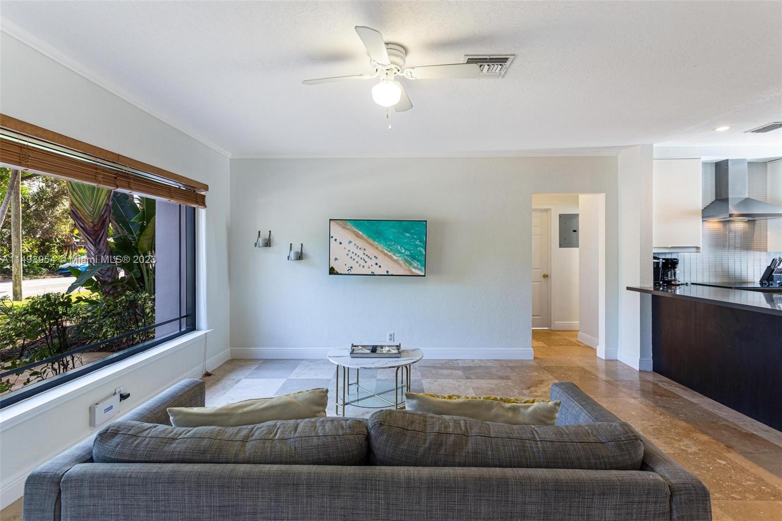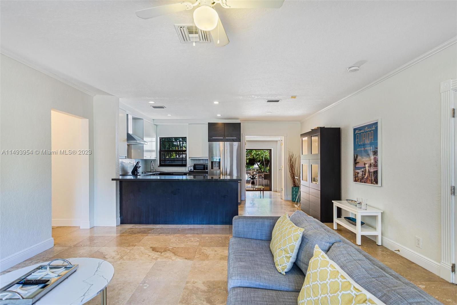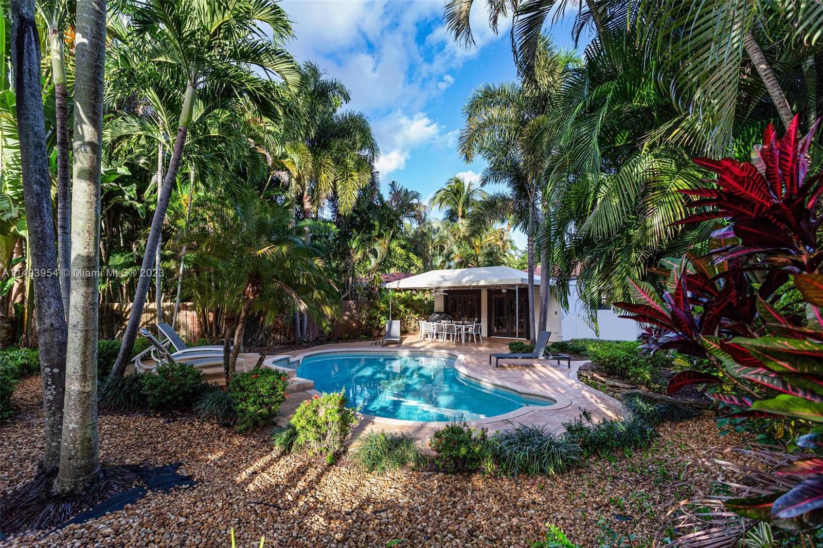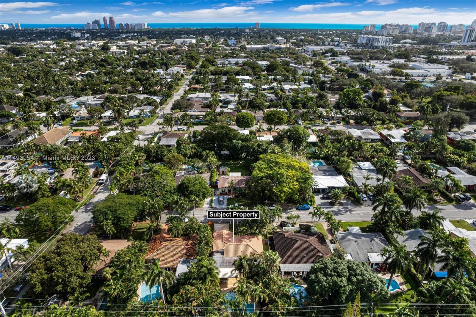 Discover a haven within a tropical paradise, on one of Poinsettia Heights' most beautiful streets. This home blends contemporary elegance with an enviable location in east Ft Lauderdale. Step into a modern kitchen with SS appliances and a generous bar that opens to the inviting living space. Throughout the home, the floors boast stunning travertine marble in rich Mediterranean hues, creating a warm ambiance. French doors beckon towards a Florida room, offering serene views of the expansive backyard adorned with lush landscaping that ensures complete privacy. The garden area is a delight, featuring a dazzling heated pool, a covered patio, and a shed equipped with electricity. Ideal for those who cherish tranquility at home and enjoy the beach and downtown, which are just a 5-min drive away.