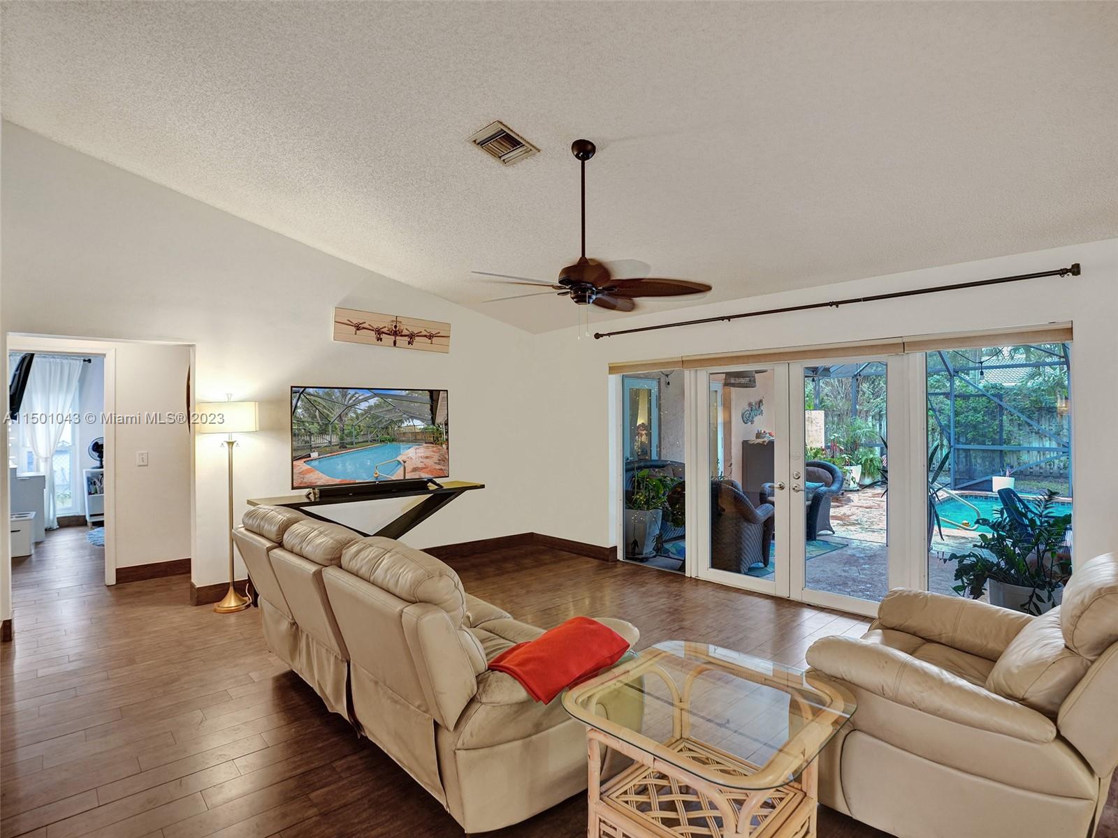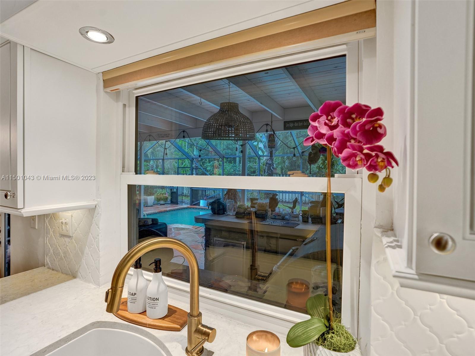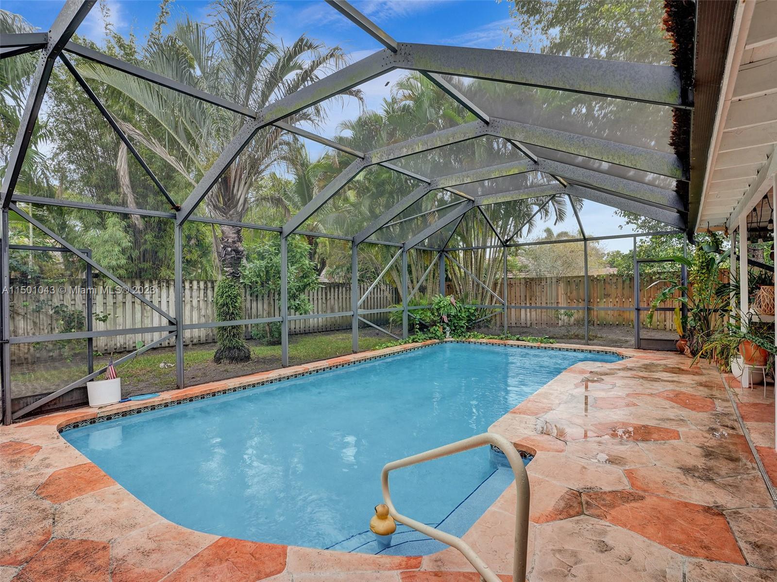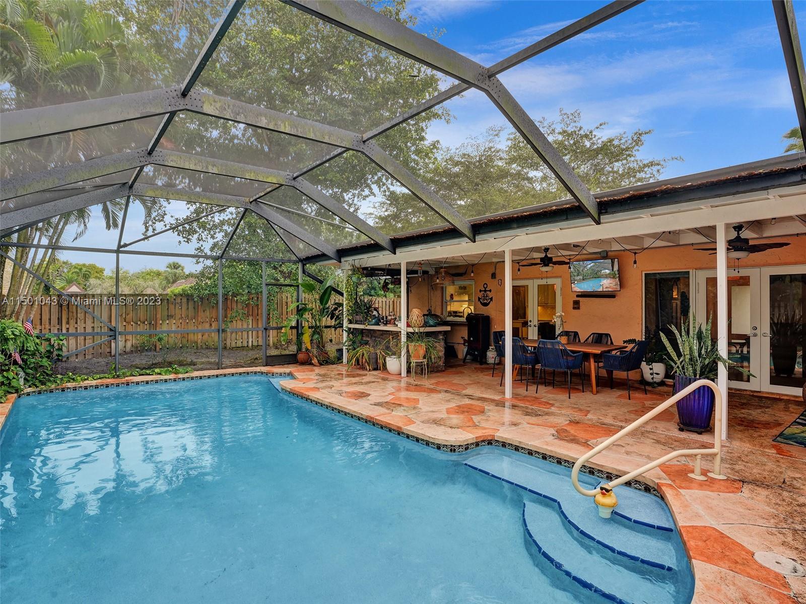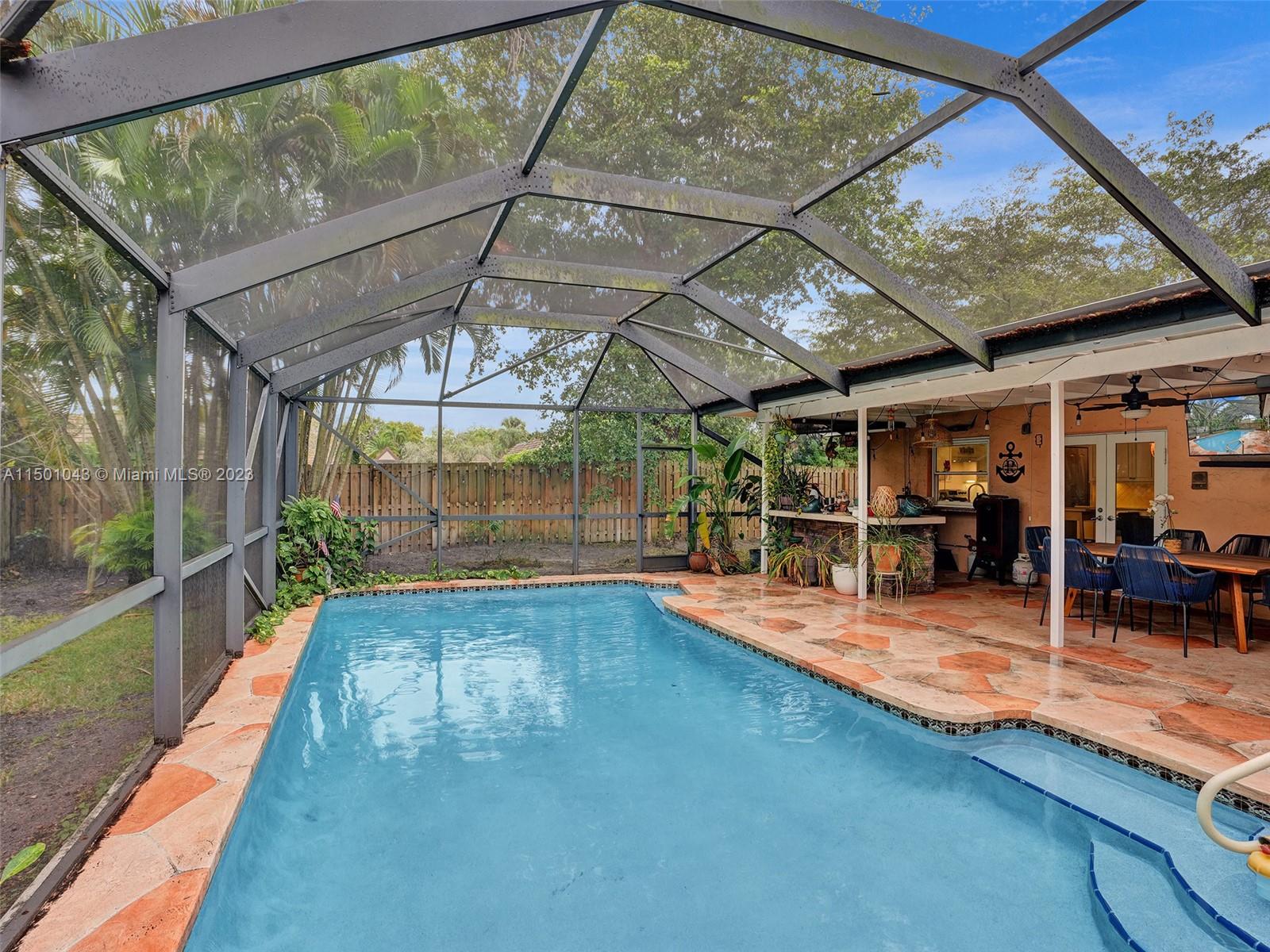 Discover this 4-bed, 2-bath turnkey home on a spacious corner lot, featuring hurricane-impact doors and windows. Opportunity to assume a VA loan at 3.125%. Includes a new A/C (2019), modern appliances, and Thomasville cabinets in the kitchen and bathrooms. Granite countertops and backsplash enhance the kitchen, which leads to a screened pool and summer kitchen. Enjoy a fenced yard with fruit trees and a practical laundry room. The extended lanai offers outdoor shower potential. Benefit from no HOA fees, proximity to Ramblewood Elementary, and local shops and restaurants.